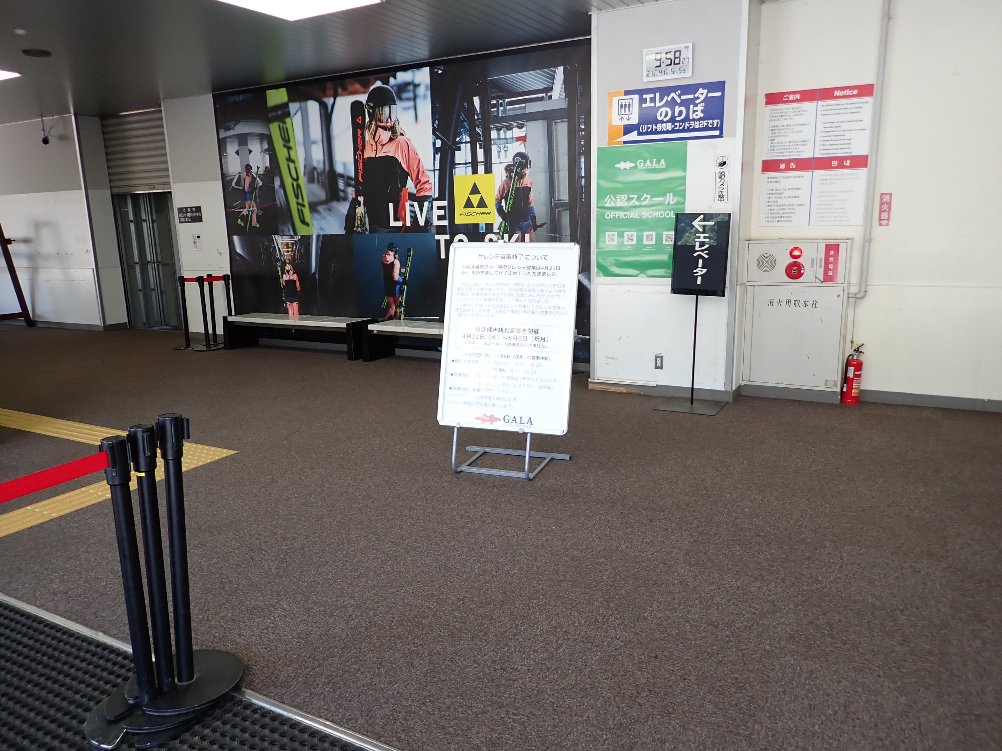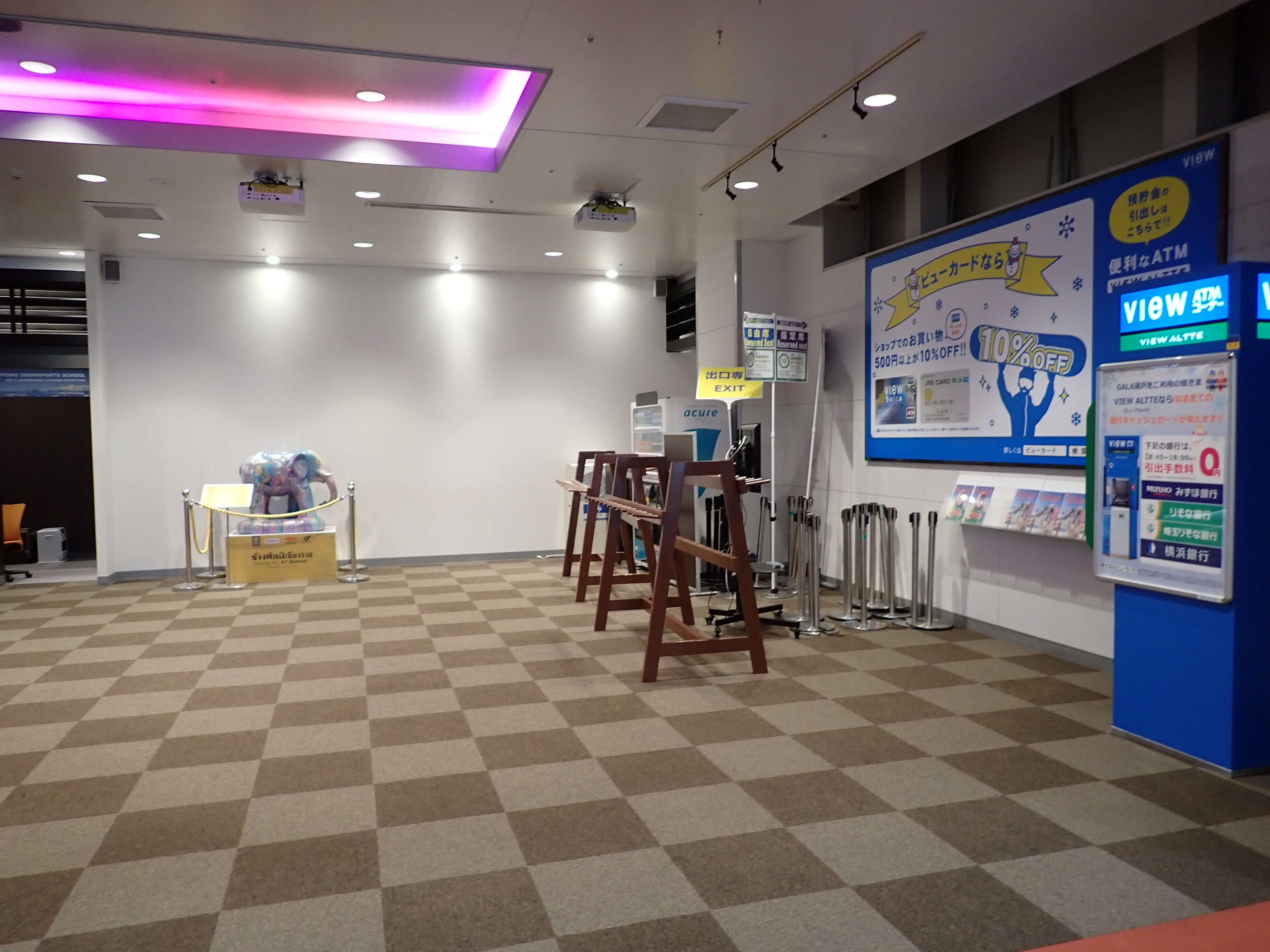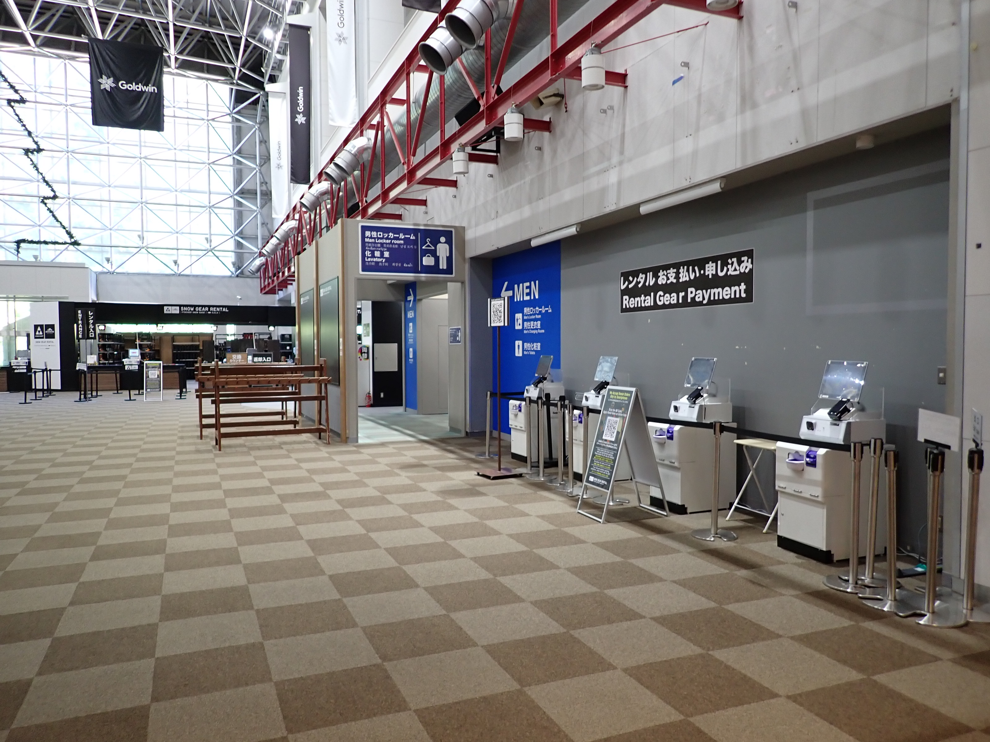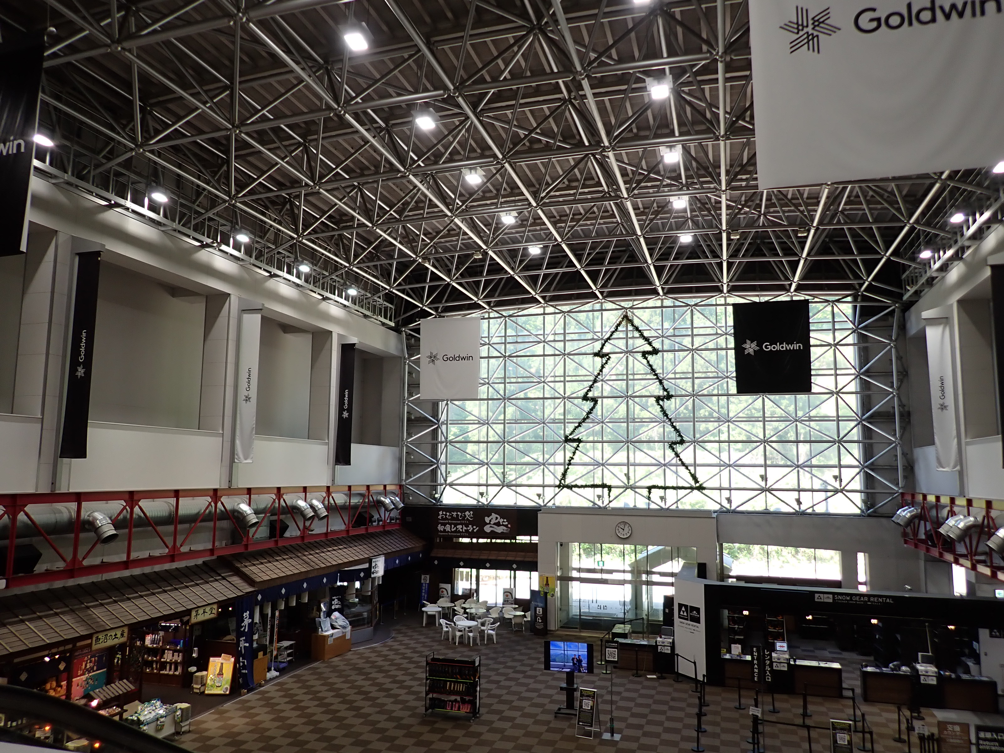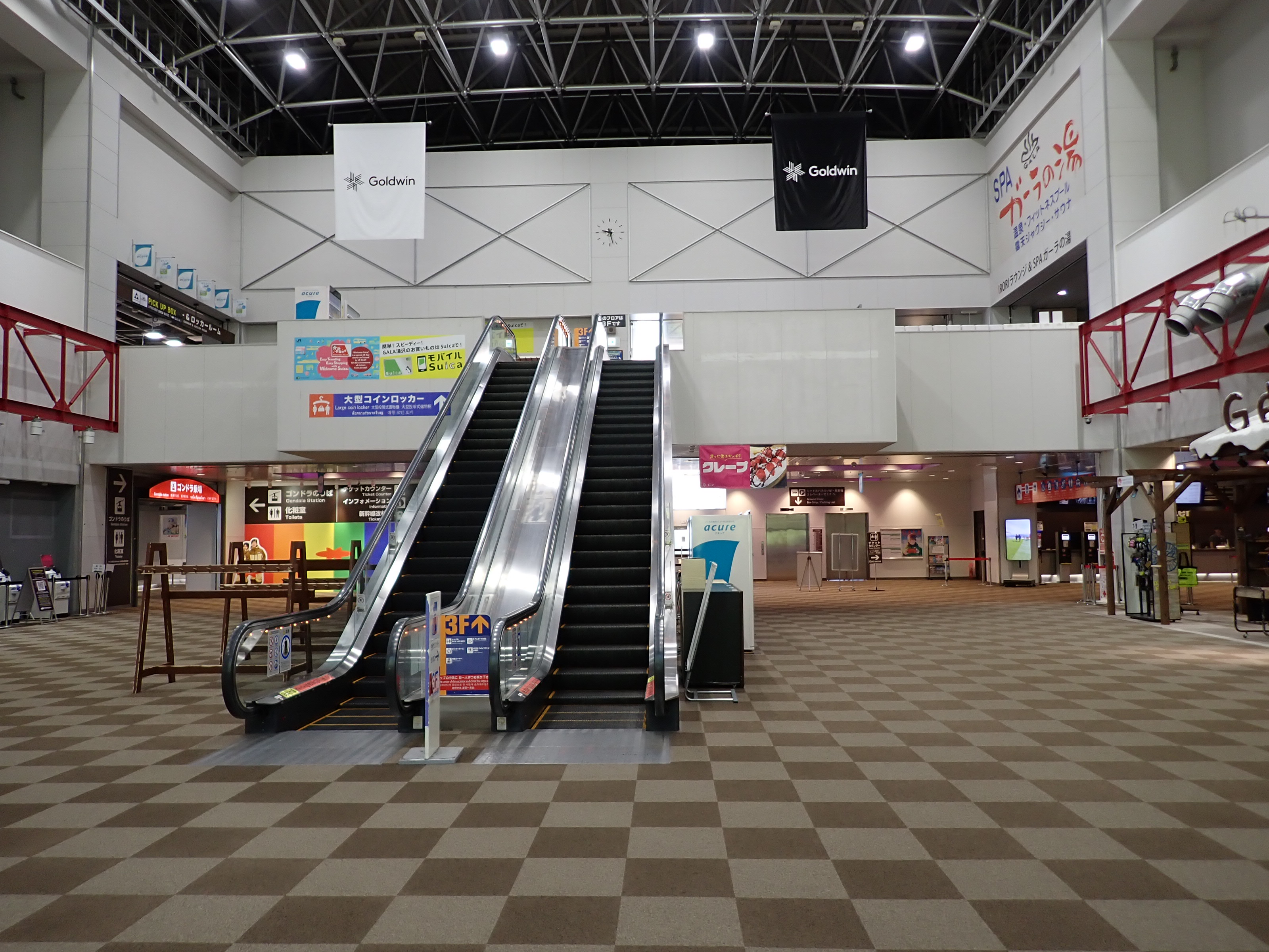 改札を抜けたところにあるスキー場の窓口。そのままスキー場施設である「カワバンガ」の2階になります。