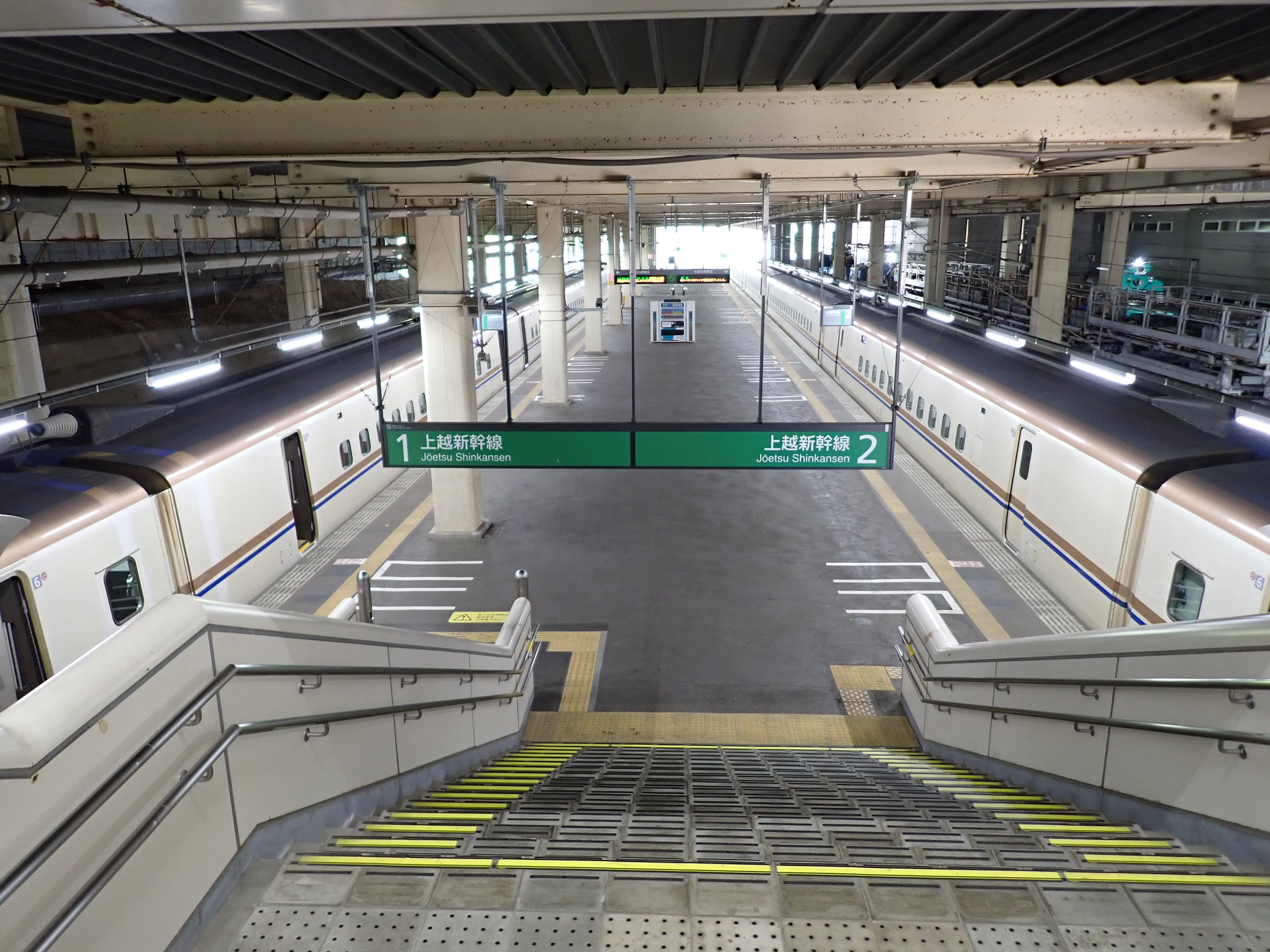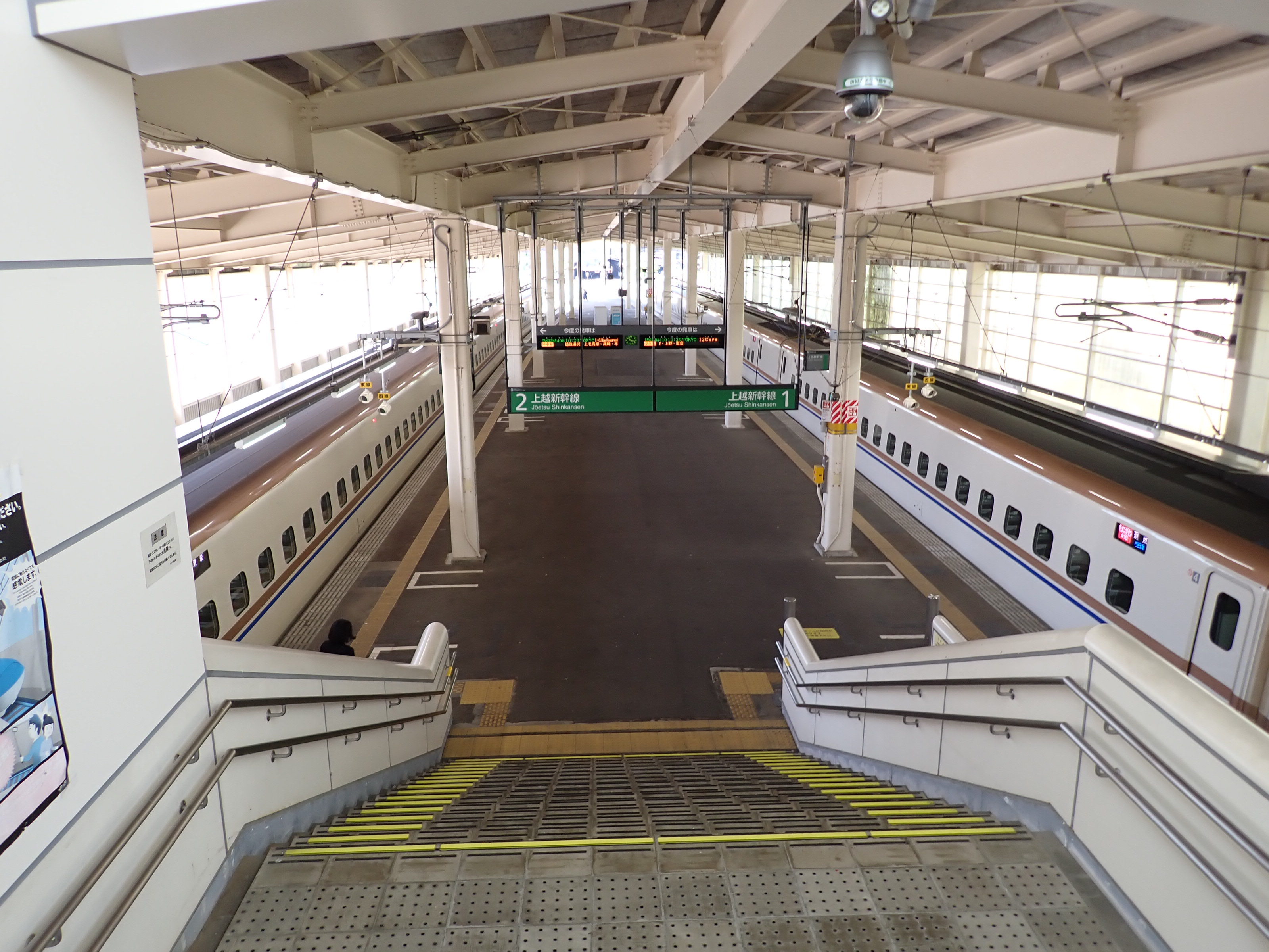 越後湯沢と反対側(終端側)のホーム階段・エスカレーター。