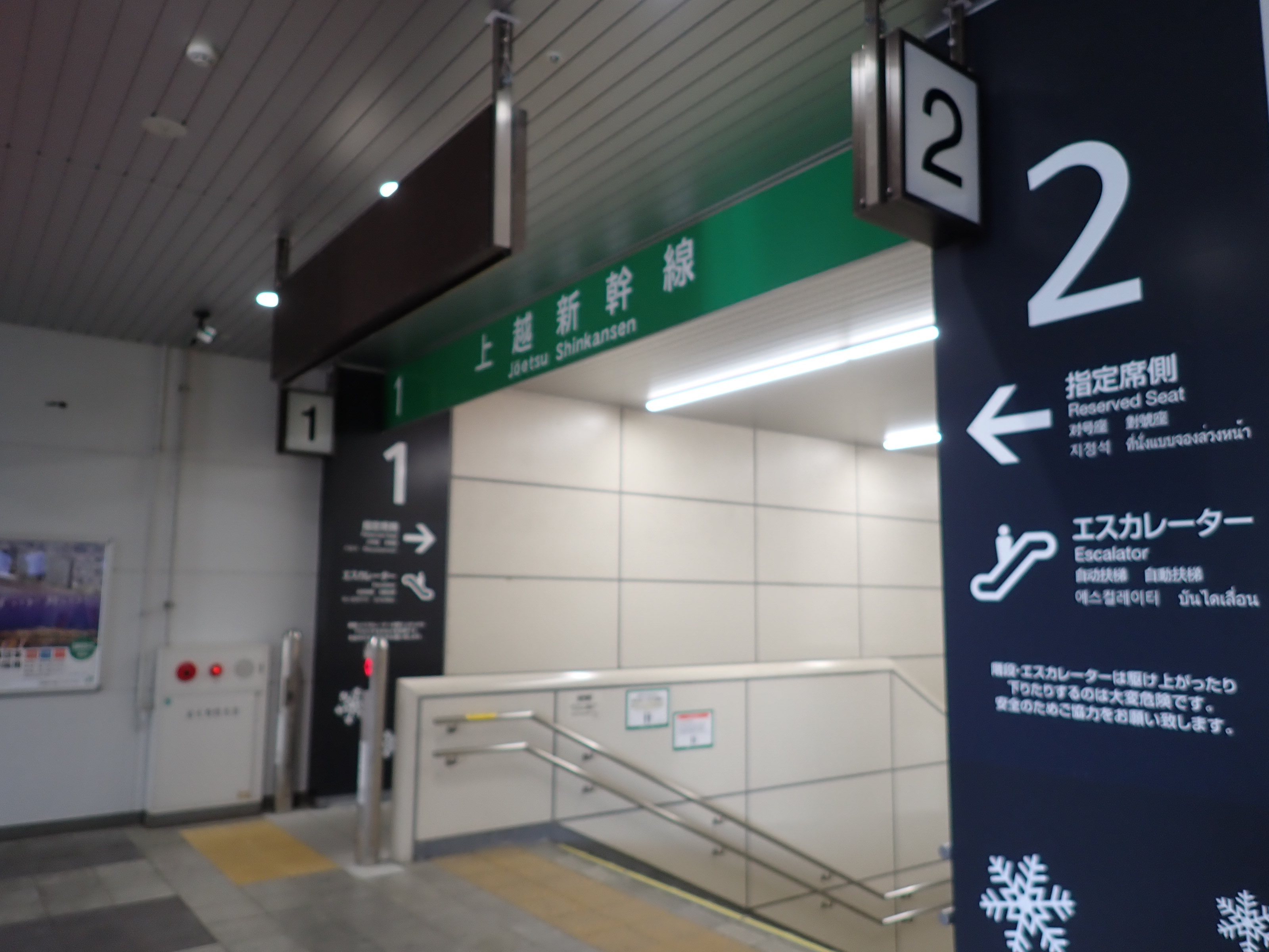 ホームの越後湯沢駅の階段近く。