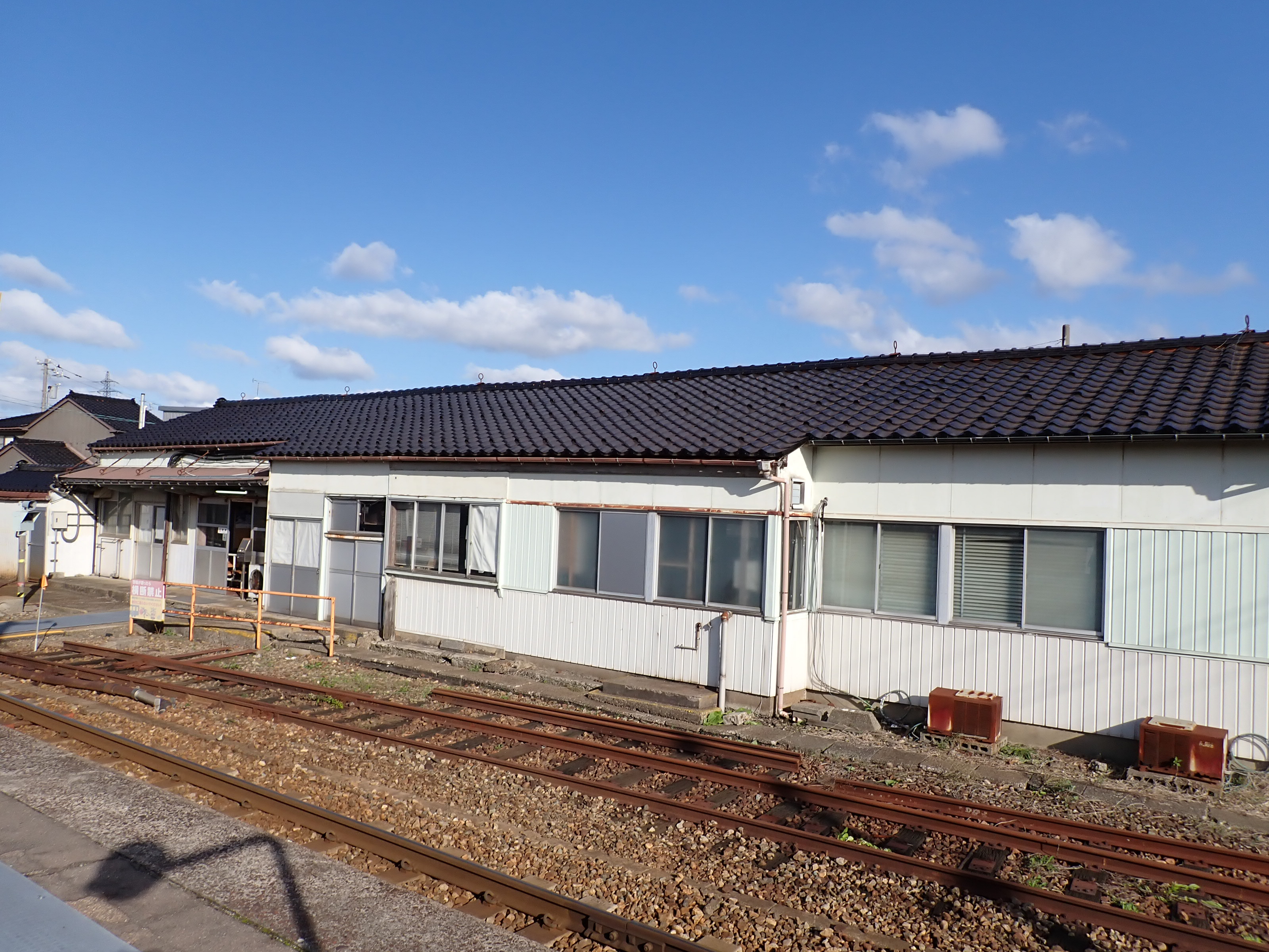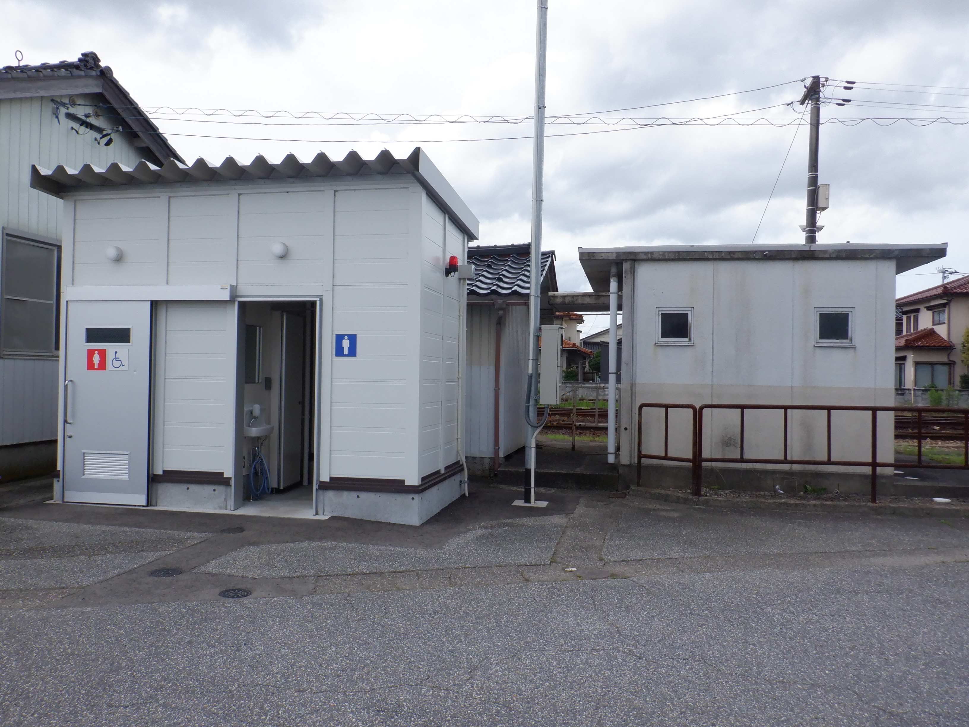 旧駅舎が取り壊されず、新旧トイレが並んでいます。