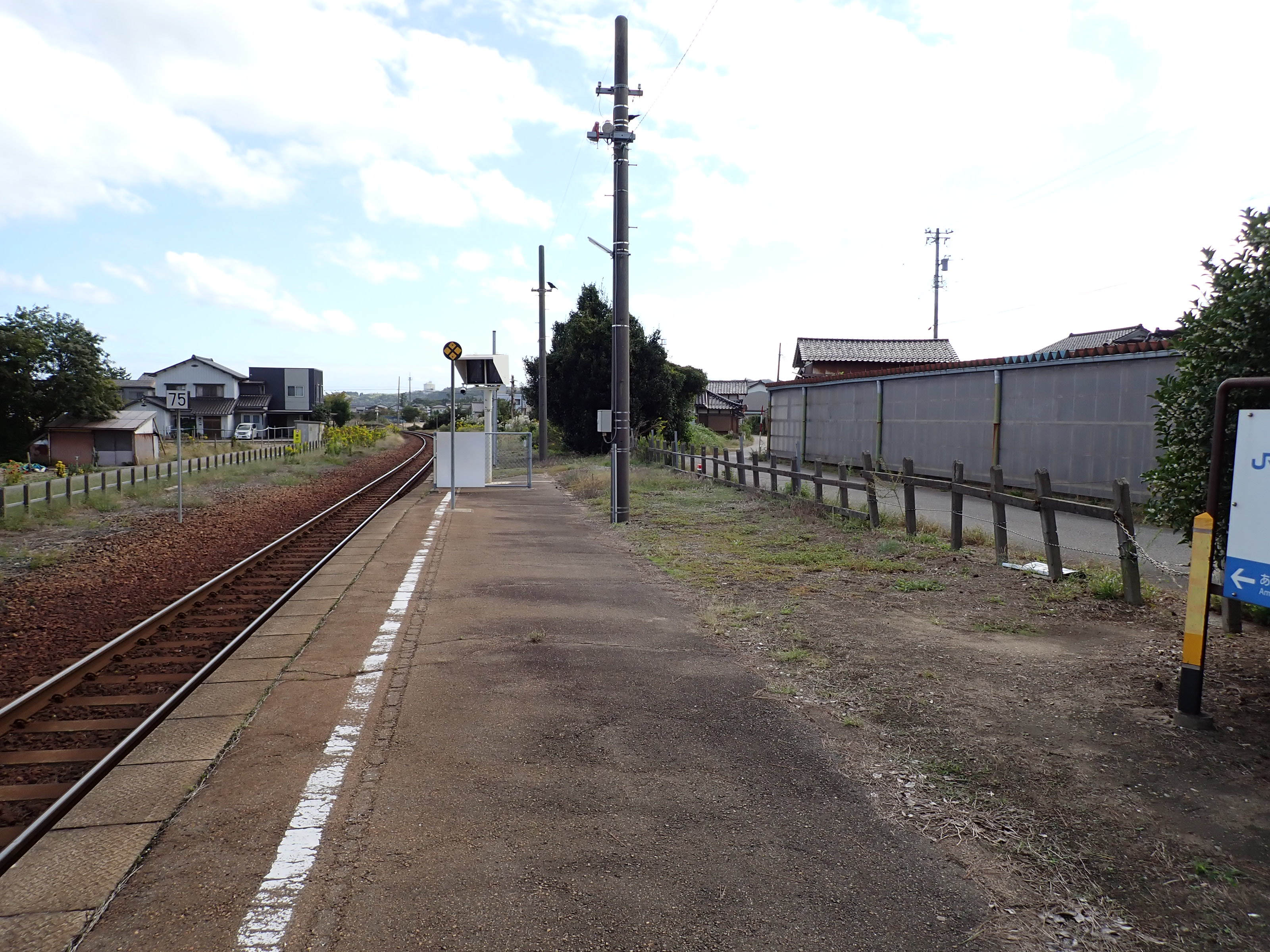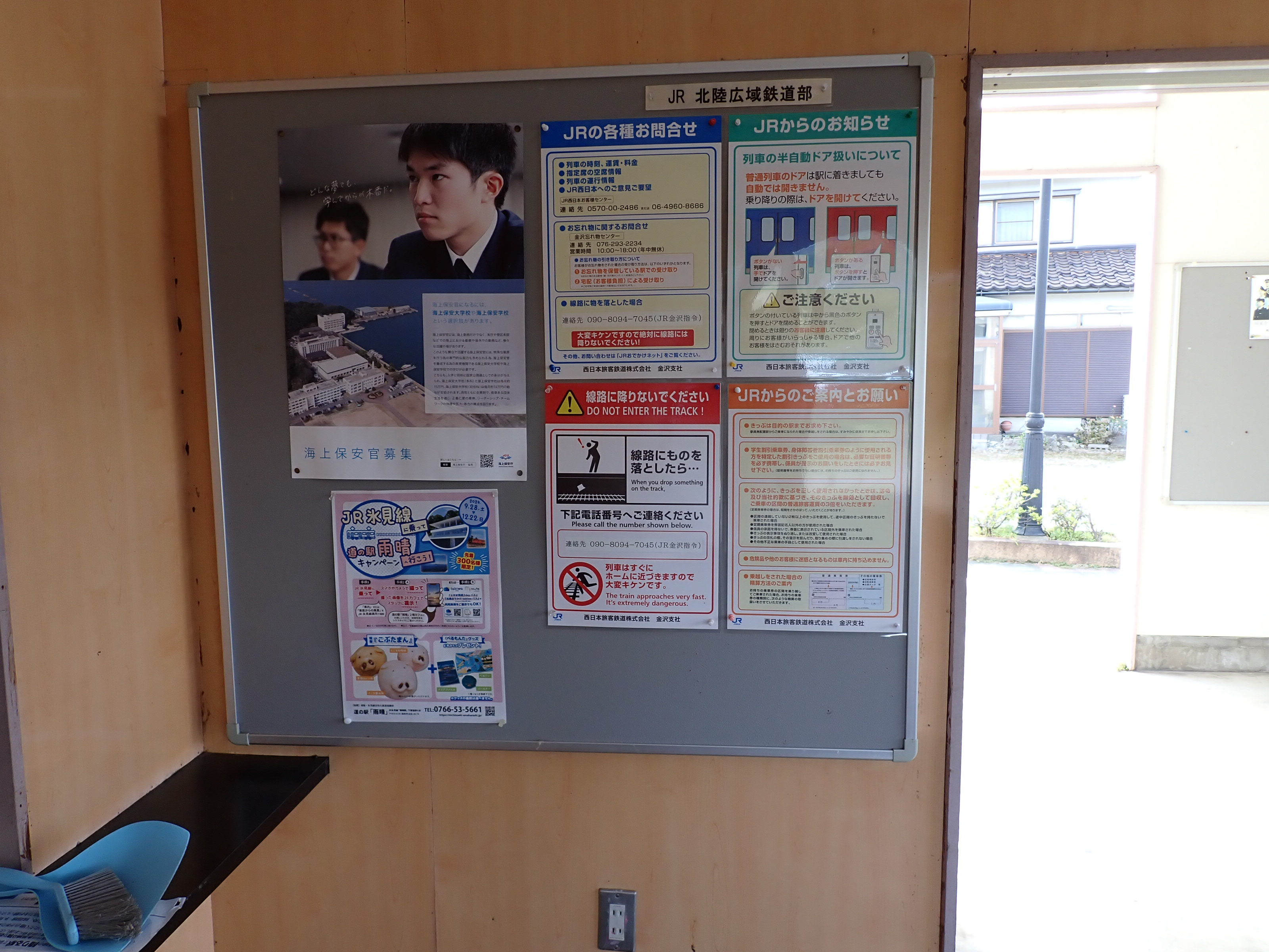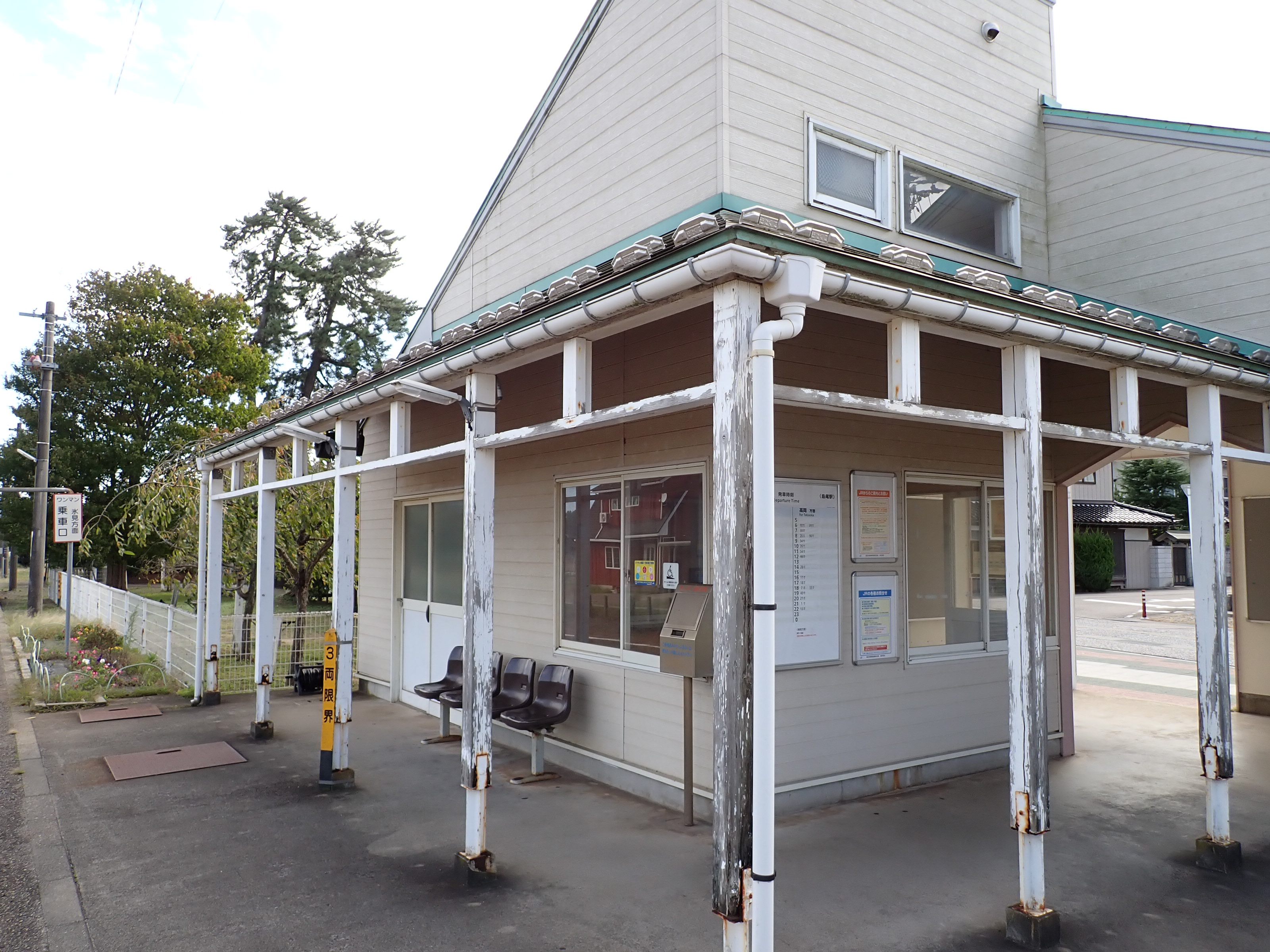 この駅は3両ワンマン対応工事にあたり、雨晴駅側はモニター(ITV)の取り付け、氷見駅側は既存のワンマンミラーポールに「くもらーず」が取り付けられました。また、その工事と並行して駅のそばに公衆トイレの設置工事が行われました。ここでは2024年の様子までご紹介します。