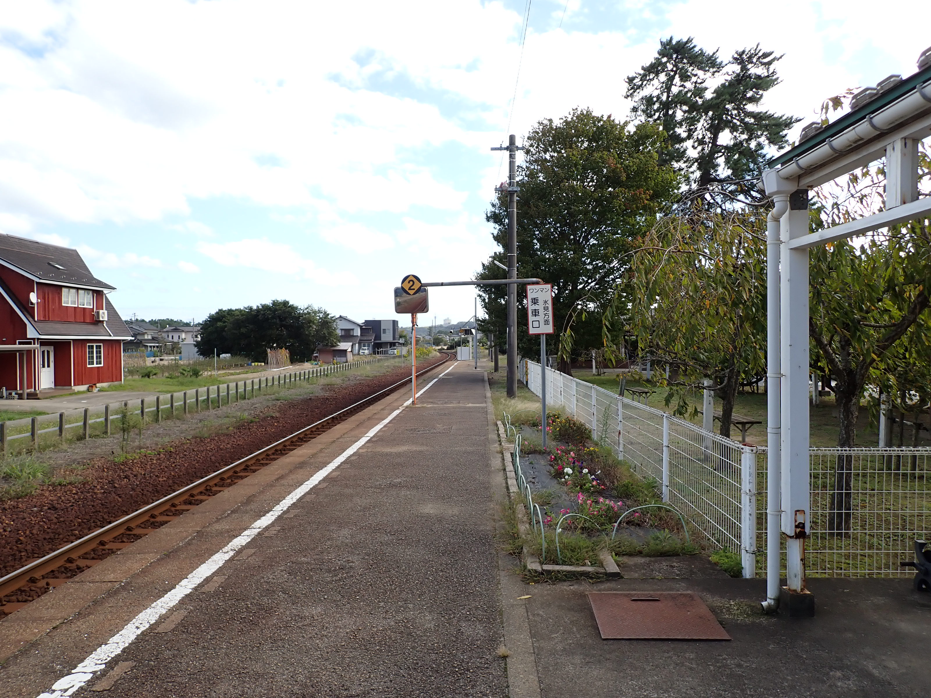 ホームの雨晴駅側。