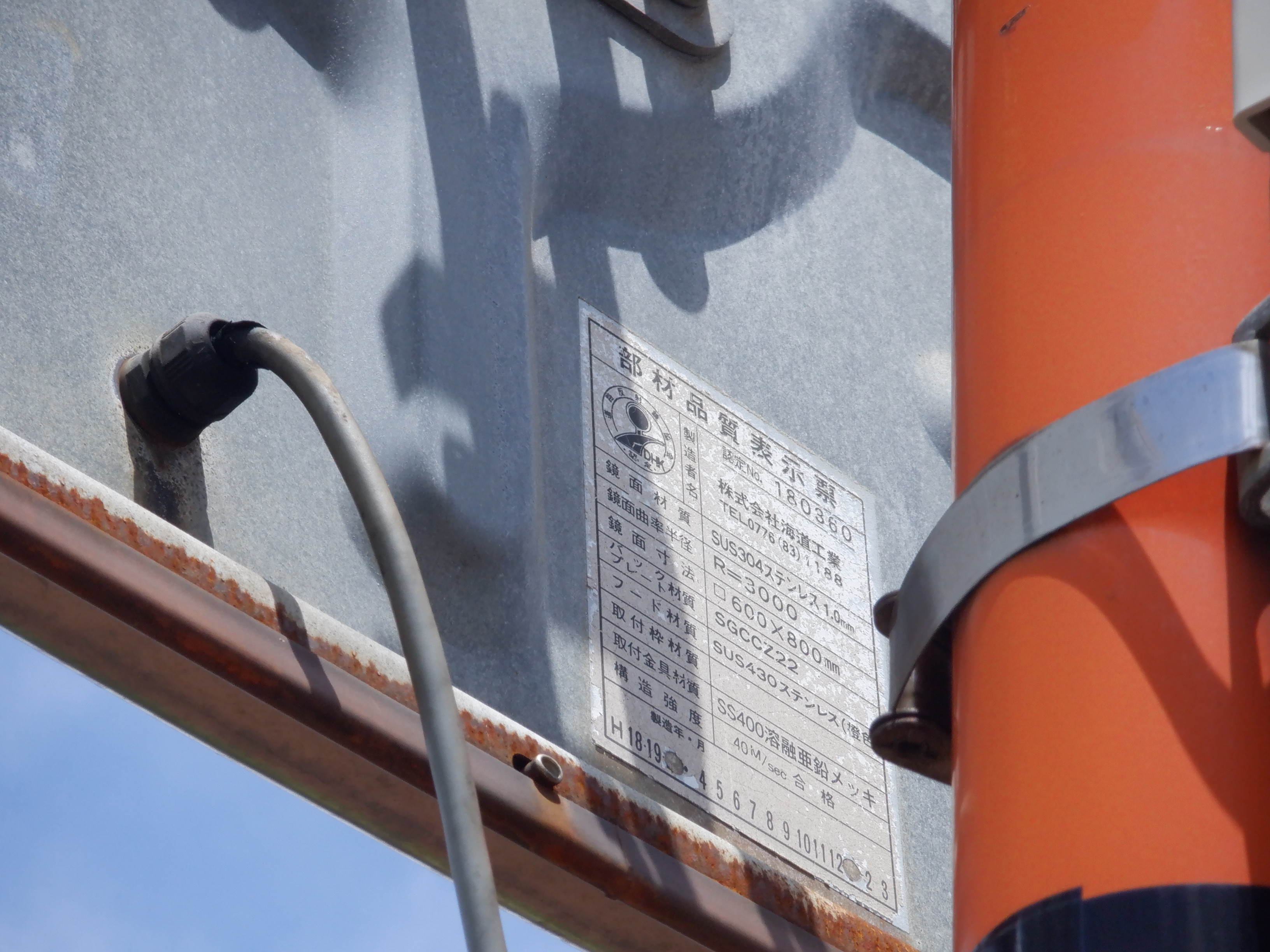 その手前の支柱に設置されたテレビカメラ。