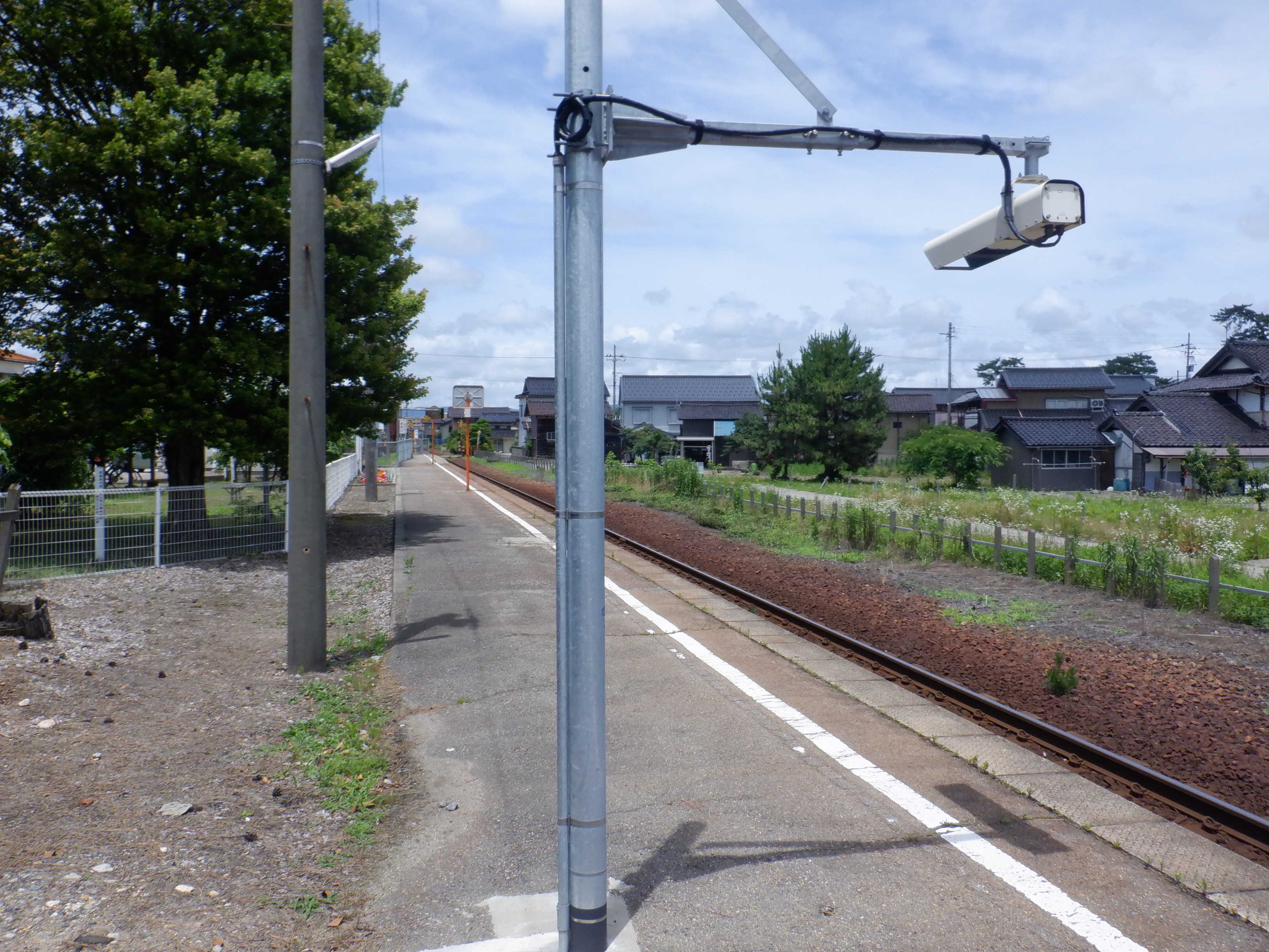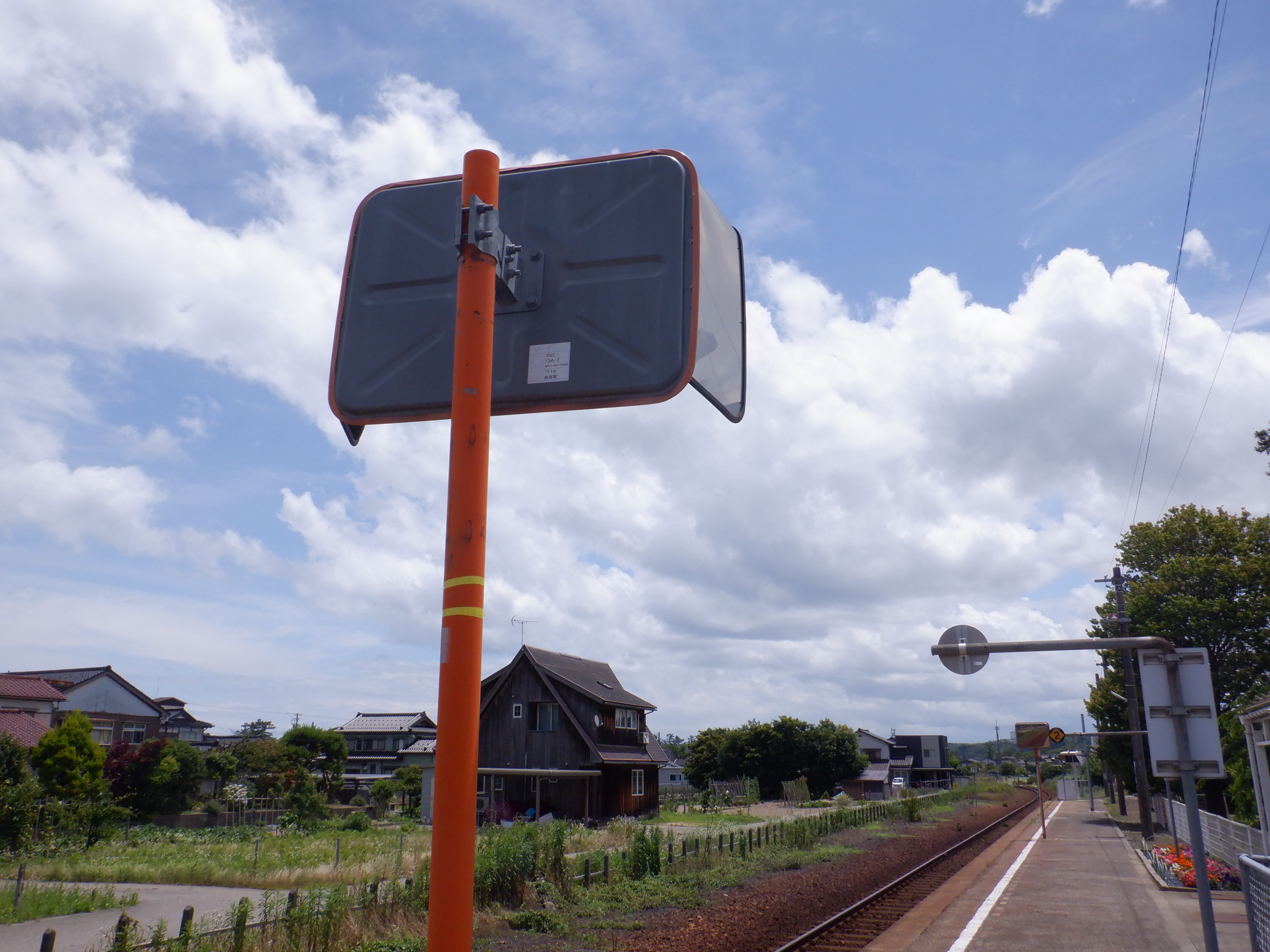 雨晴駅側のモニター(ITV)。柵のところに反射板が設置されました。