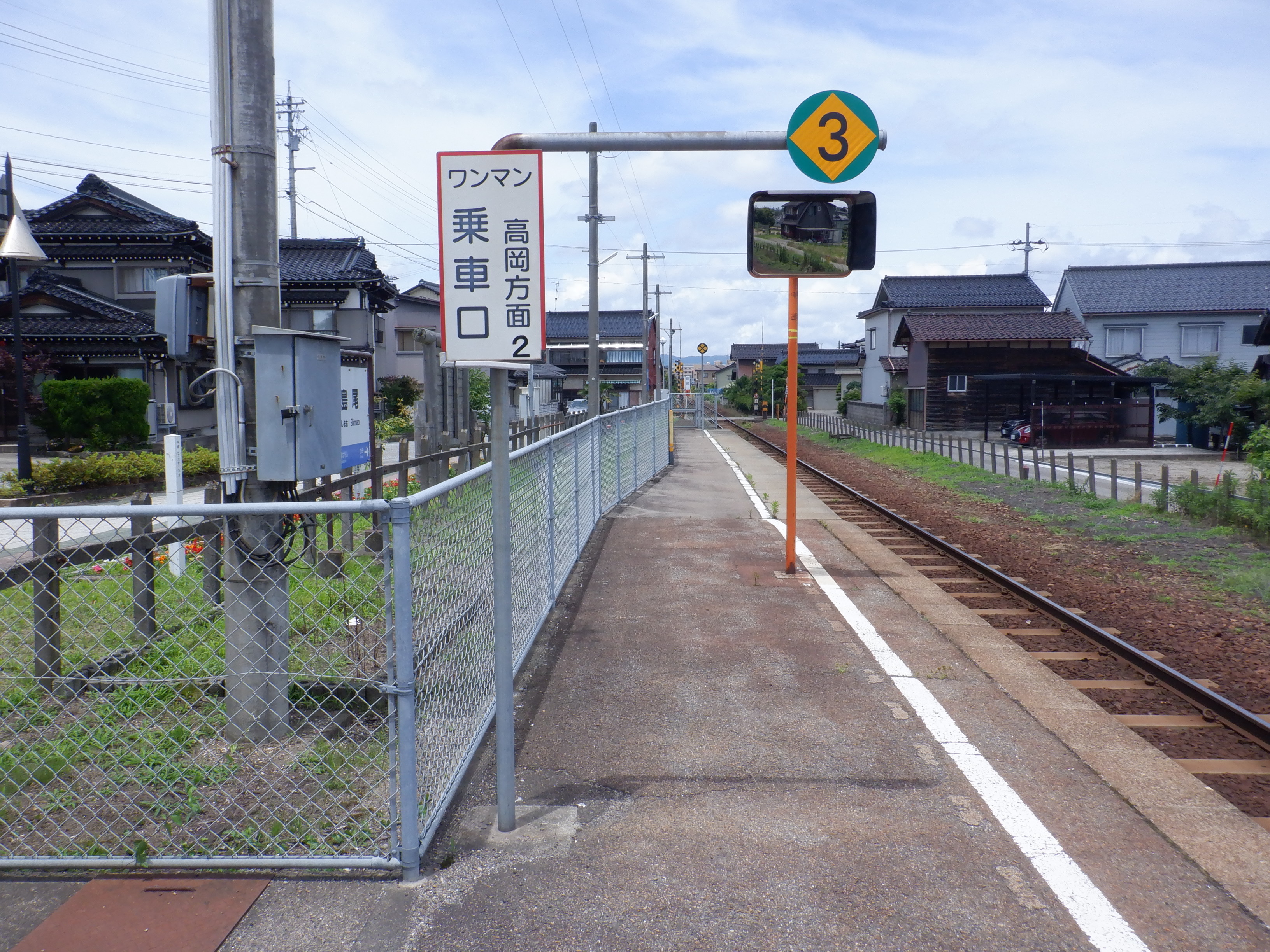ダイヤ改正後3両ワンマンの列車が走り始めてからの様子です。結果的に、氷見駅側は従来のワンマンミラーの支柱に「くもらーず」が設置され、また、停目が2から3に変わるということになっていました。
