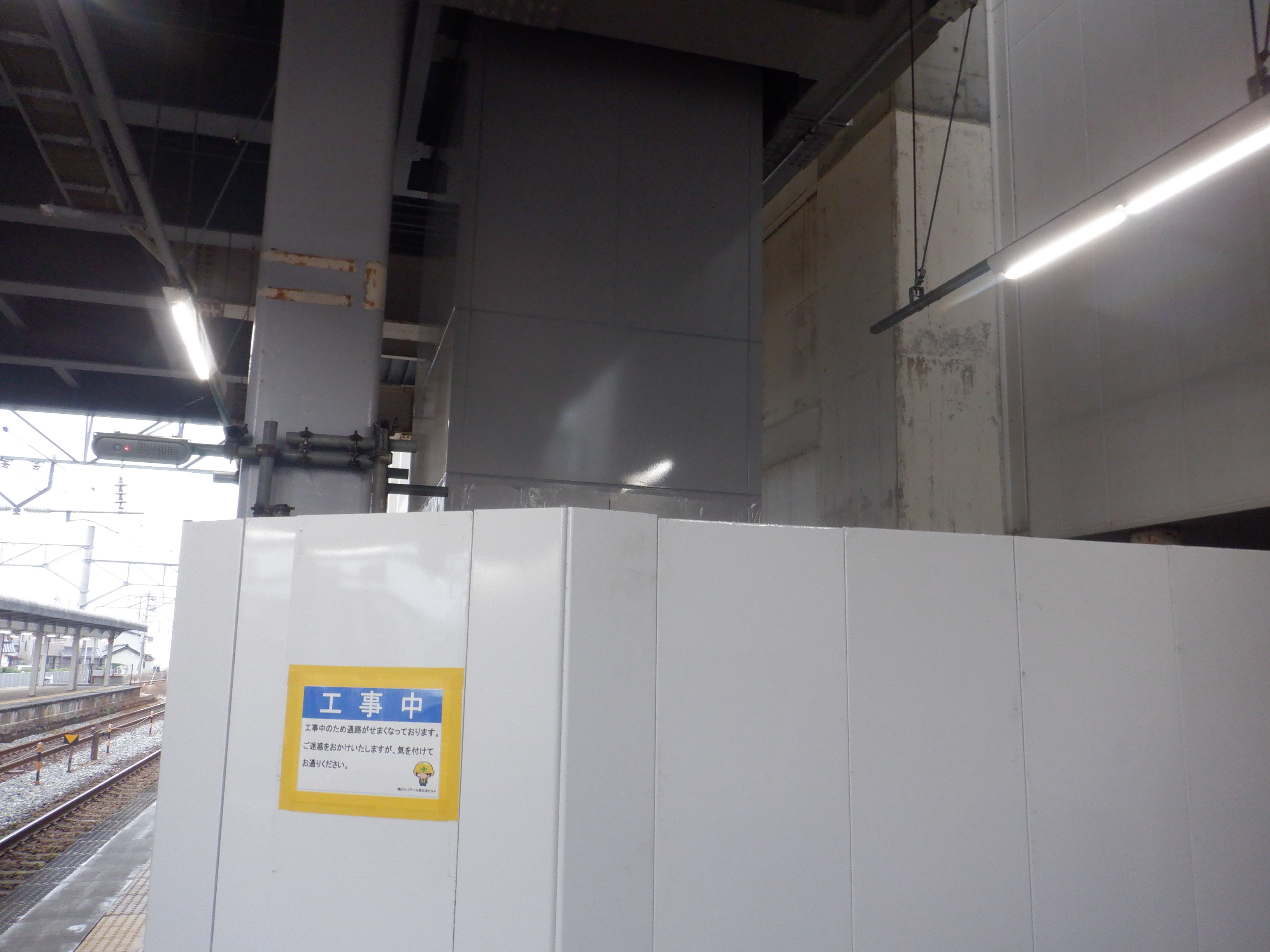 1番のりばのエレベーター(今回できたところ)の2階部分の囲いが取れたところ。