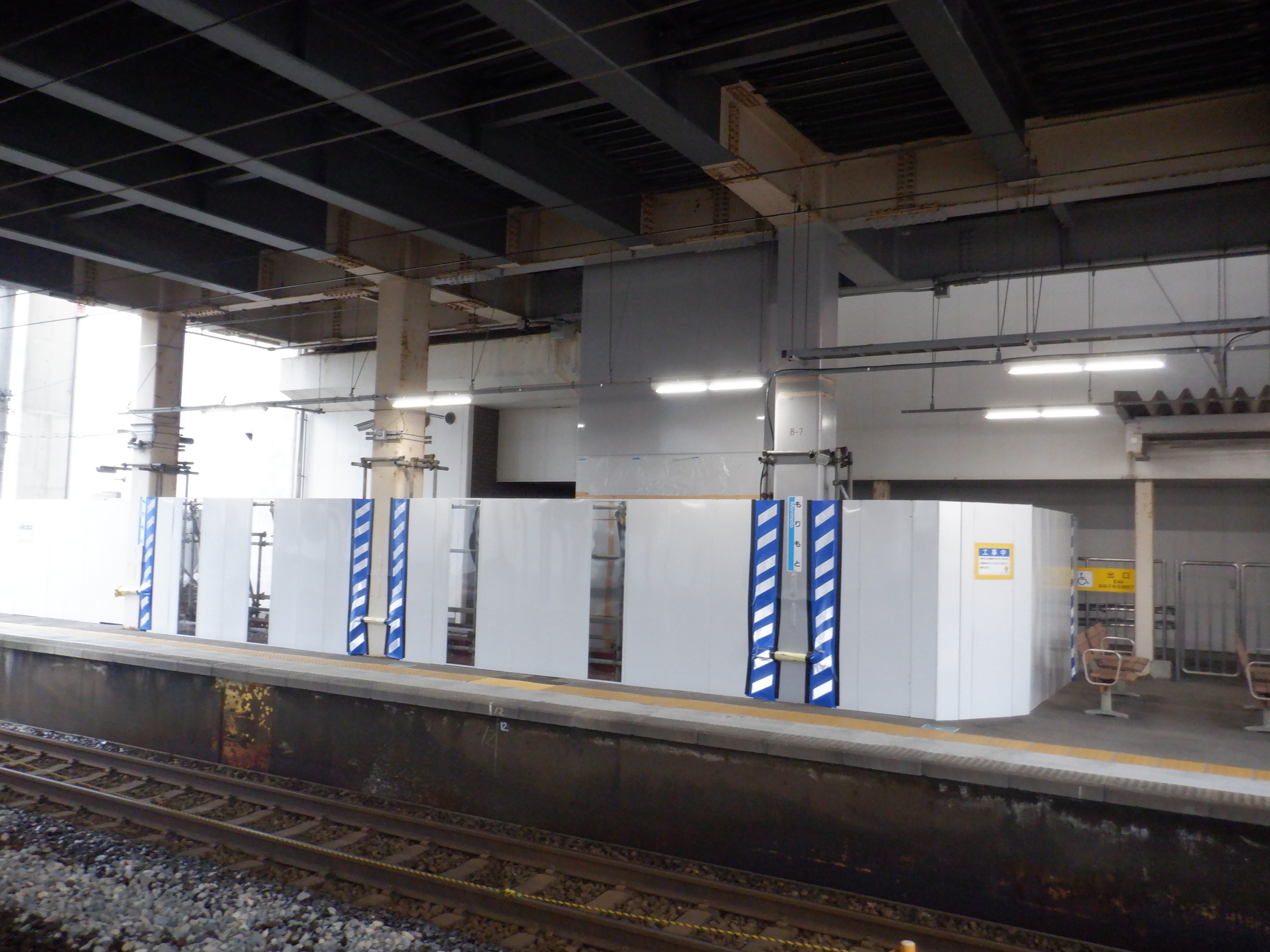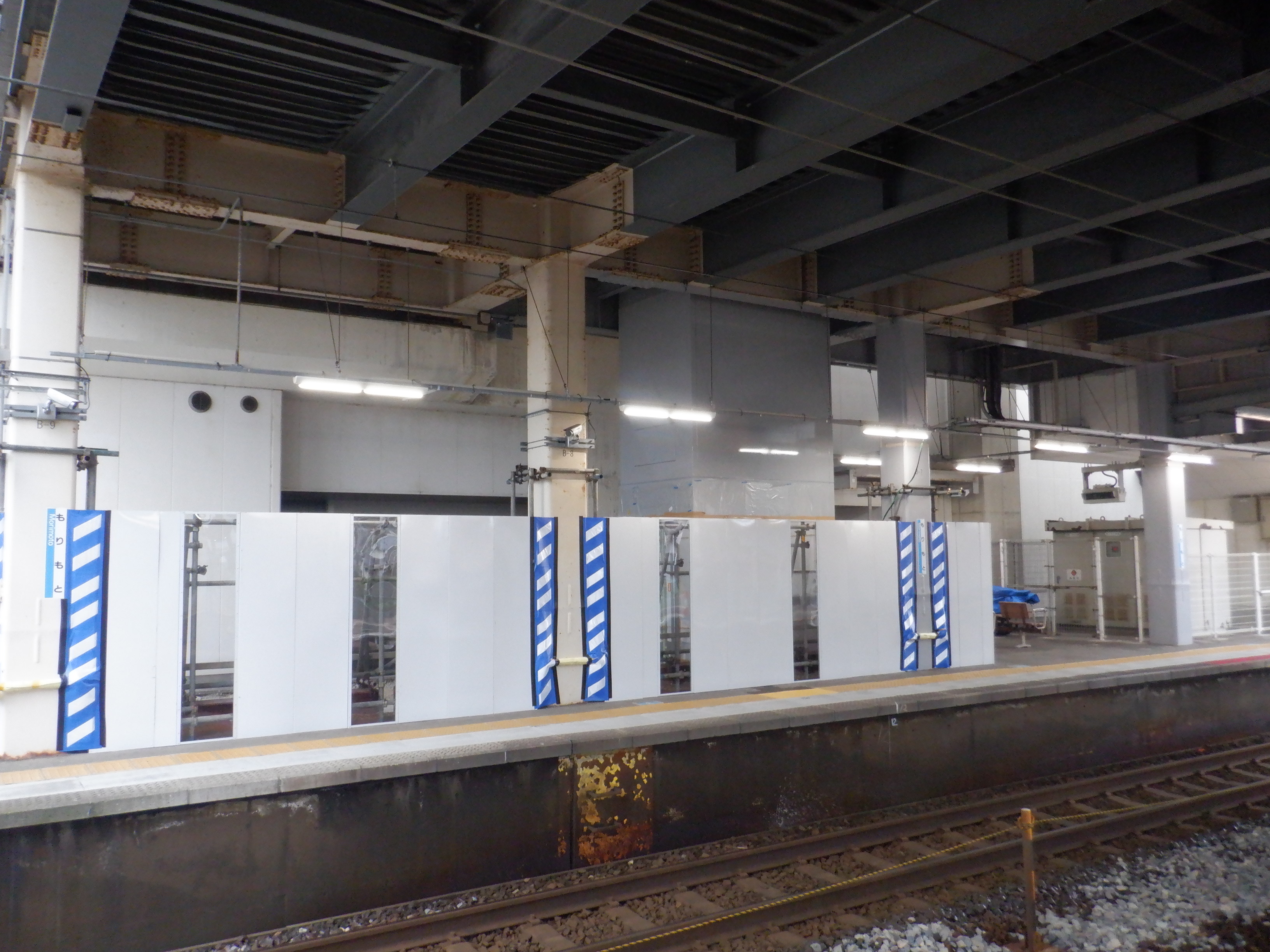 1番のりばの待合室移設工事のところ。待合室ができていました。