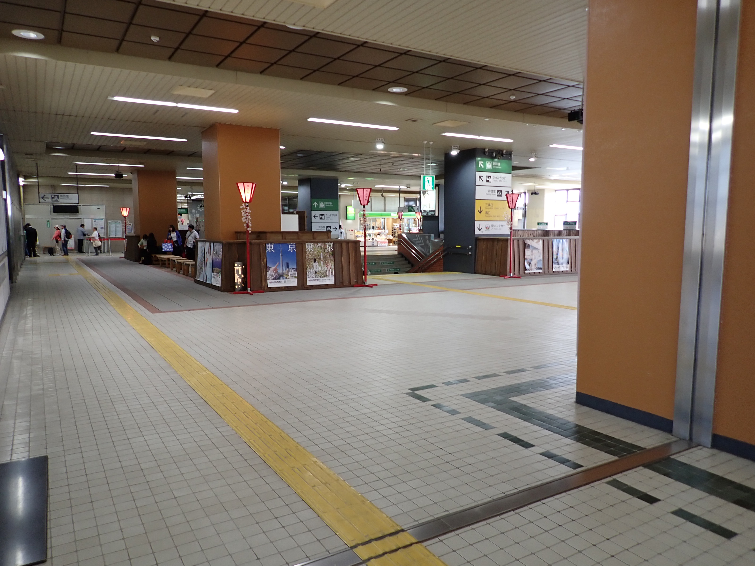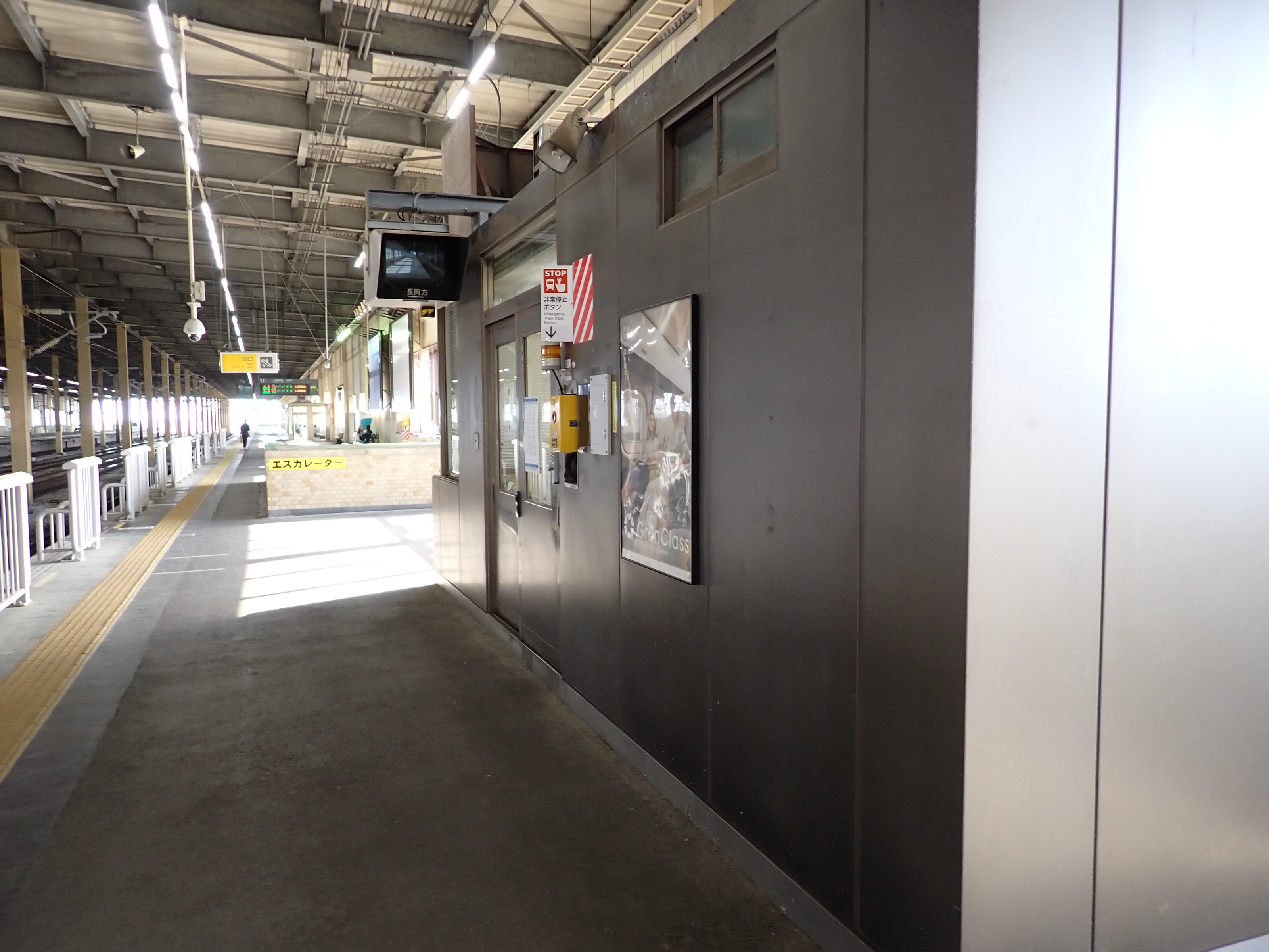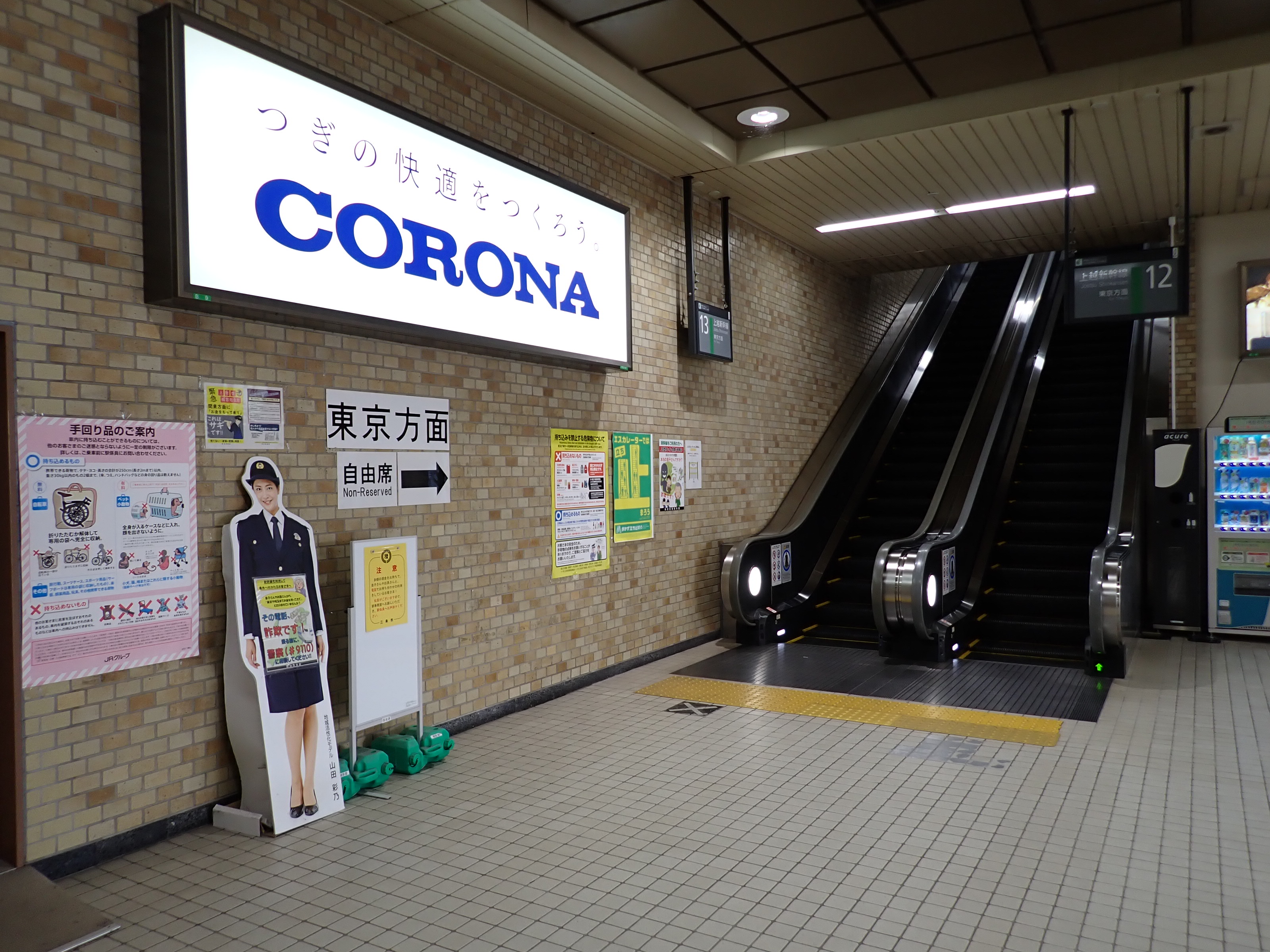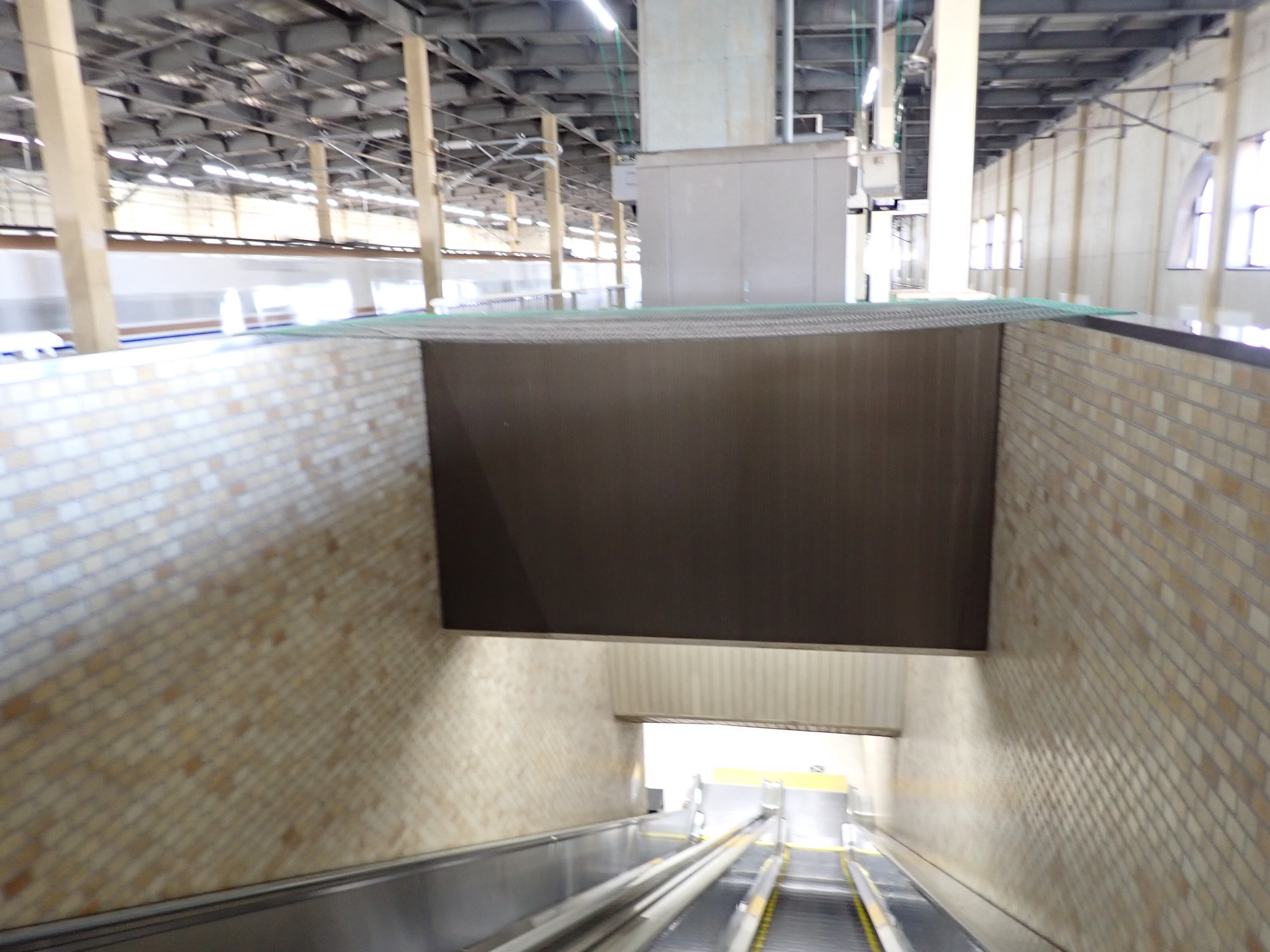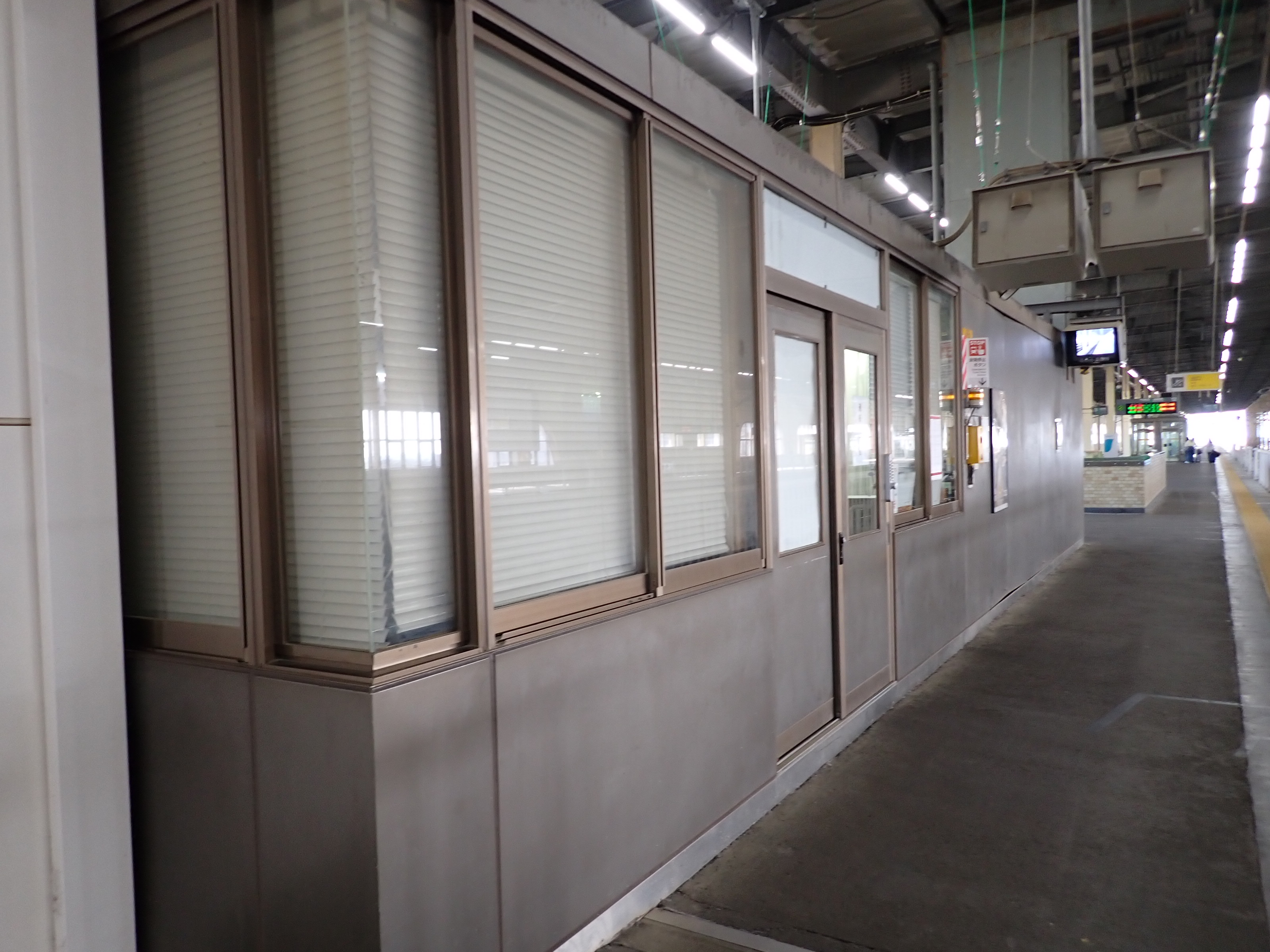 12・13番線のエスカレーターと階段の間。運転事務室付近の様子。