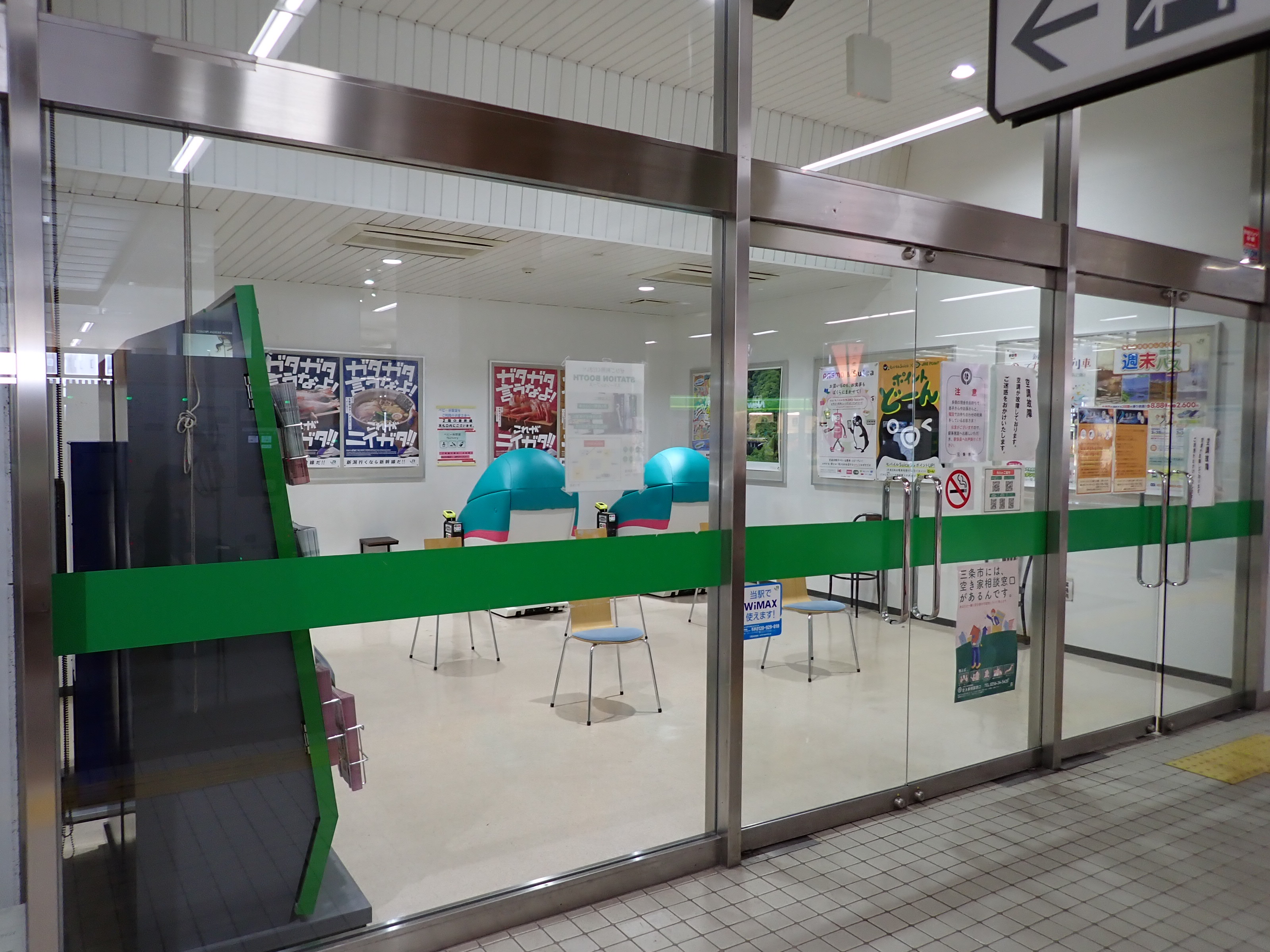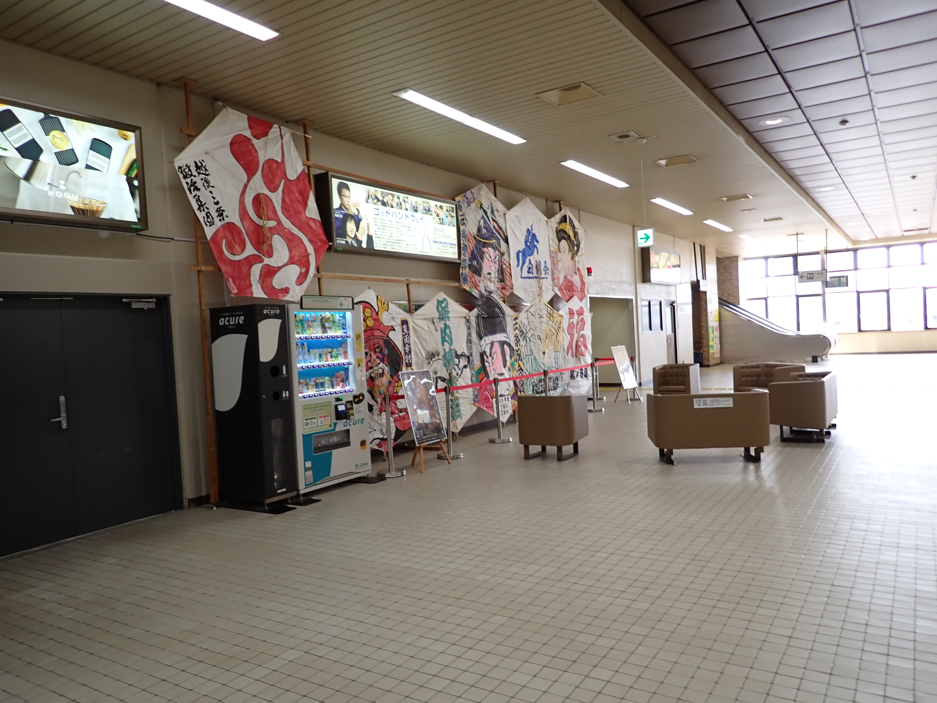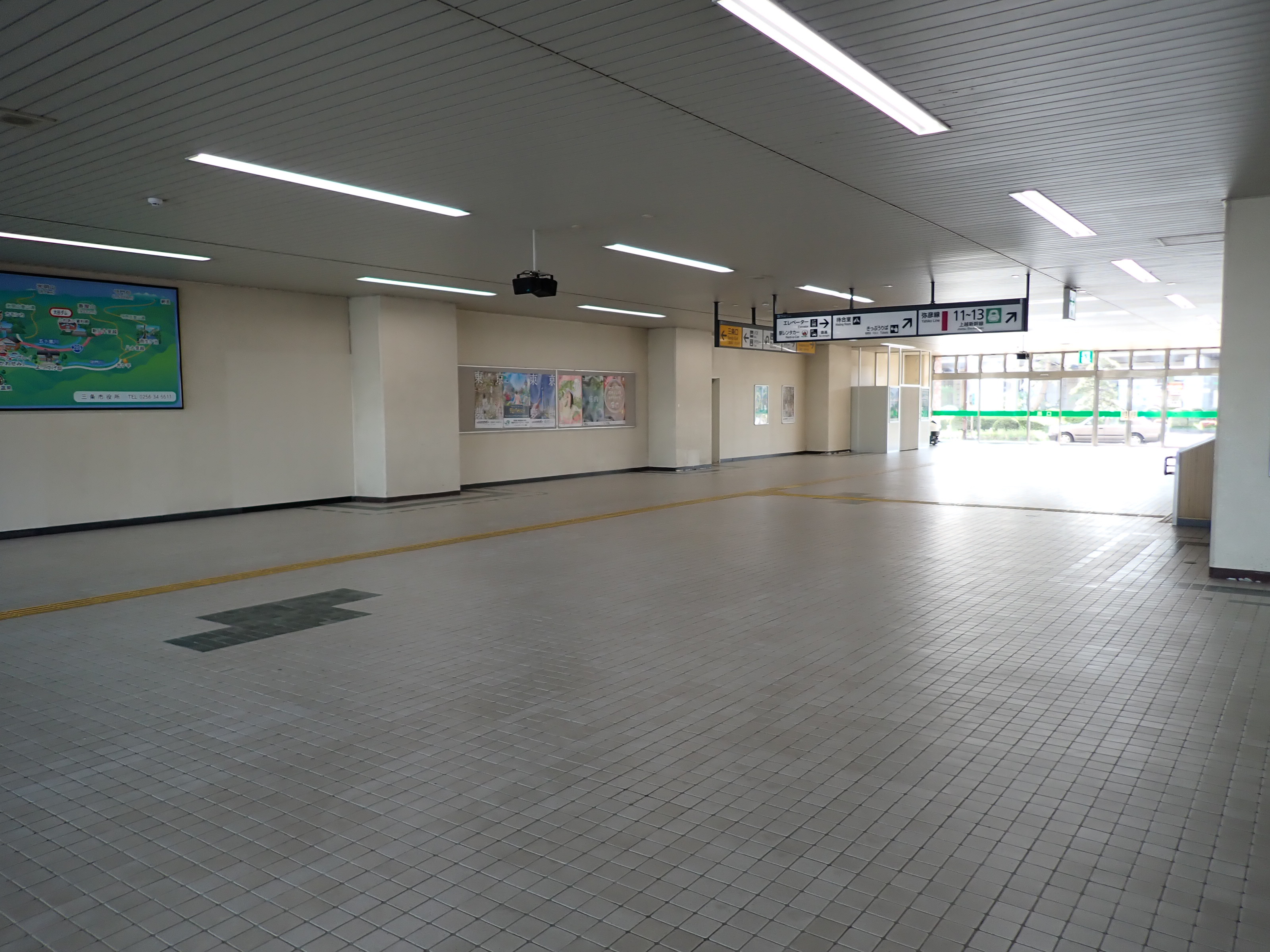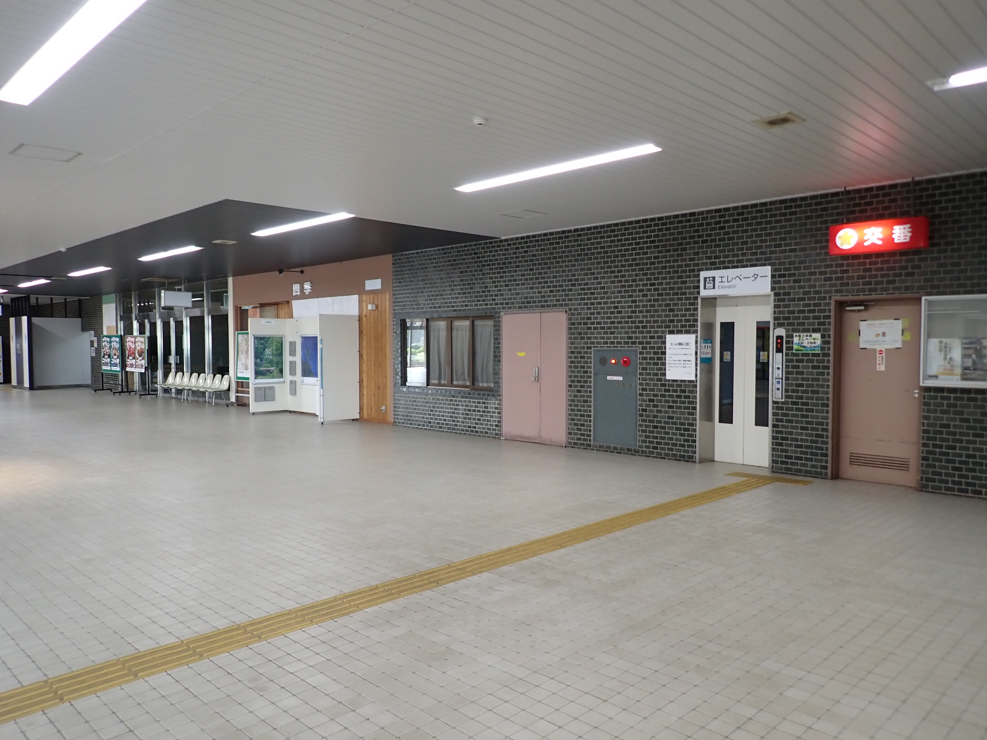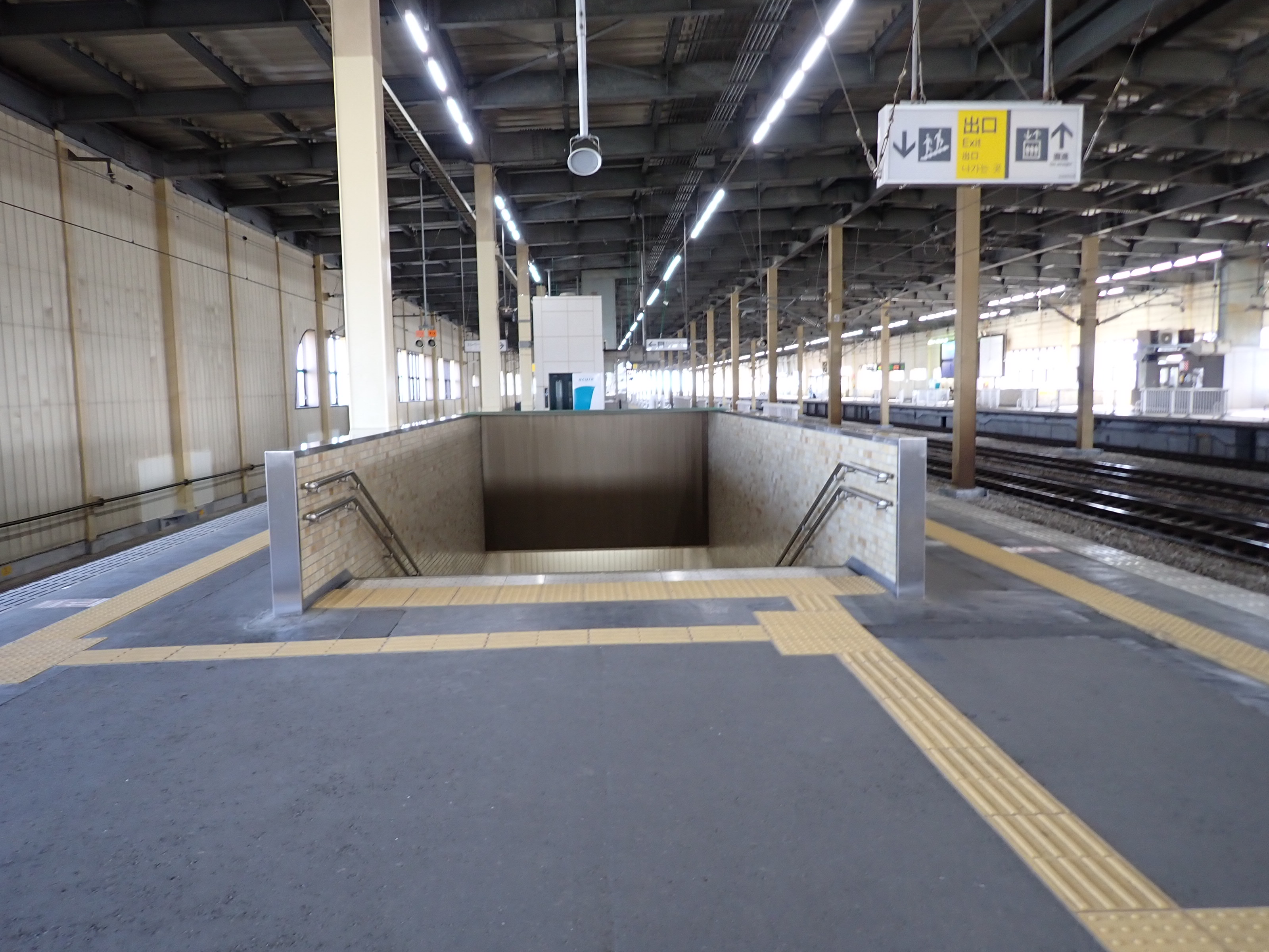 12・13番線のエスカレーターと階段の間。運転事務室付近の様子。