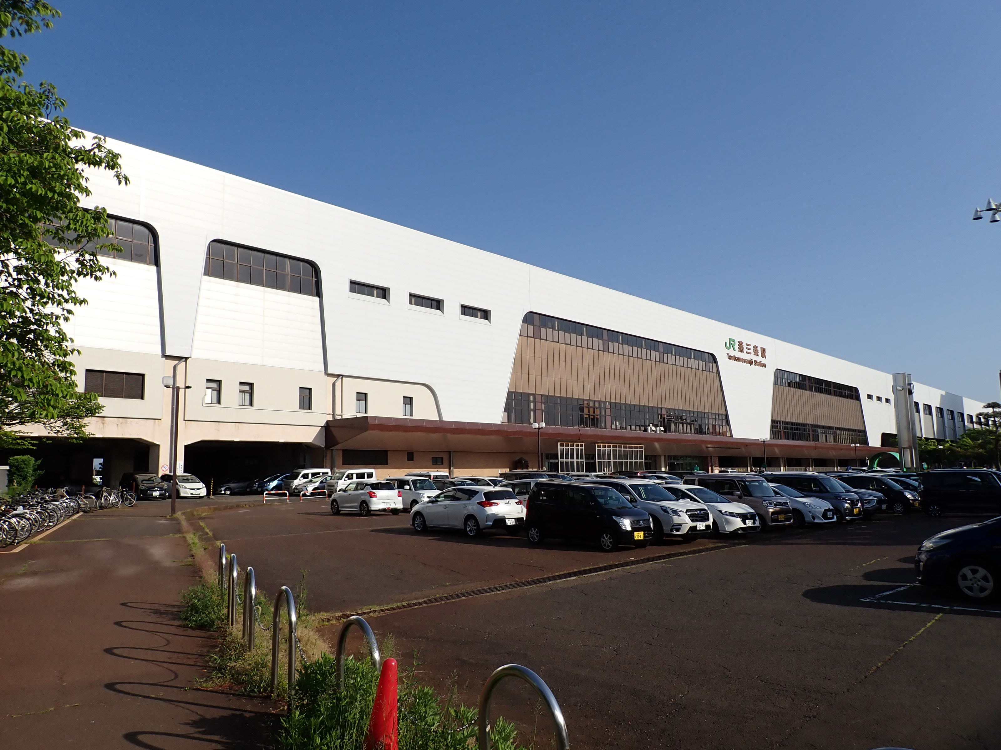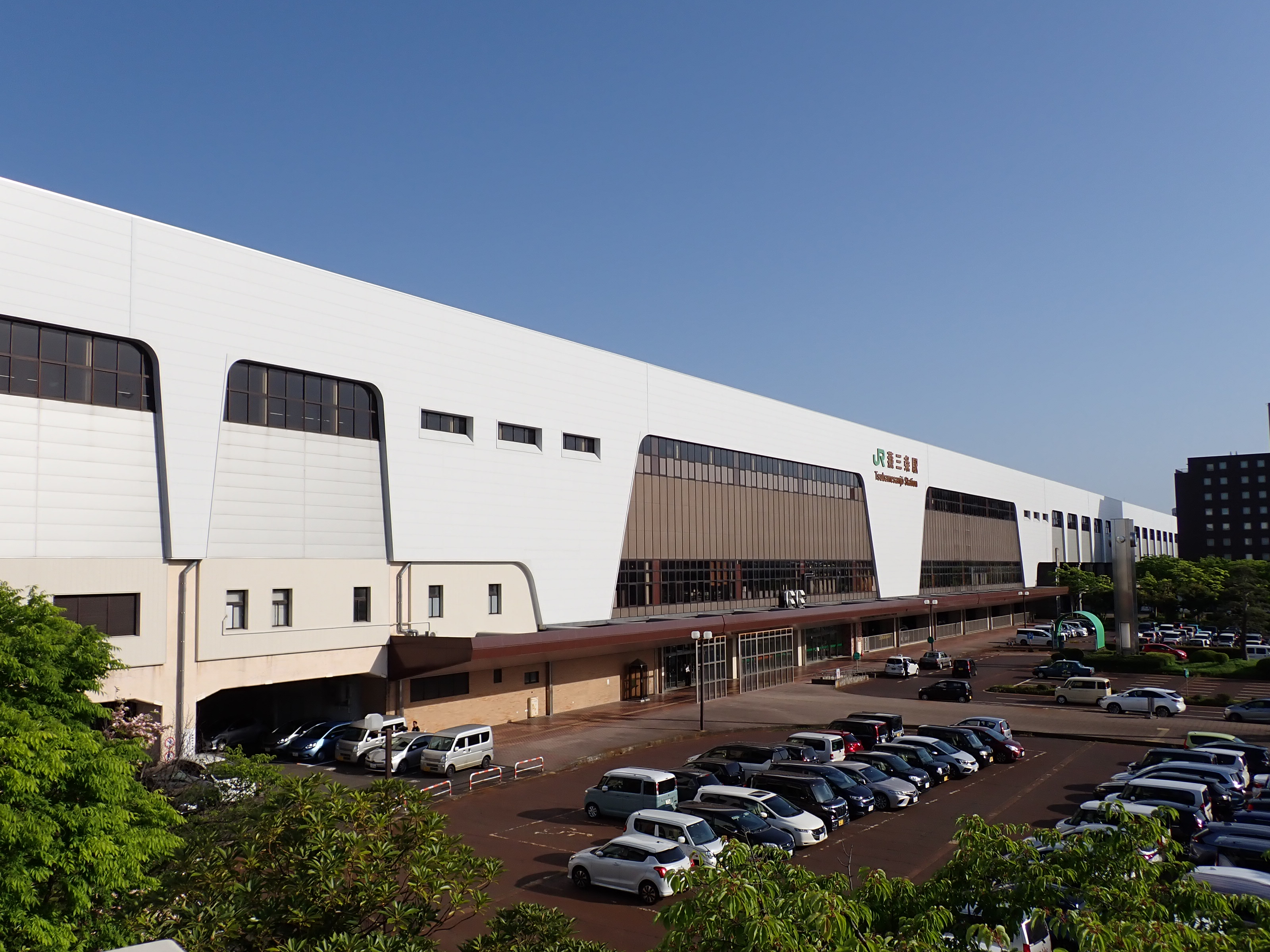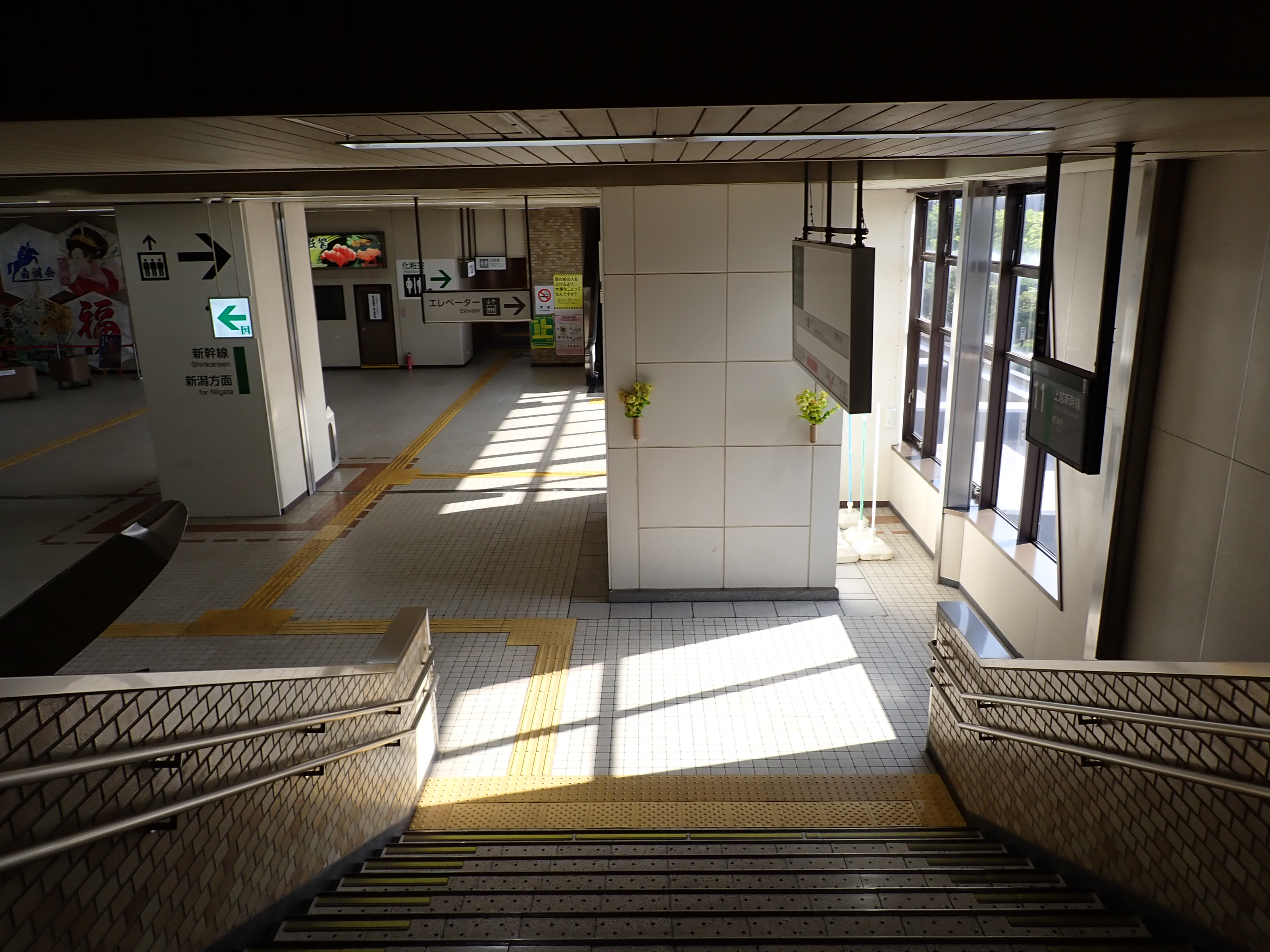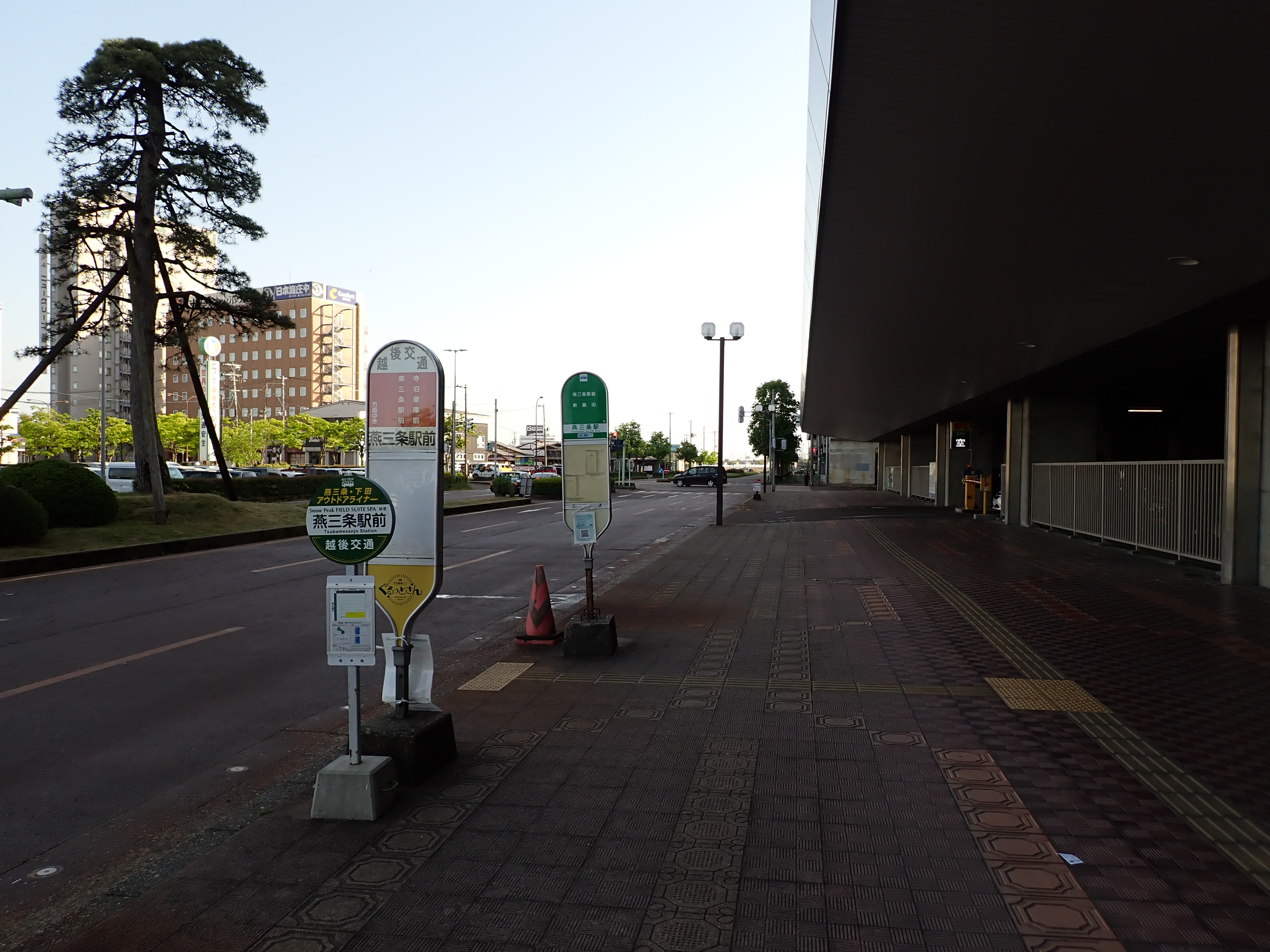 弥彦線と交差するところにある駅で、燕市と三条市の間に作られました。駅長室があるところが三条市なので、所在地は三条市となっています。それぞれの出入口も「燕口」「三条口」となっていて、規模等に差が出ないようになっていることがよく分かります。