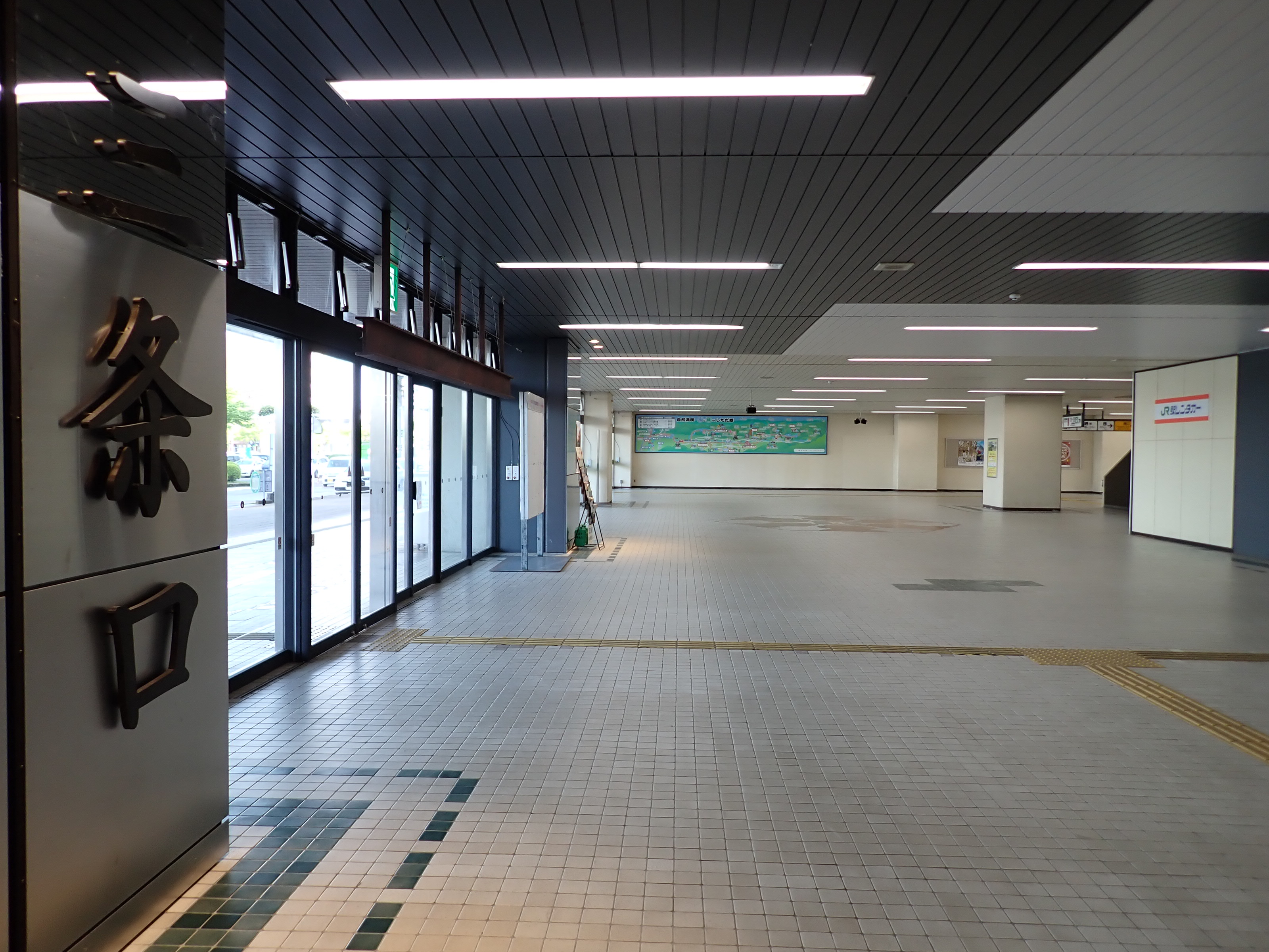 エスカレーターから駅前(燕口)を見おろしたところ。
