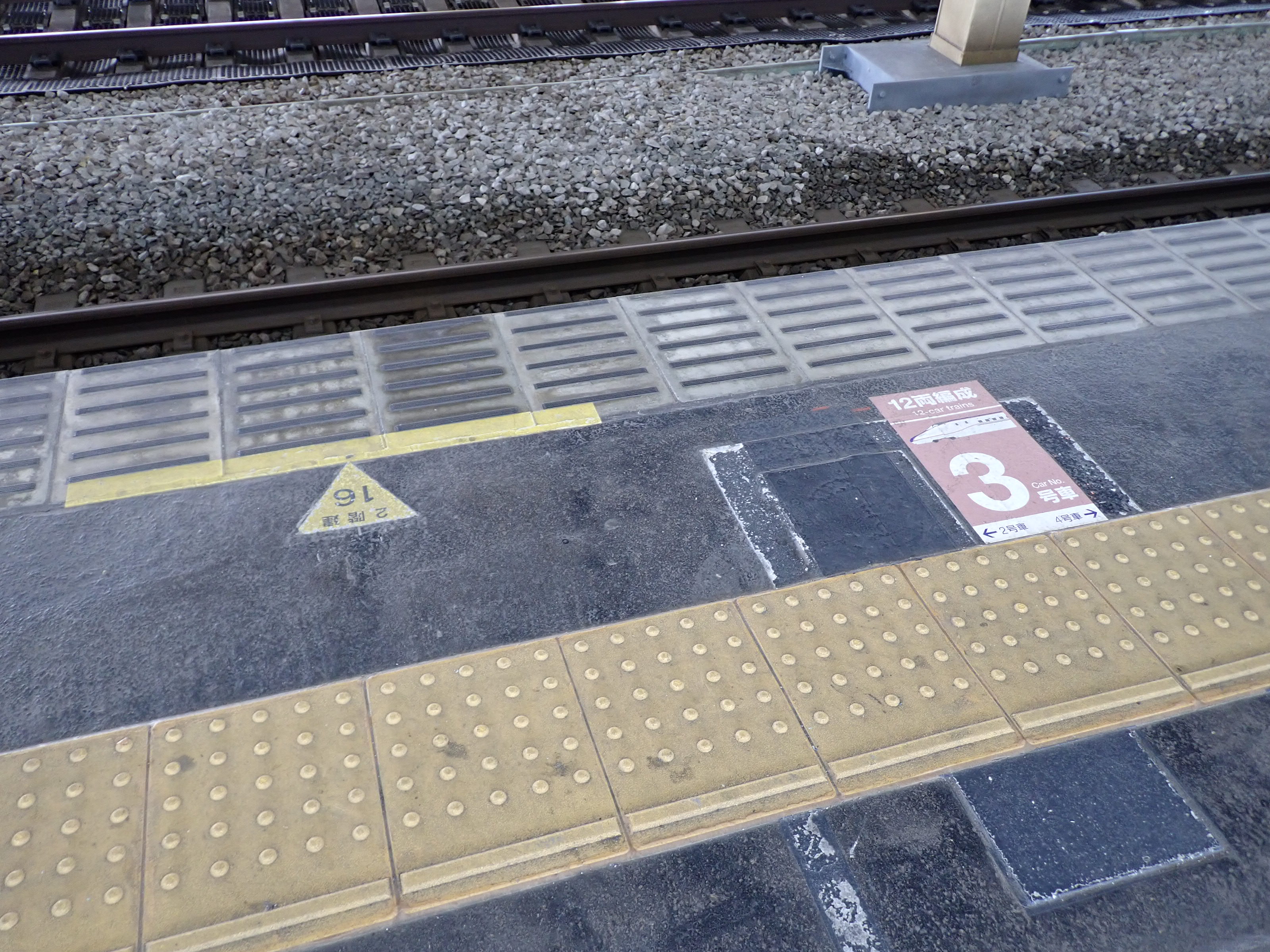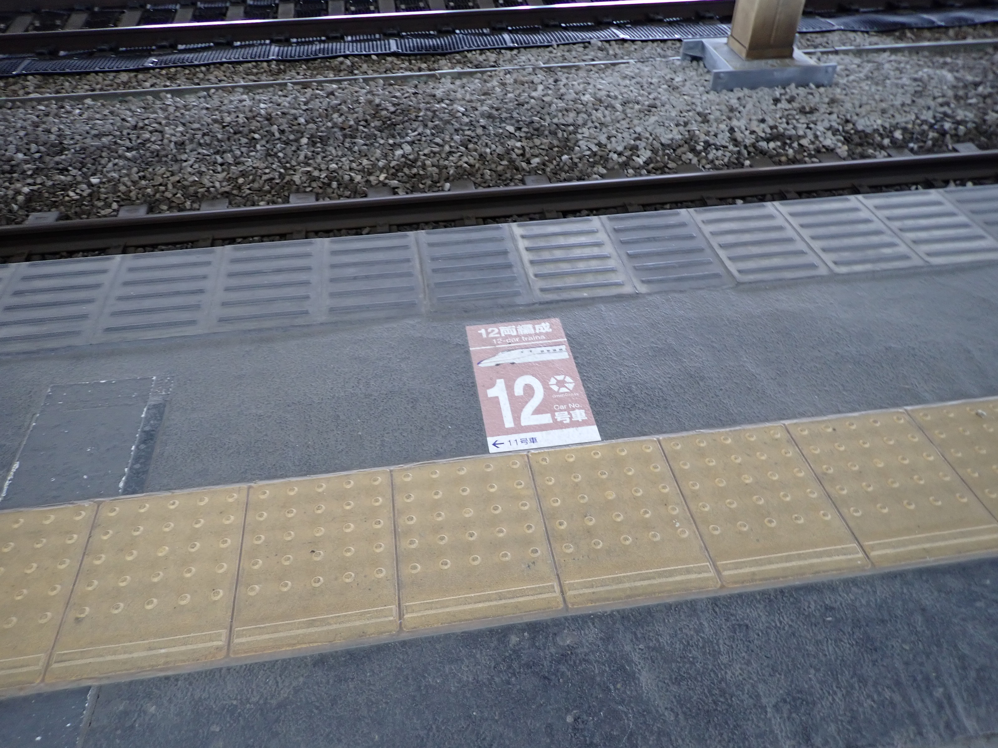 12号車の乗車位置で、ここまでが現在の列車が停車する範囲となります。