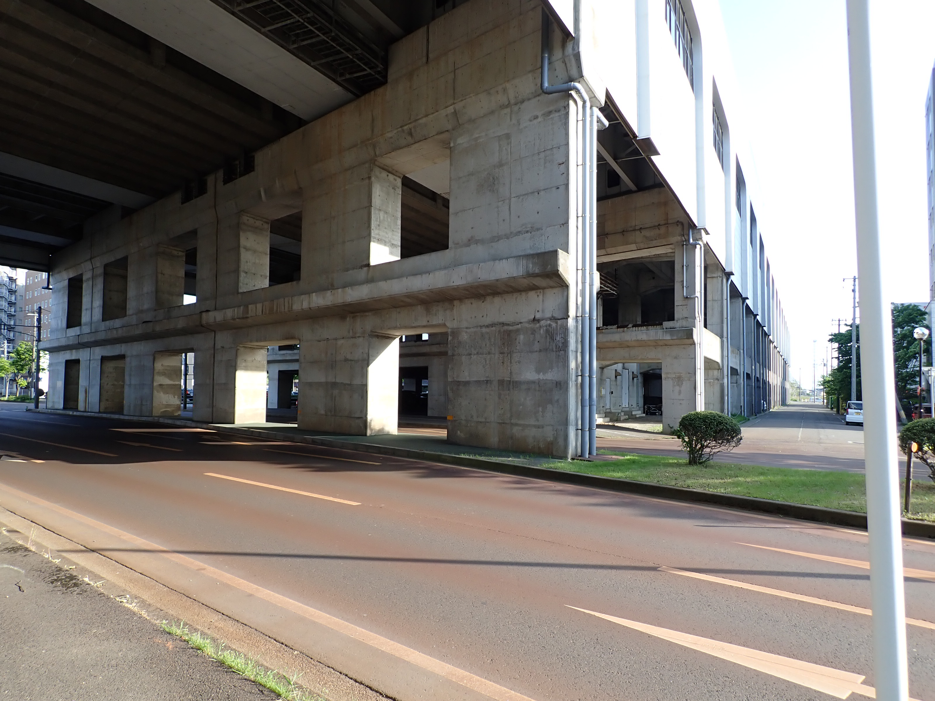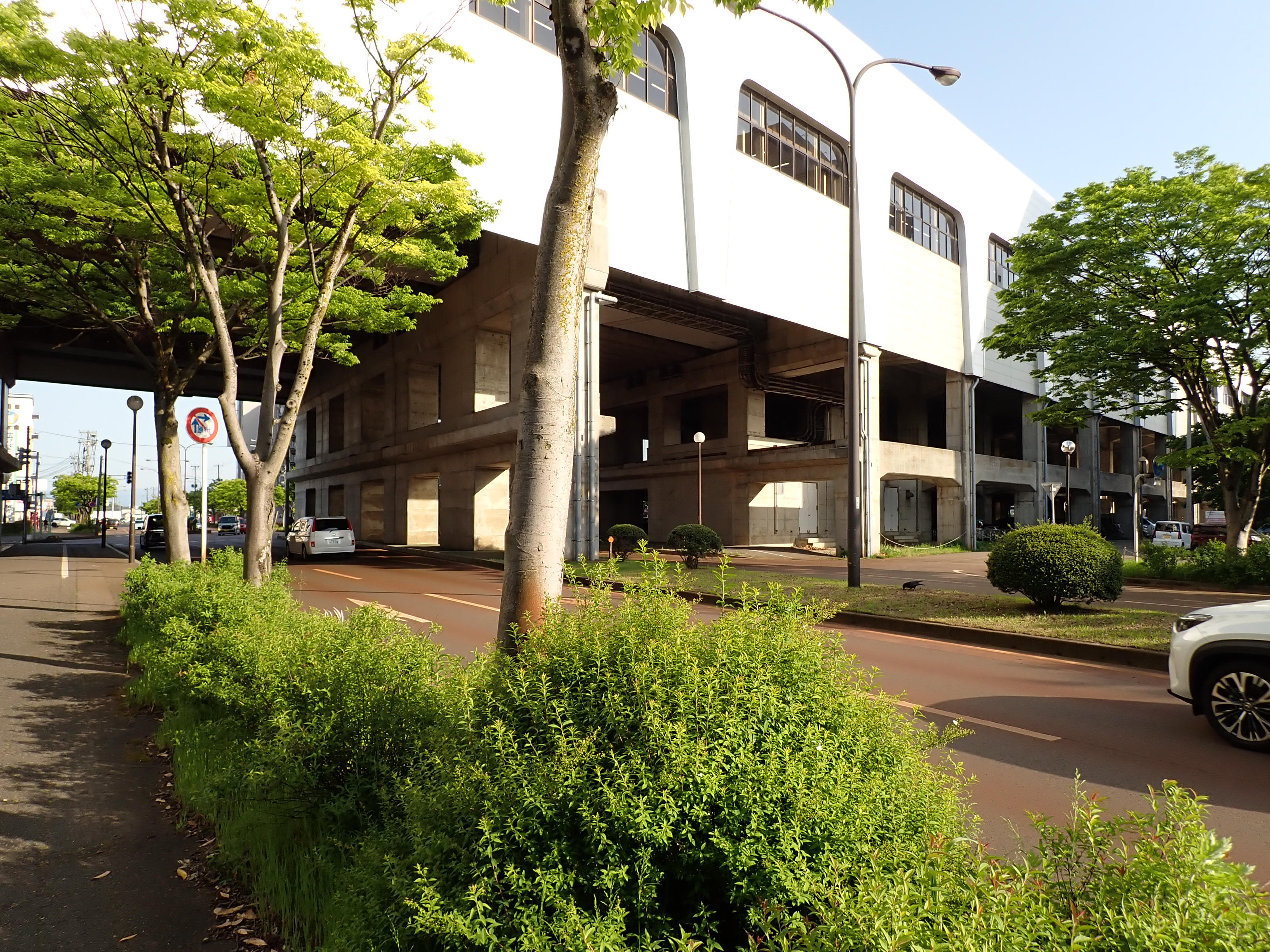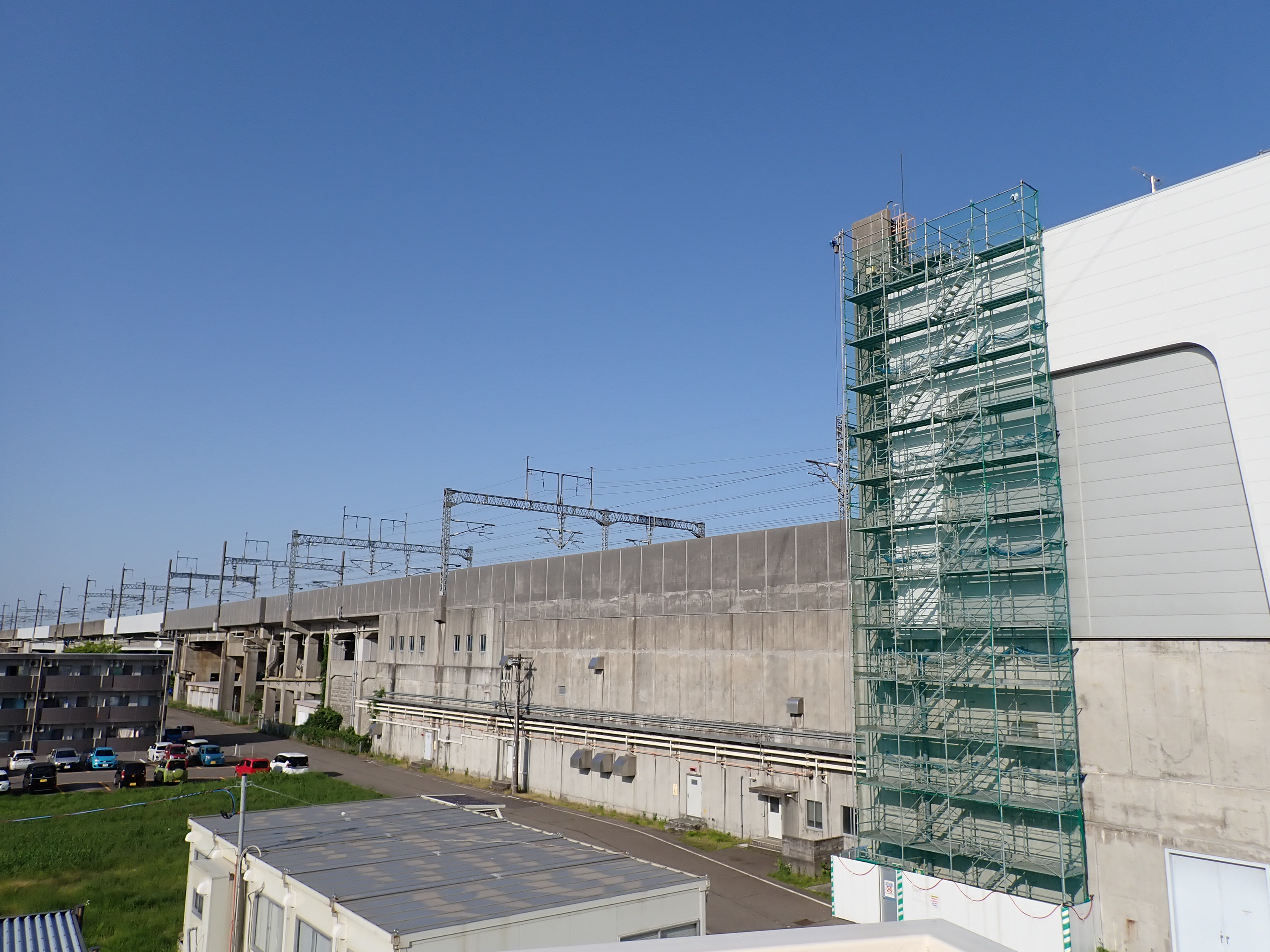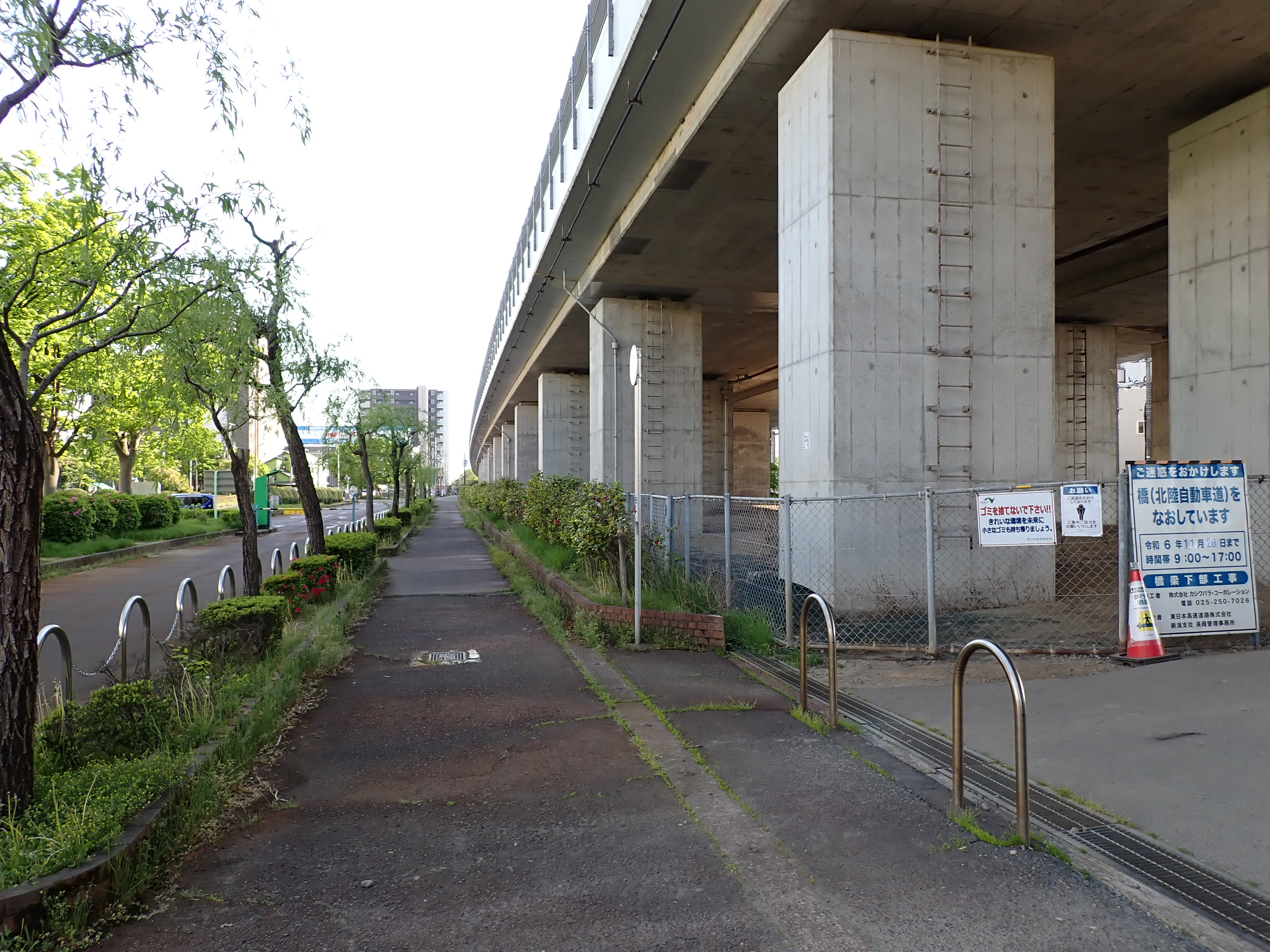駅前広場の向かい側、北陸自動車道の高架付近。