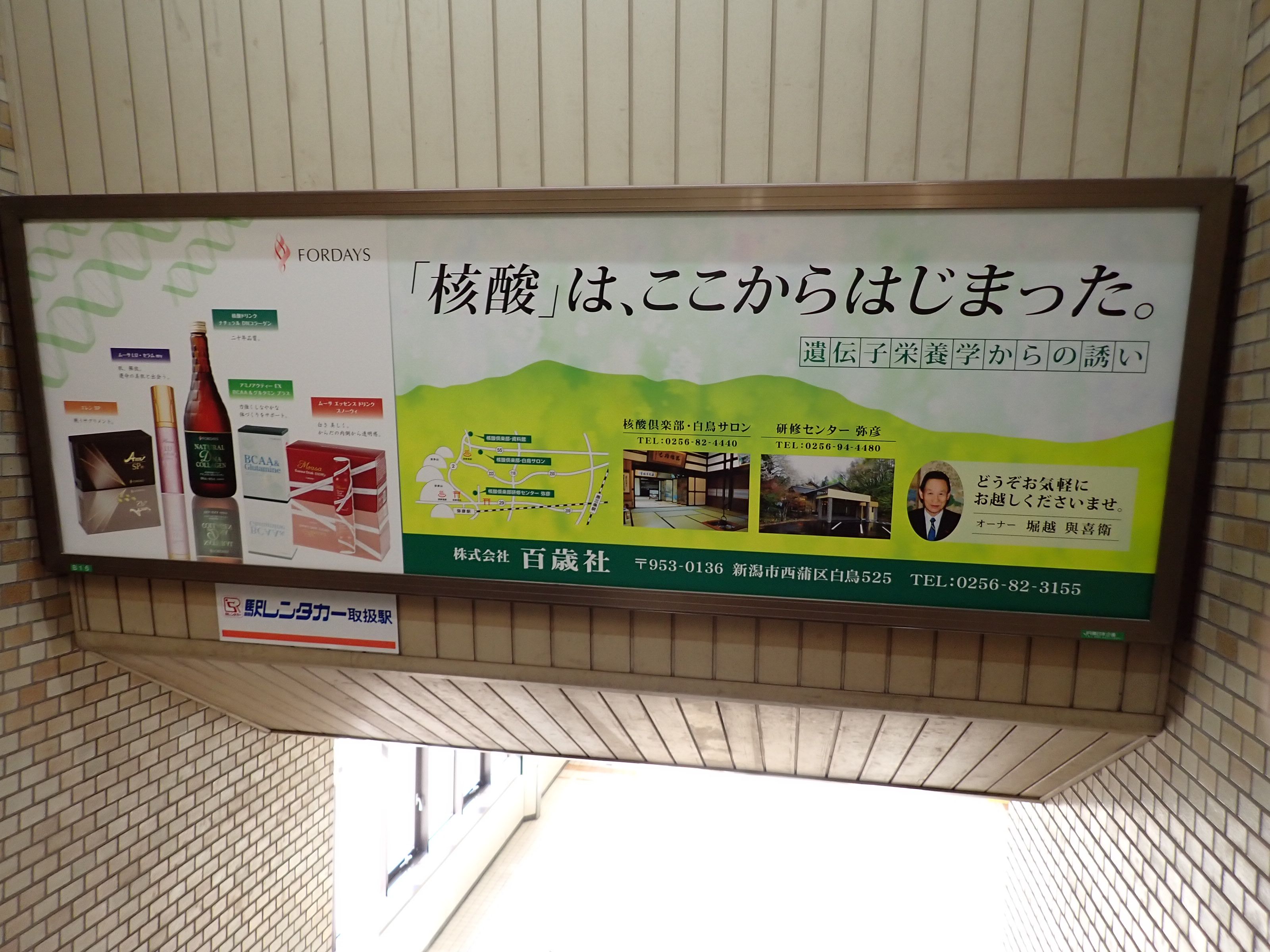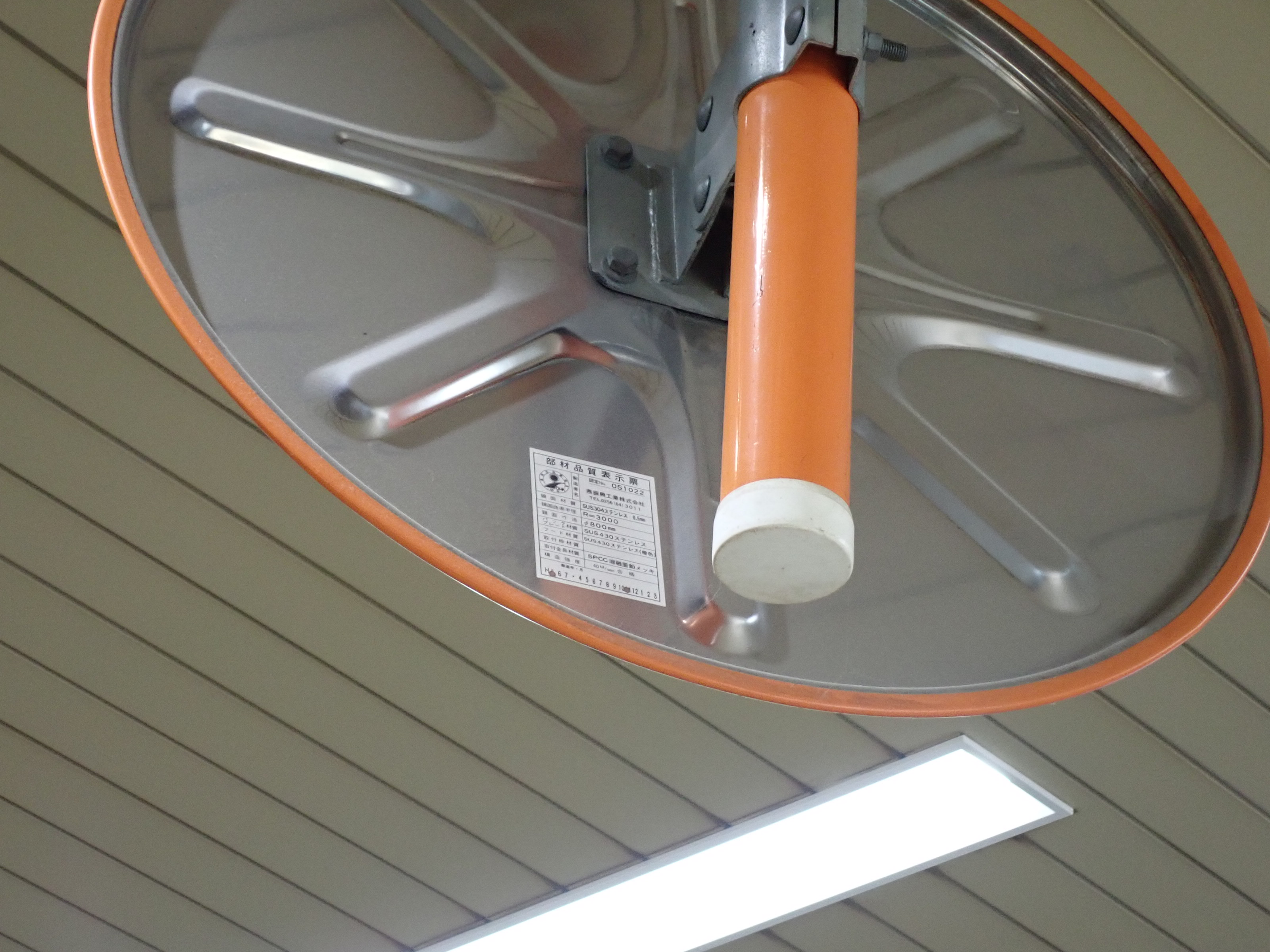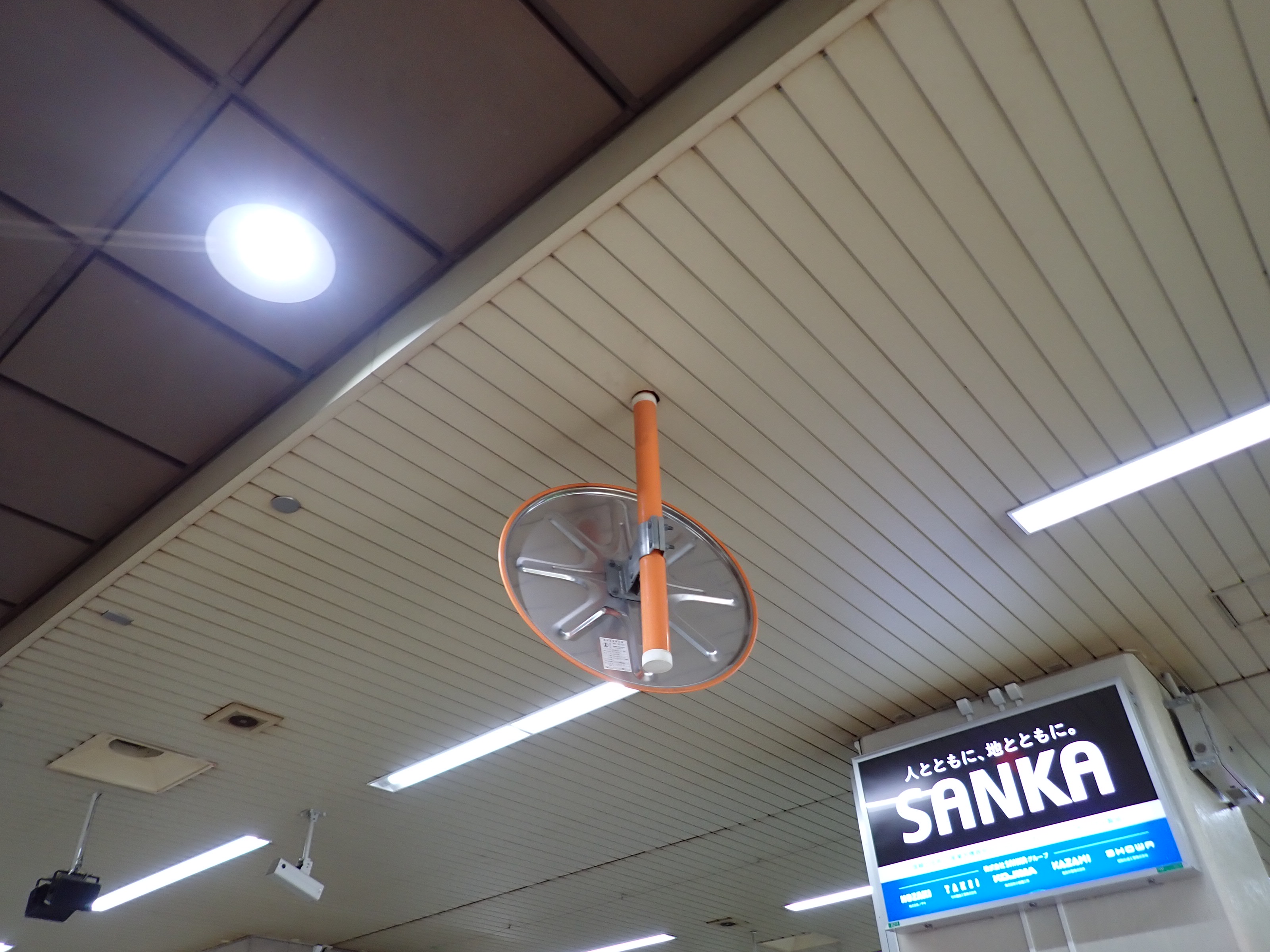 改札口にあるミラー。地元、燕振興工業さんのものが使われています。