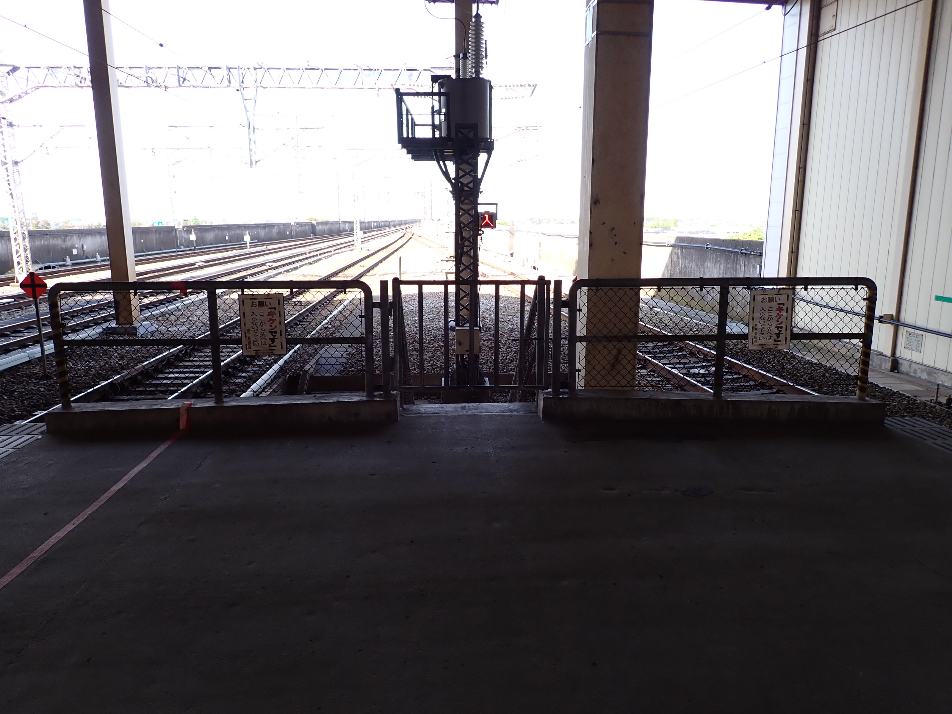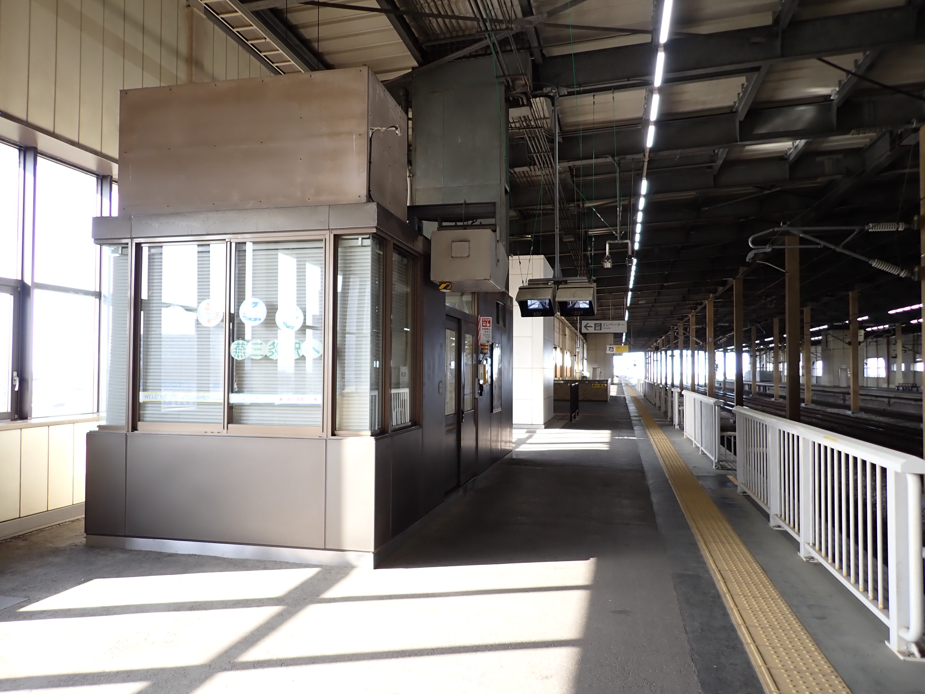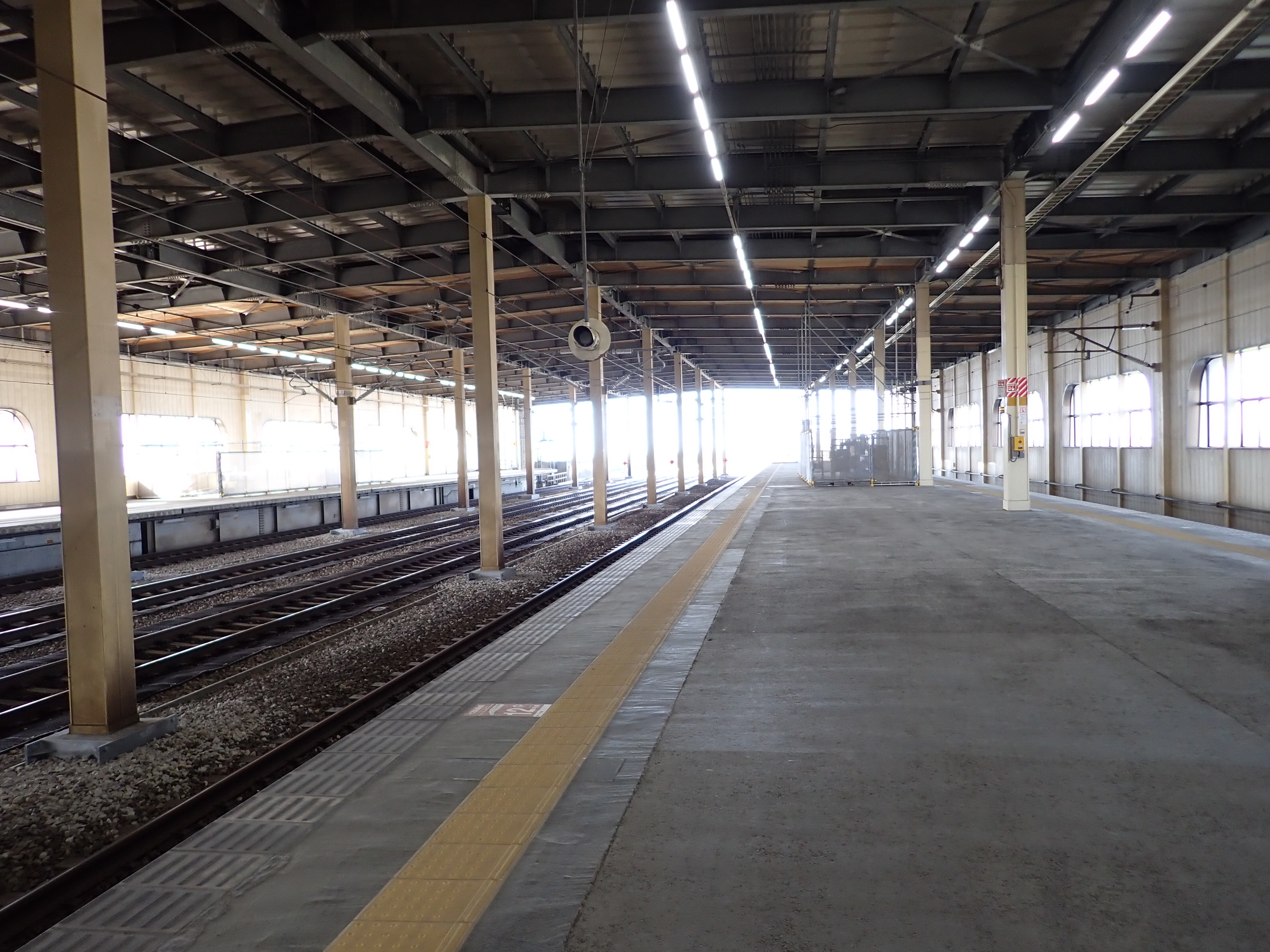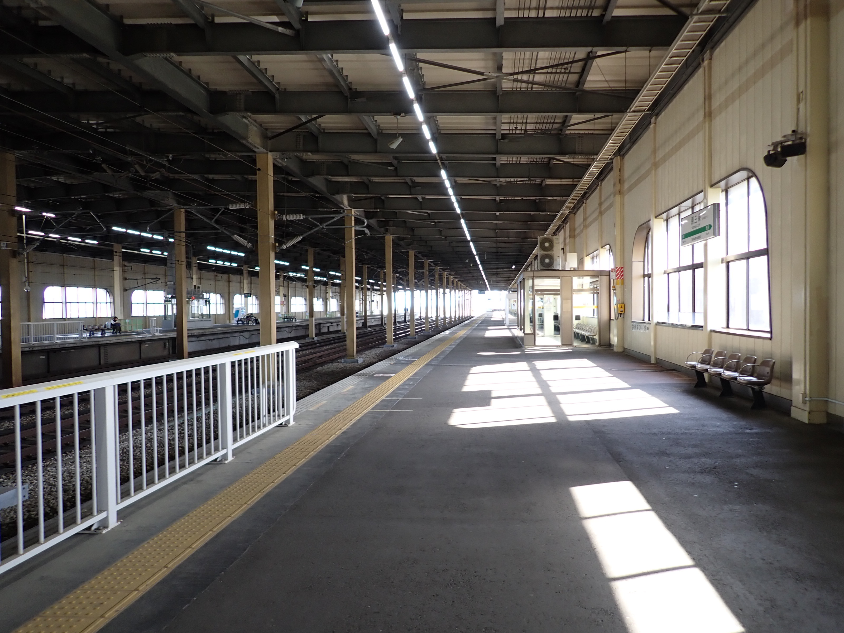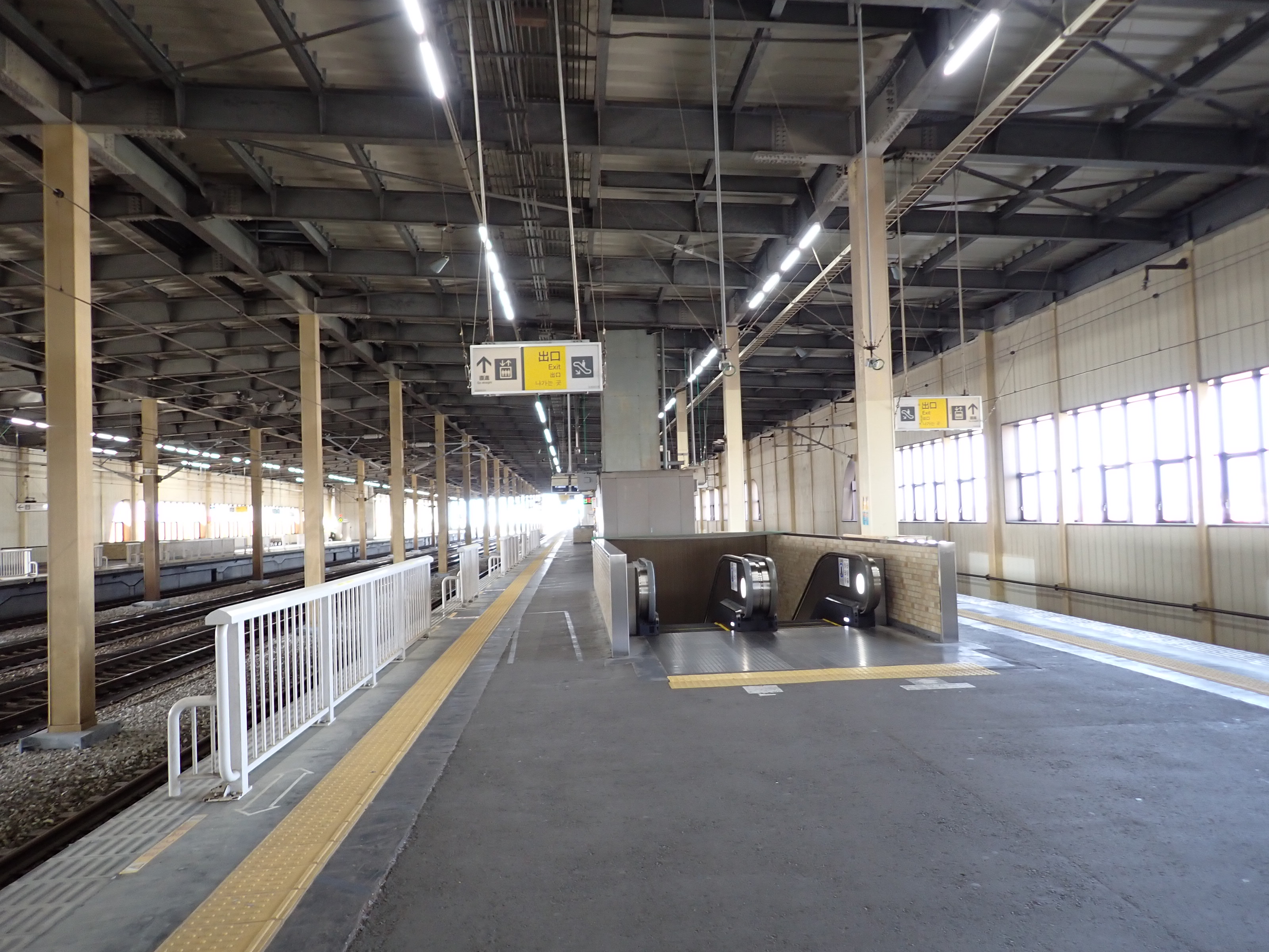 ホームの新潟駅側。現在、12両編成の列車が停車しない範囲。一部囲いがされています。