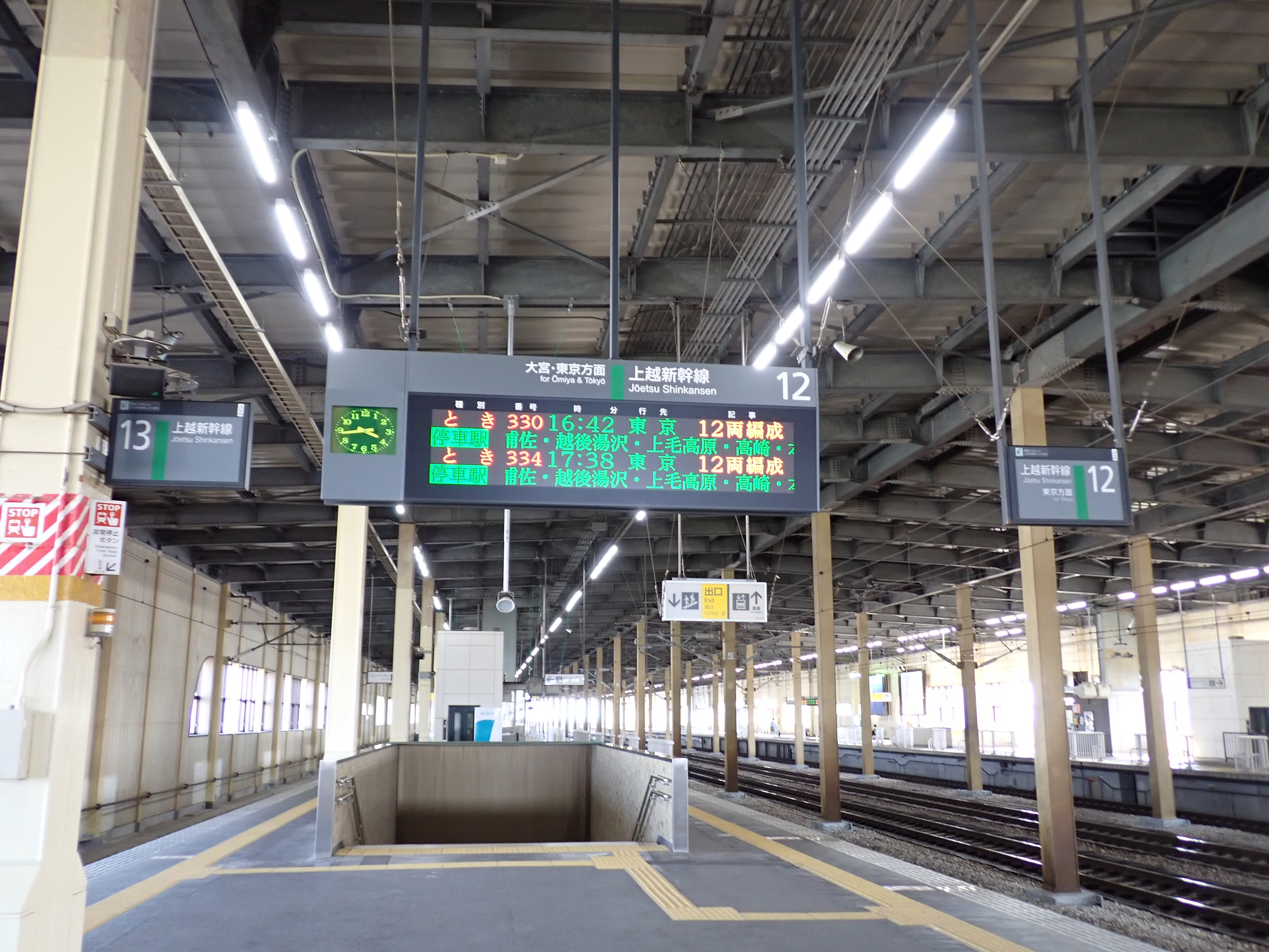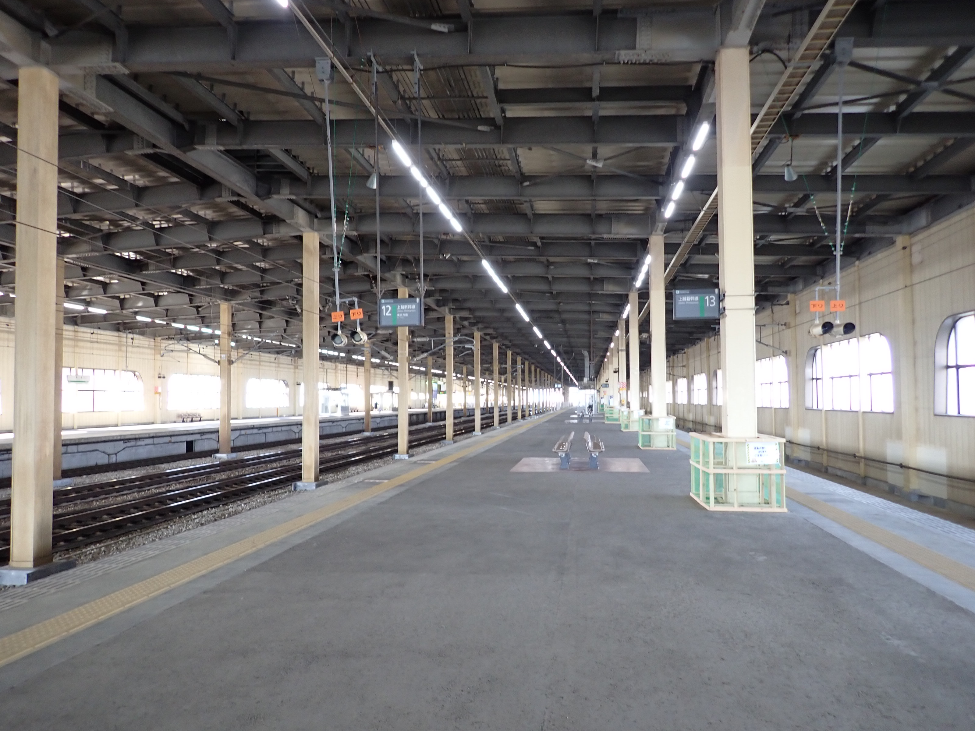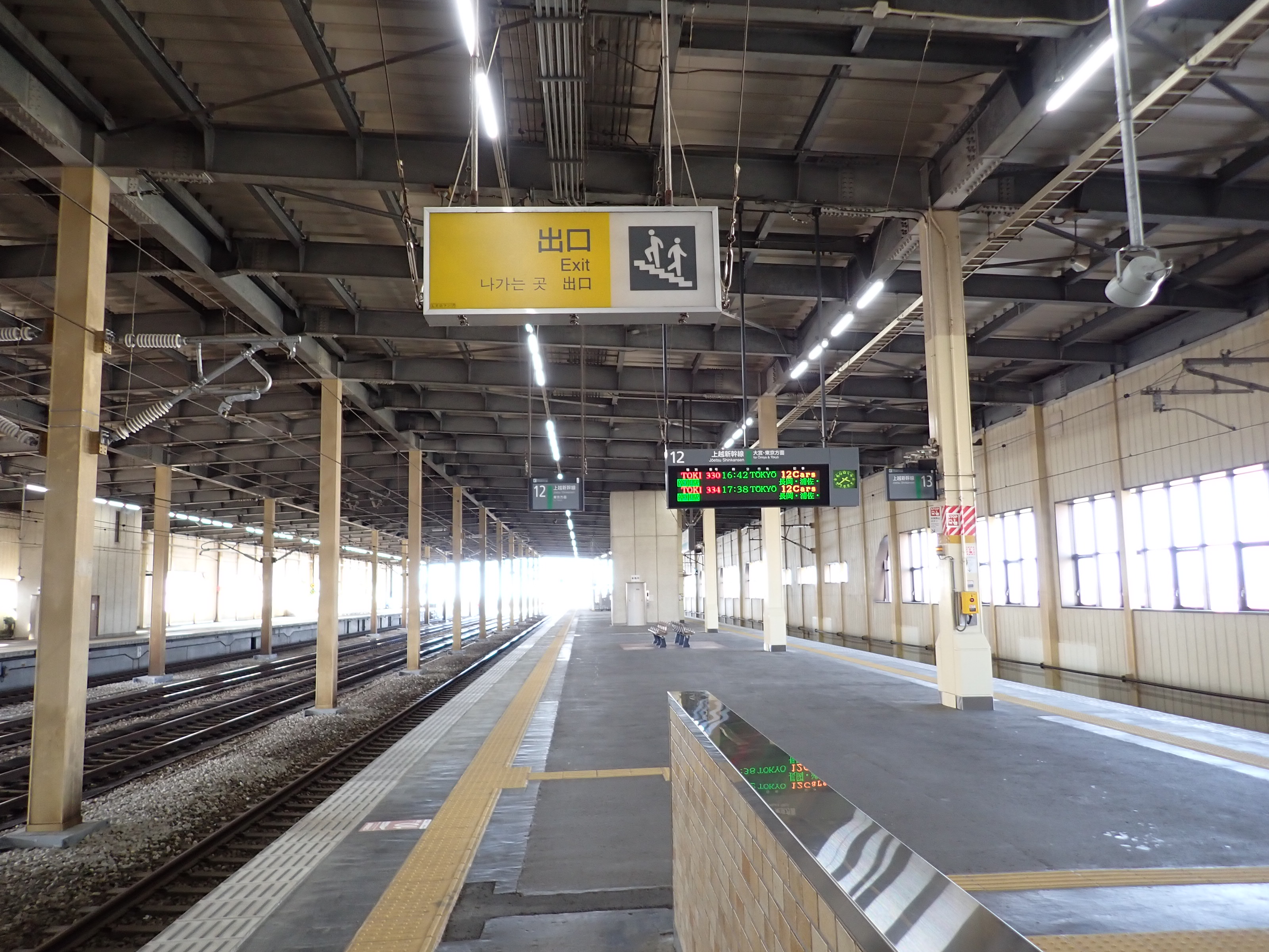 12・13番線の長岡駅側から中央部へ進みます。喫煙所など。