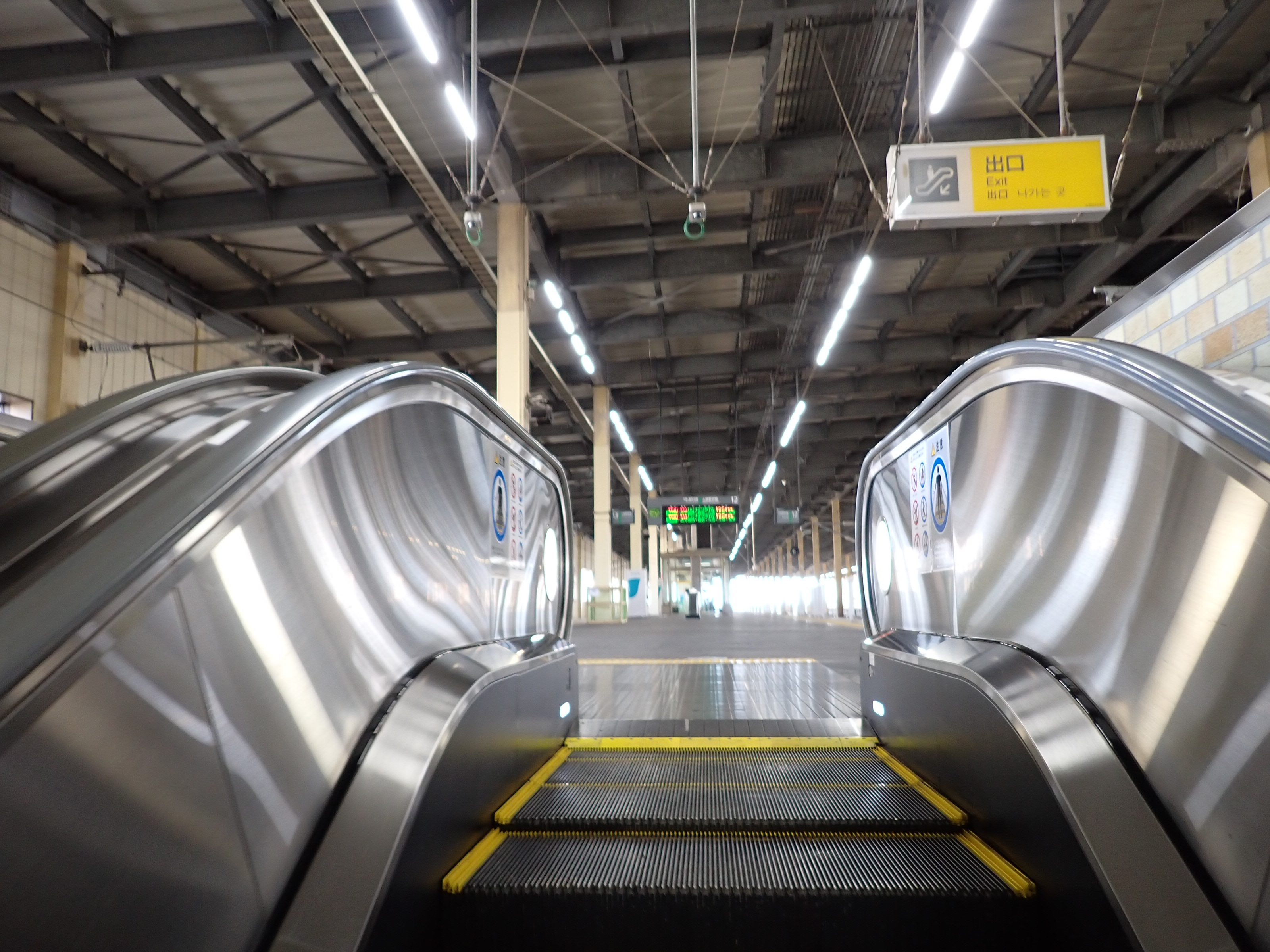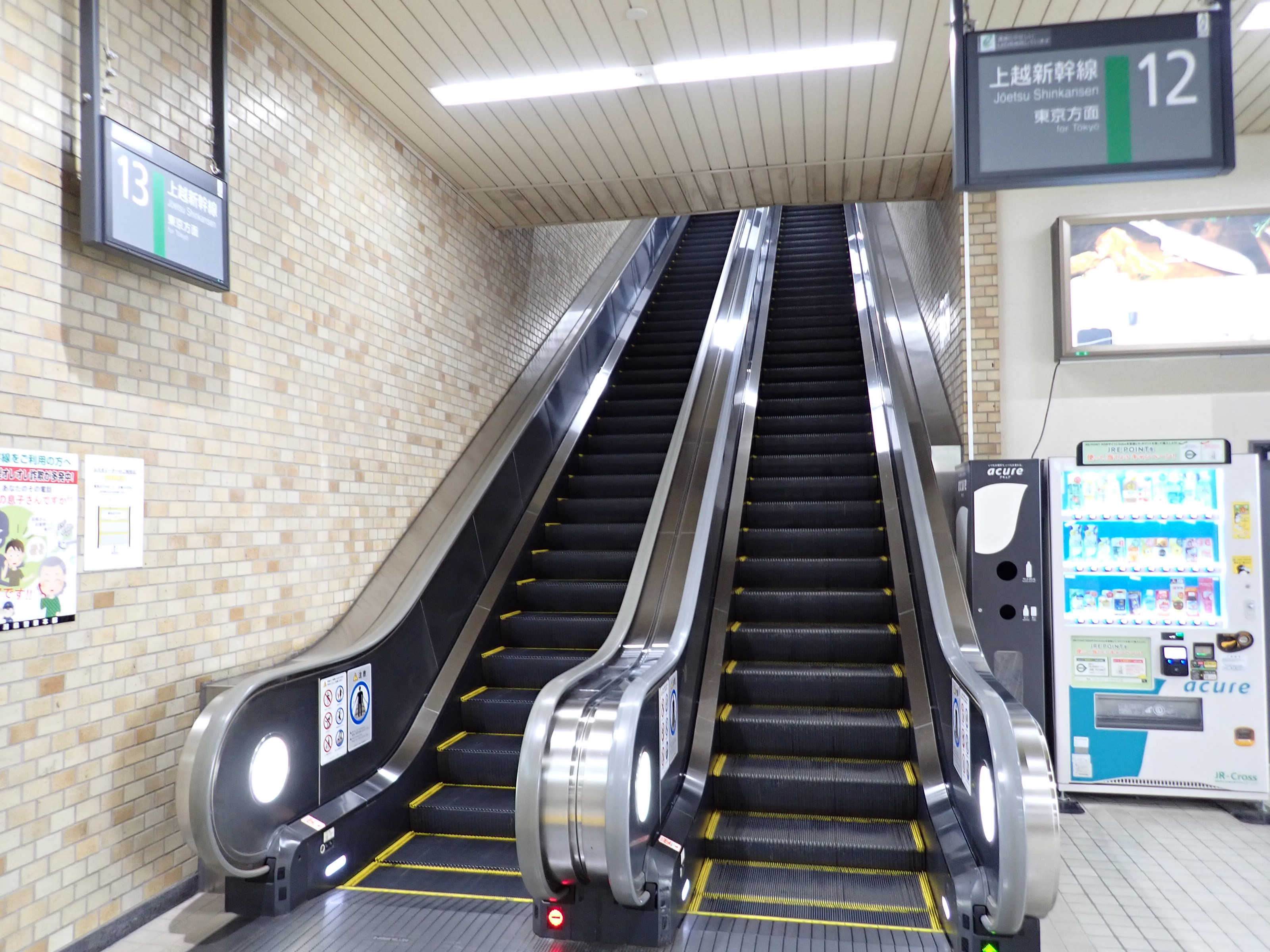 12・13番線の階段・エスカレーターで上がって行くところ。