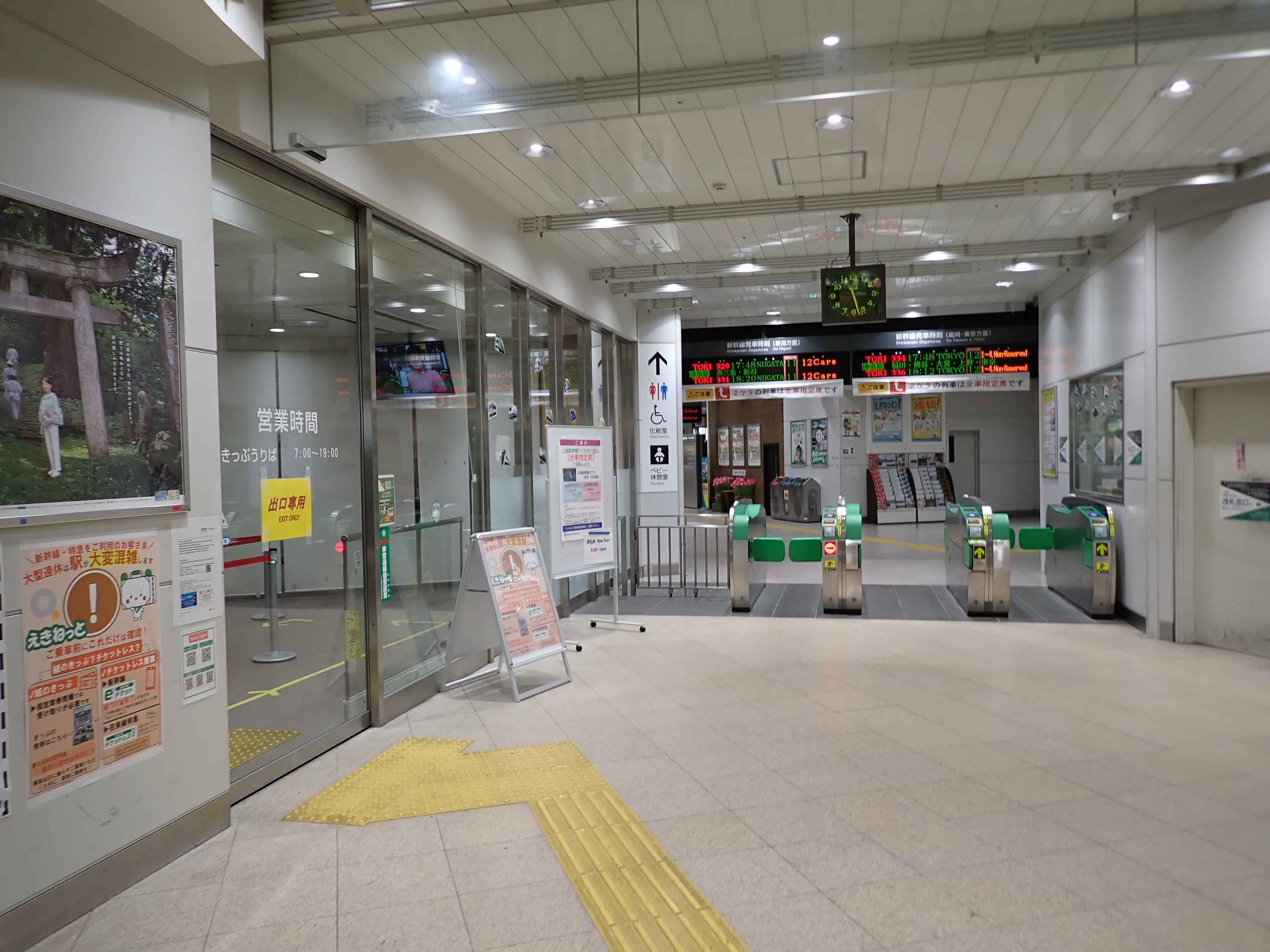 新幹線改札内から見た出口の改札口とのりかえ改札口。