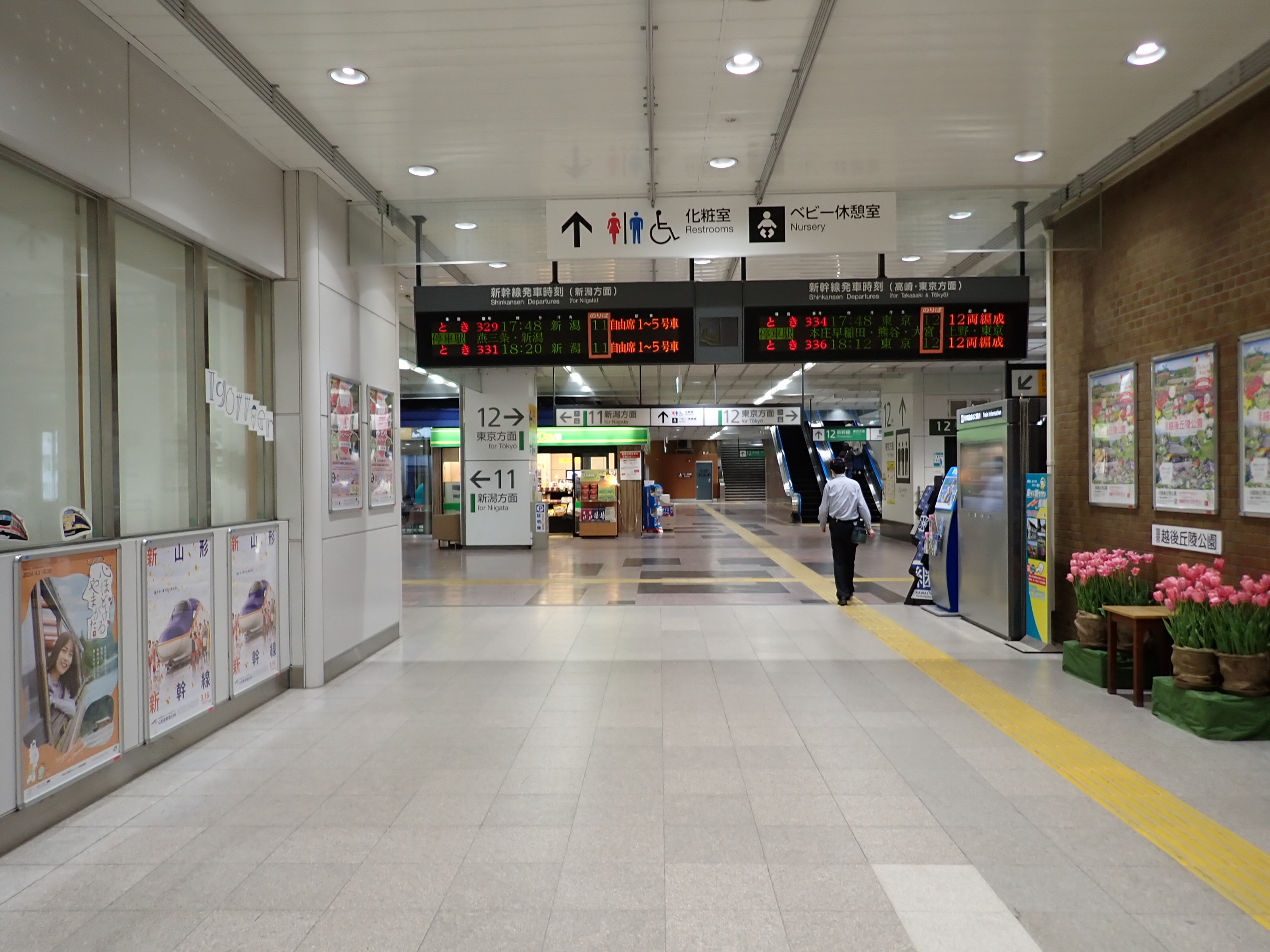 かつては北陸方面からの乗換客で賑わった駅で、「はくたか」運転開始により越後湯沢での乗換に移った後も、「北越」からの乗換が残っていました。現在はその役割はありませんが、上越新幹線の主要駅の一つとして賑わっています。