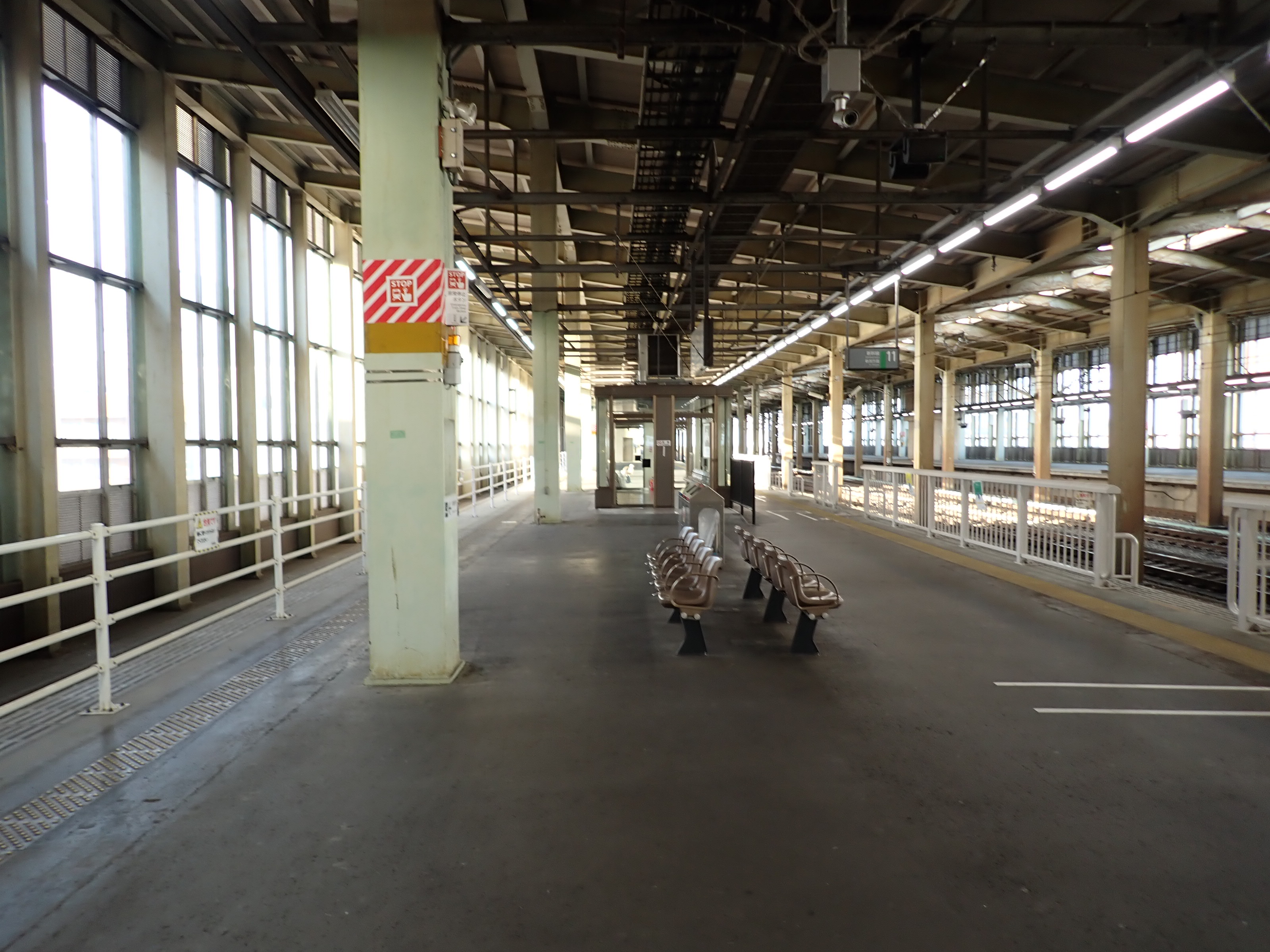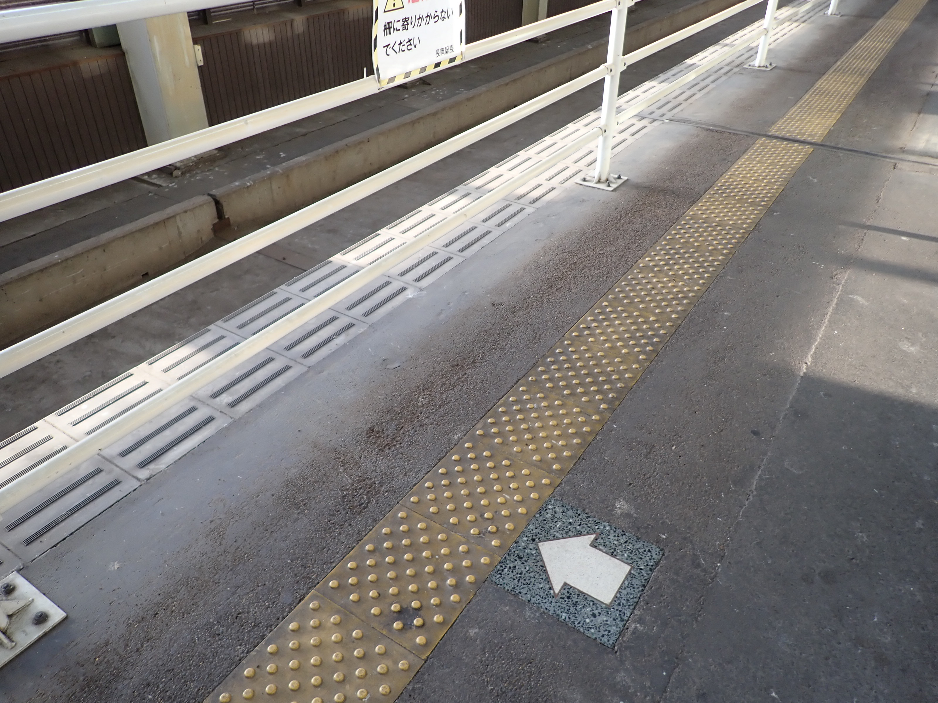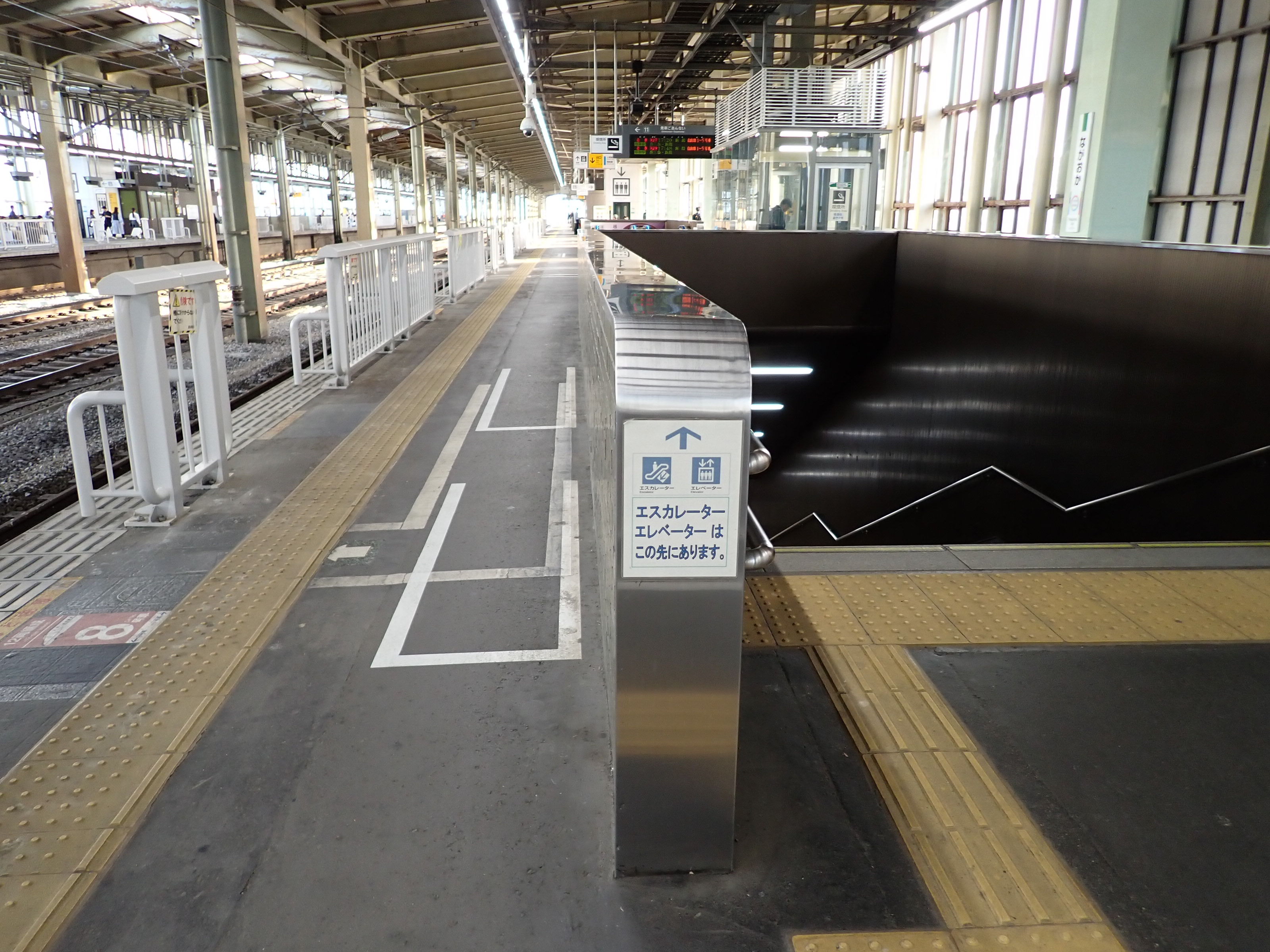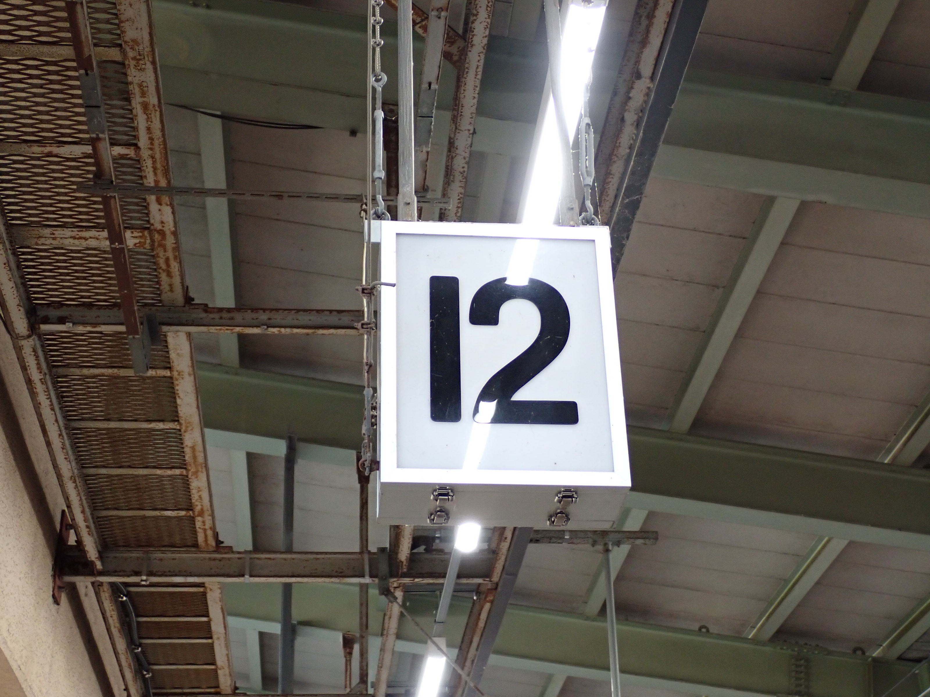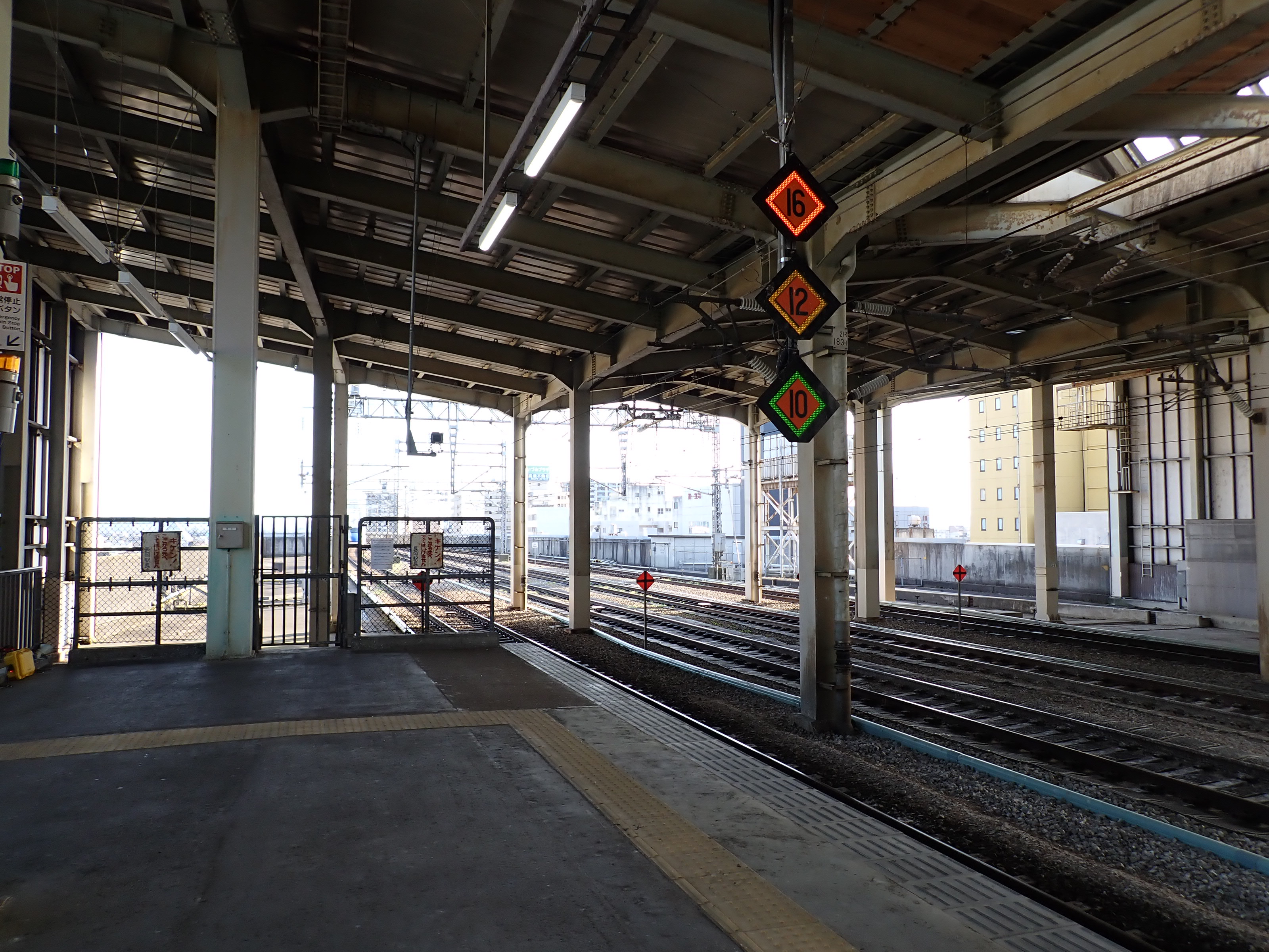 12番線の燕三条駅側。このあたりは12両編成に固定されてから乗車位置ではなくなっています。