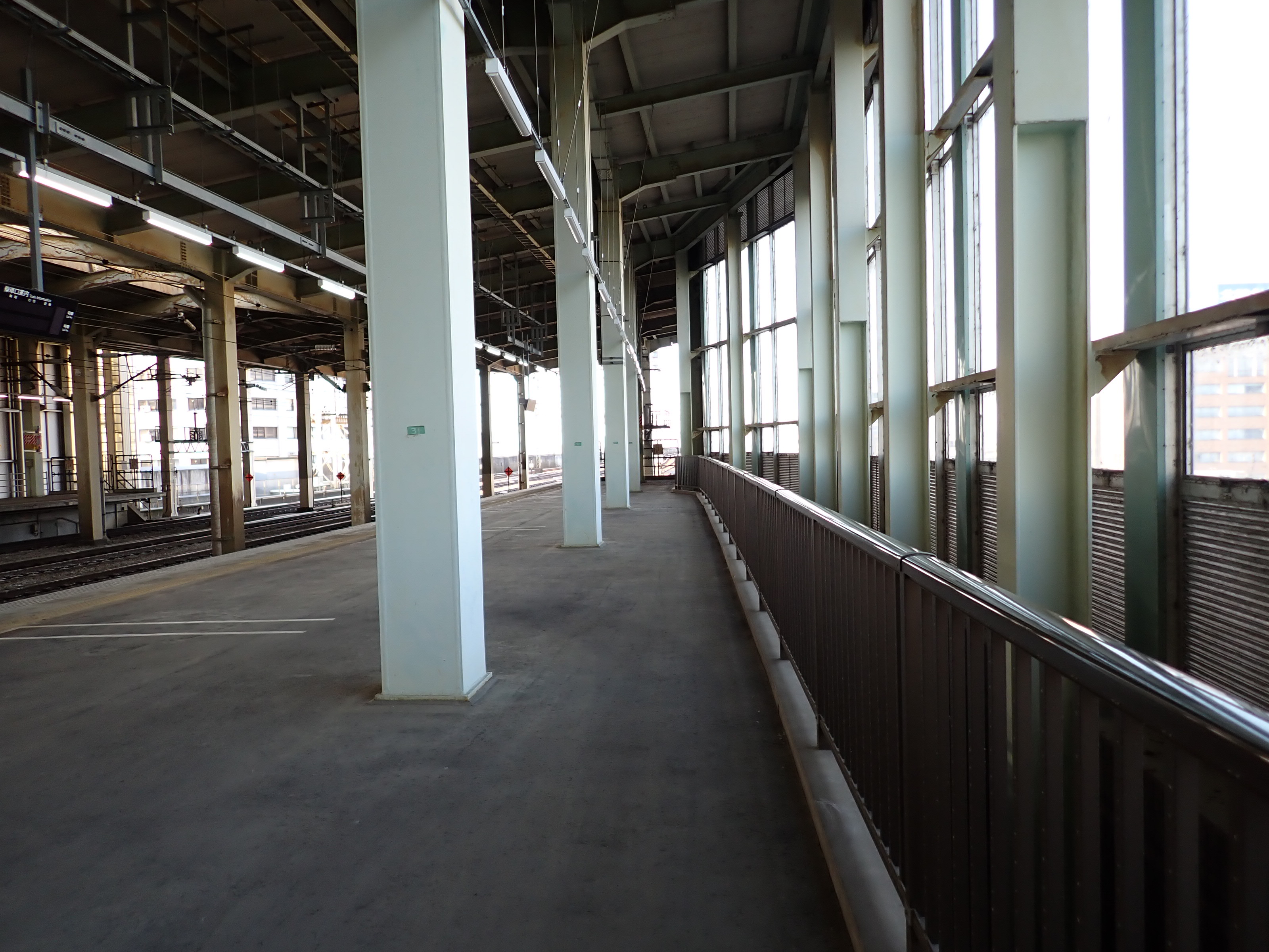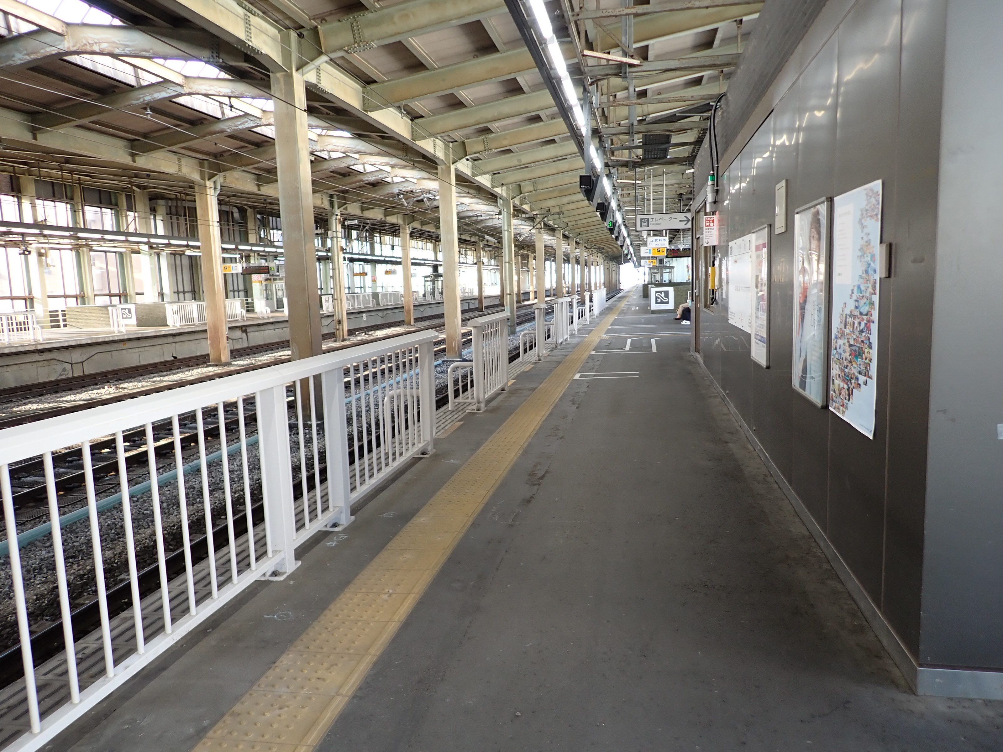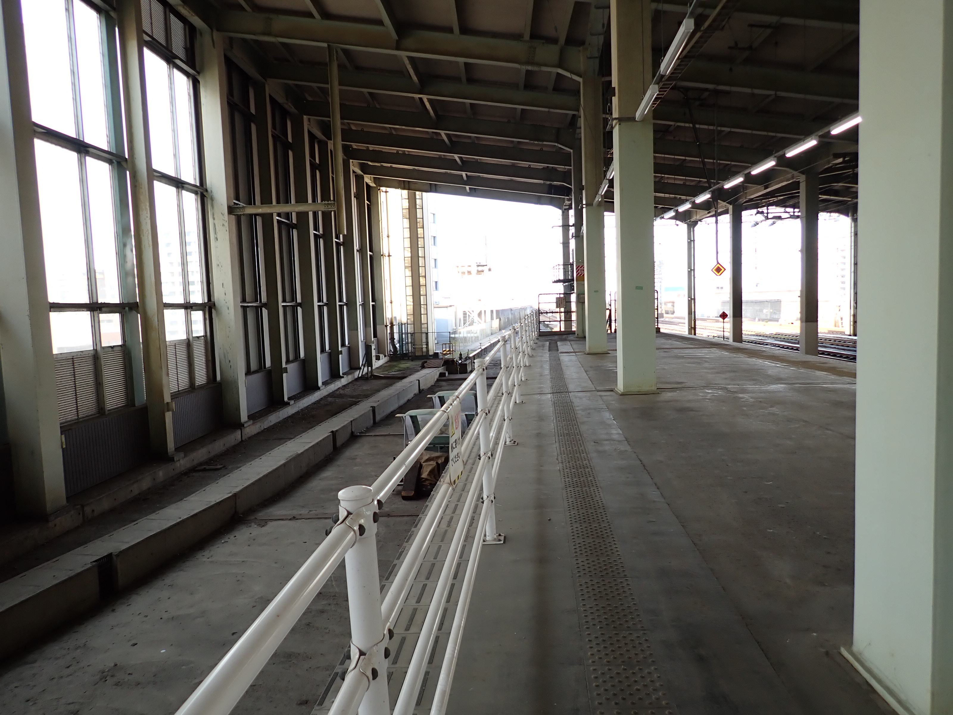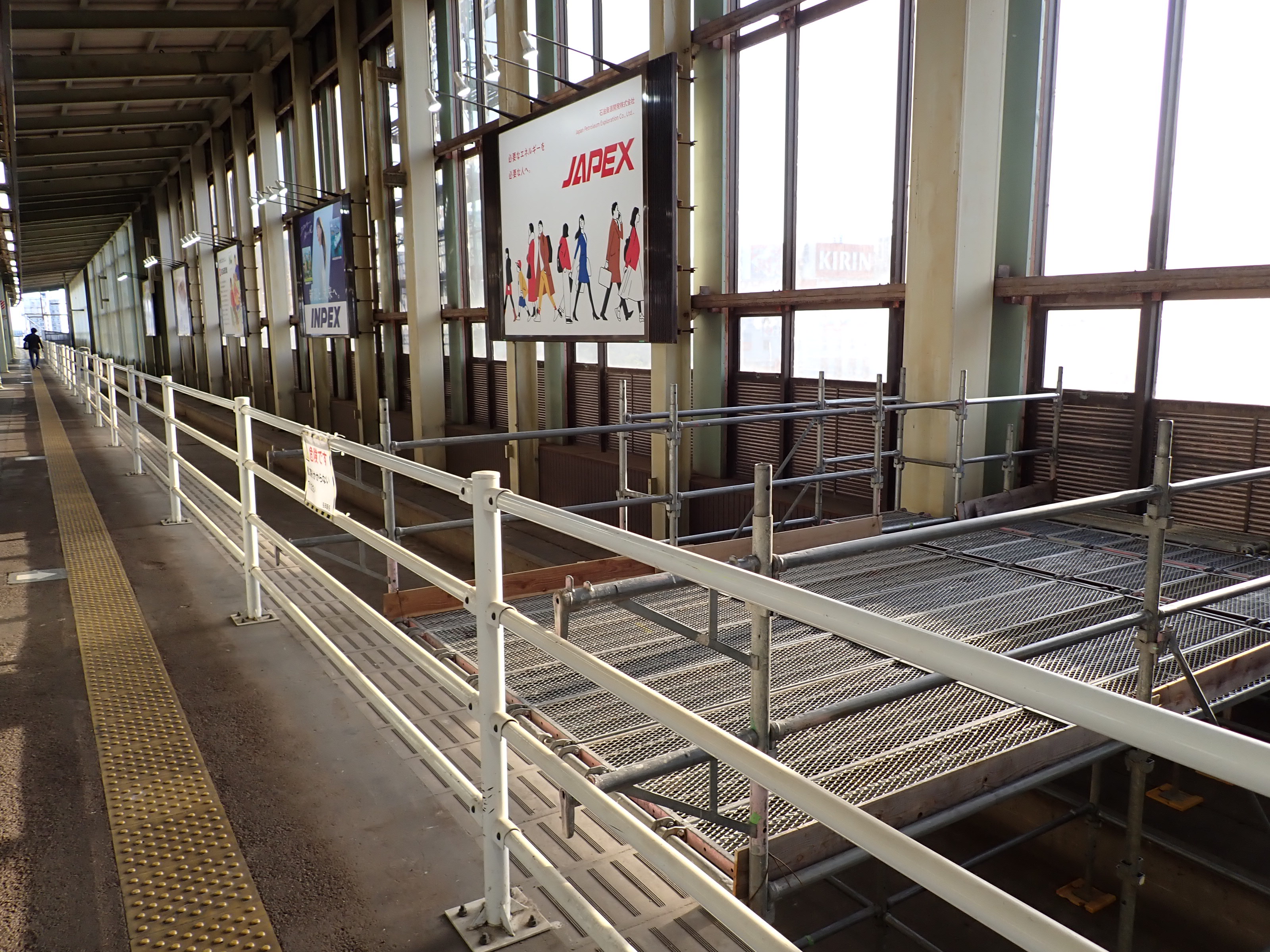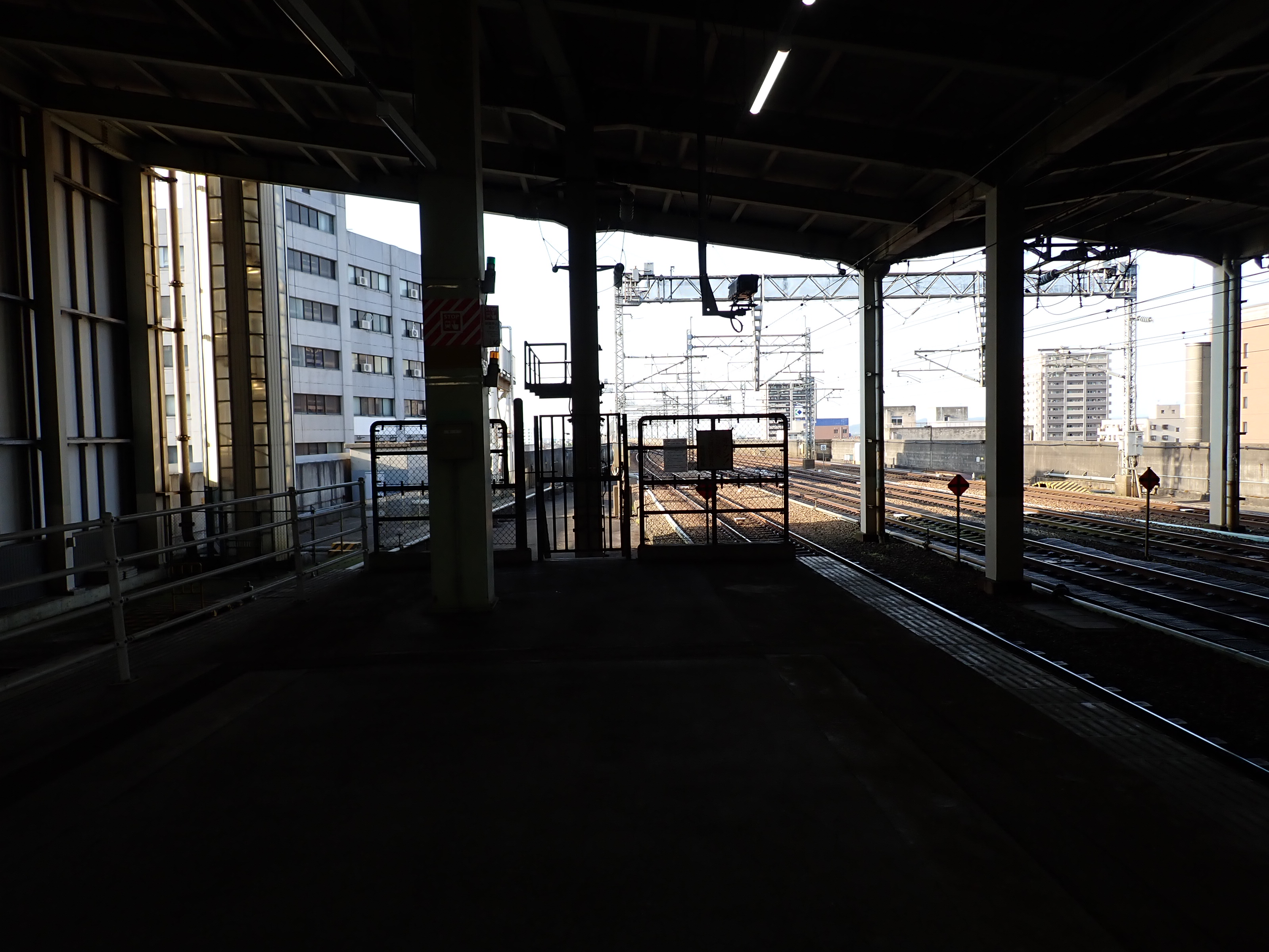 11番線の浦佐駅側。先端の方のホームが壁から少し離れています。