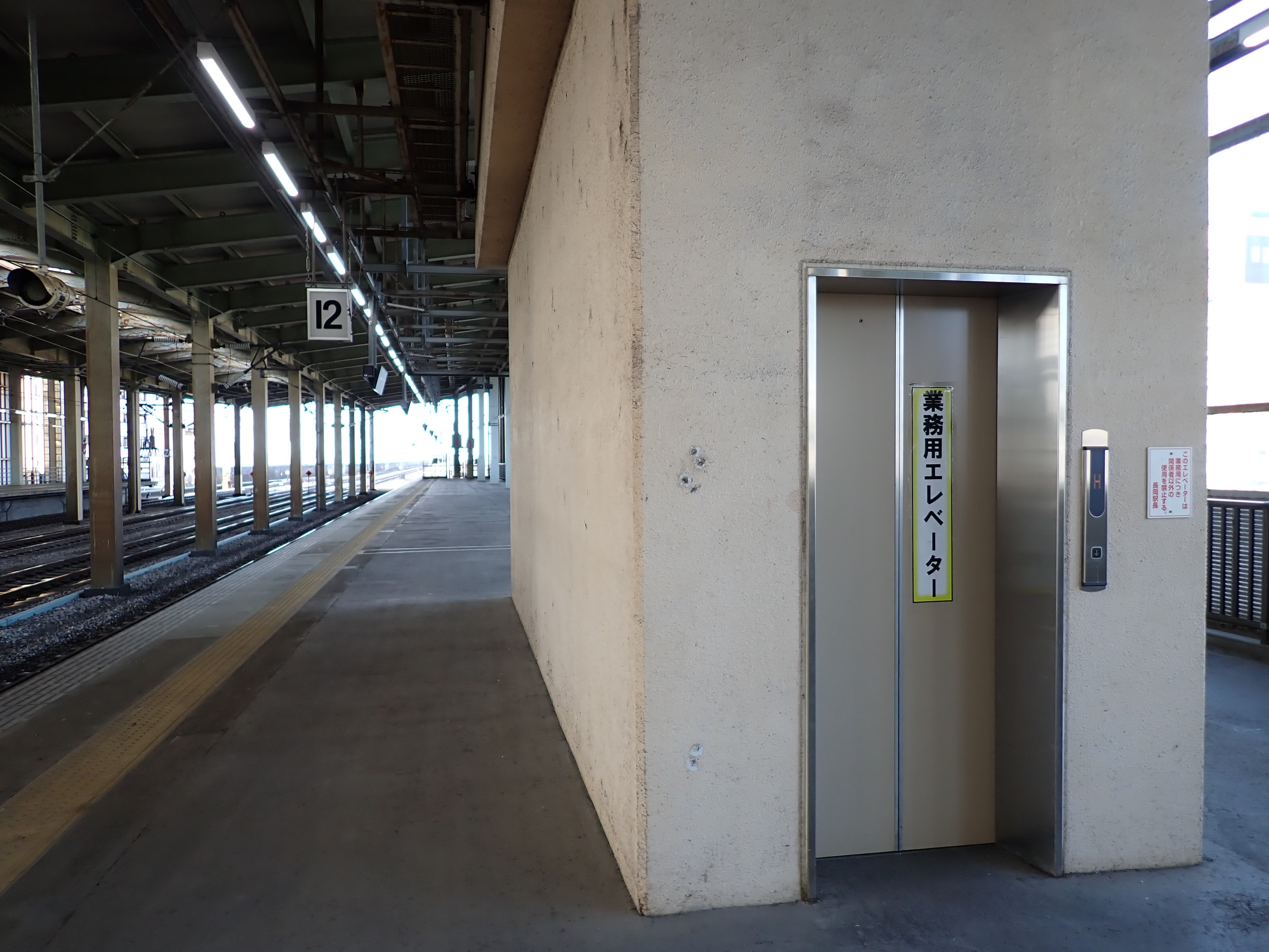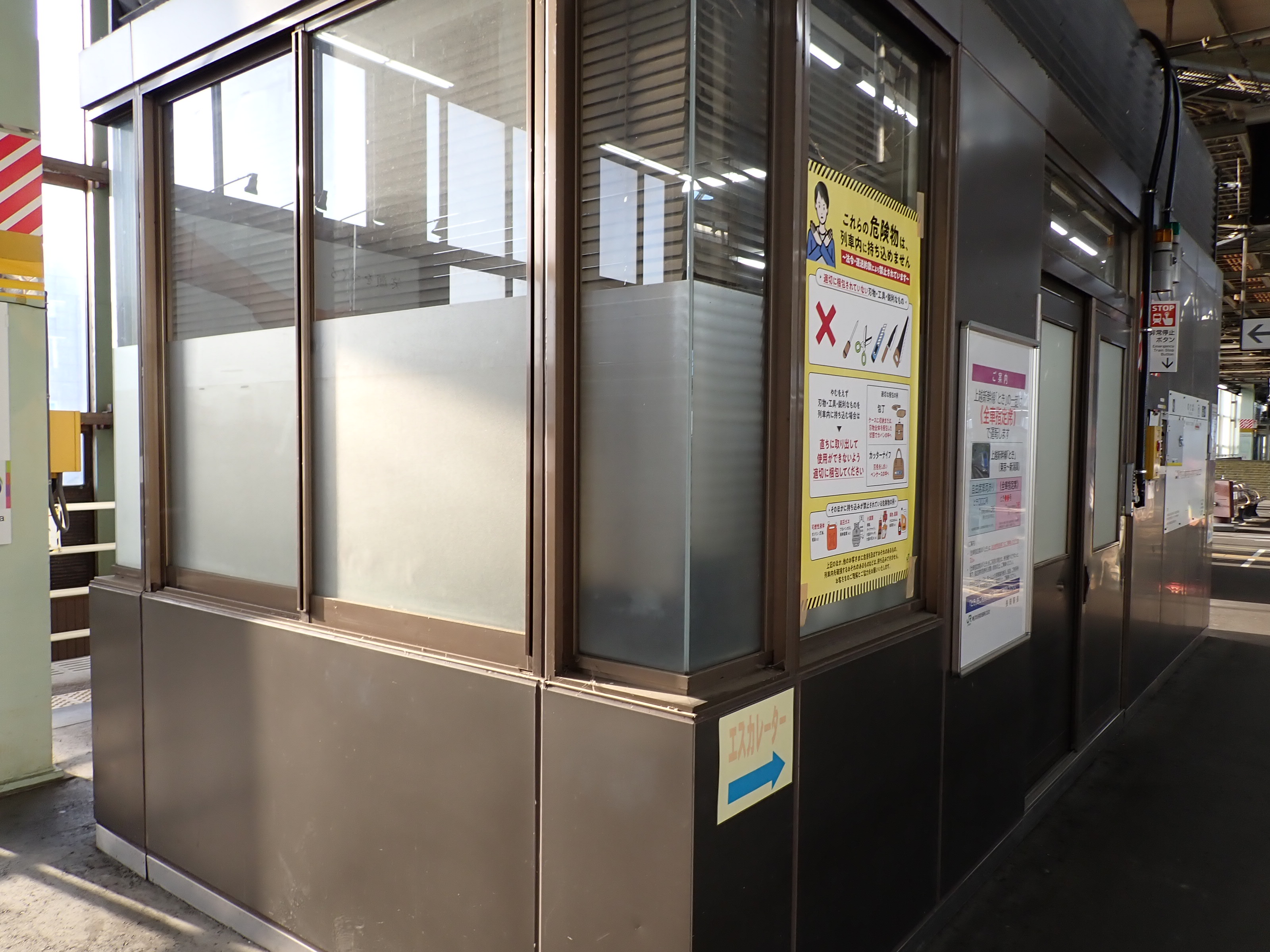 12番線の浦佐駅側の階段とエスカレーターの間、運転事務室。