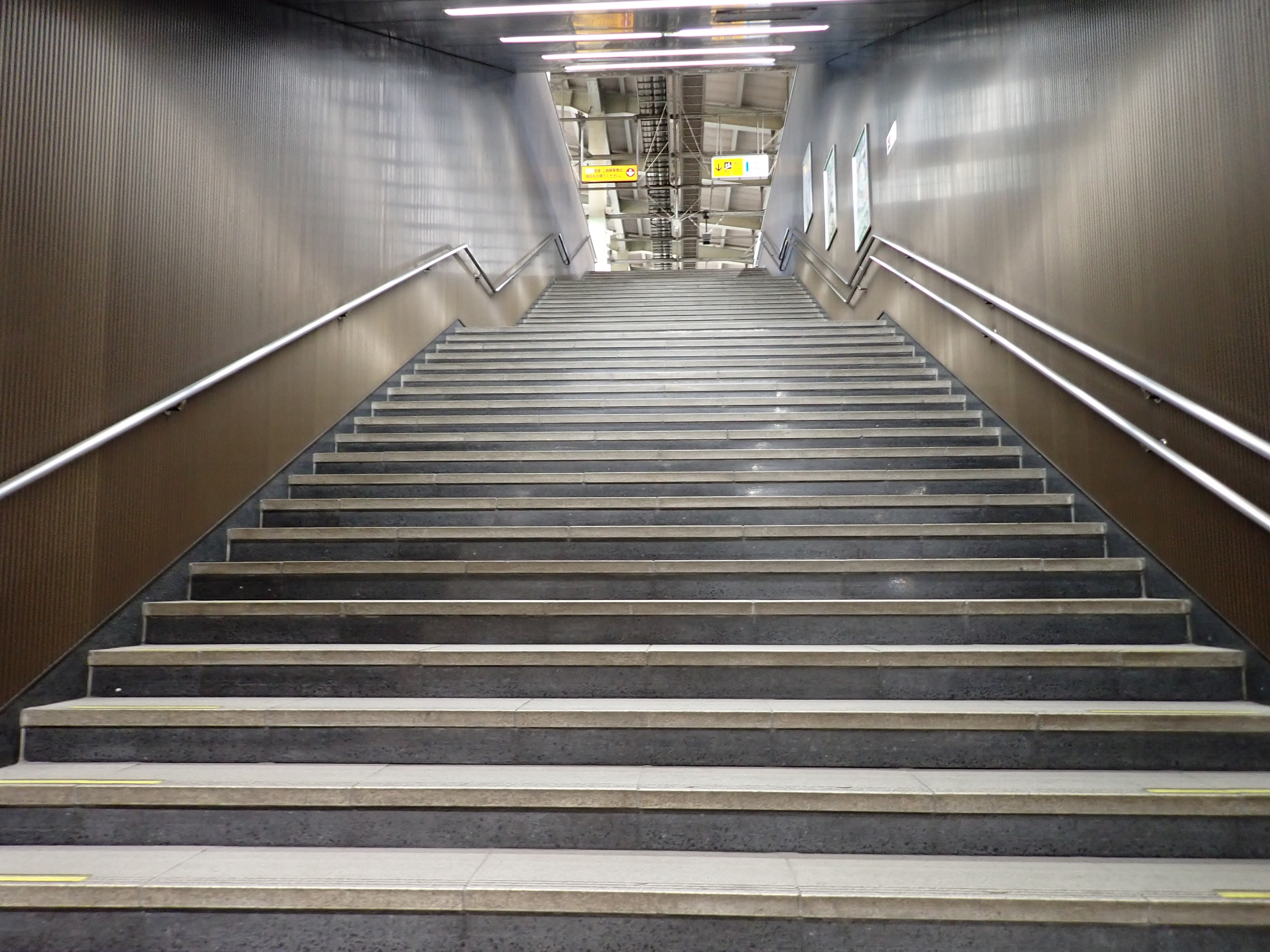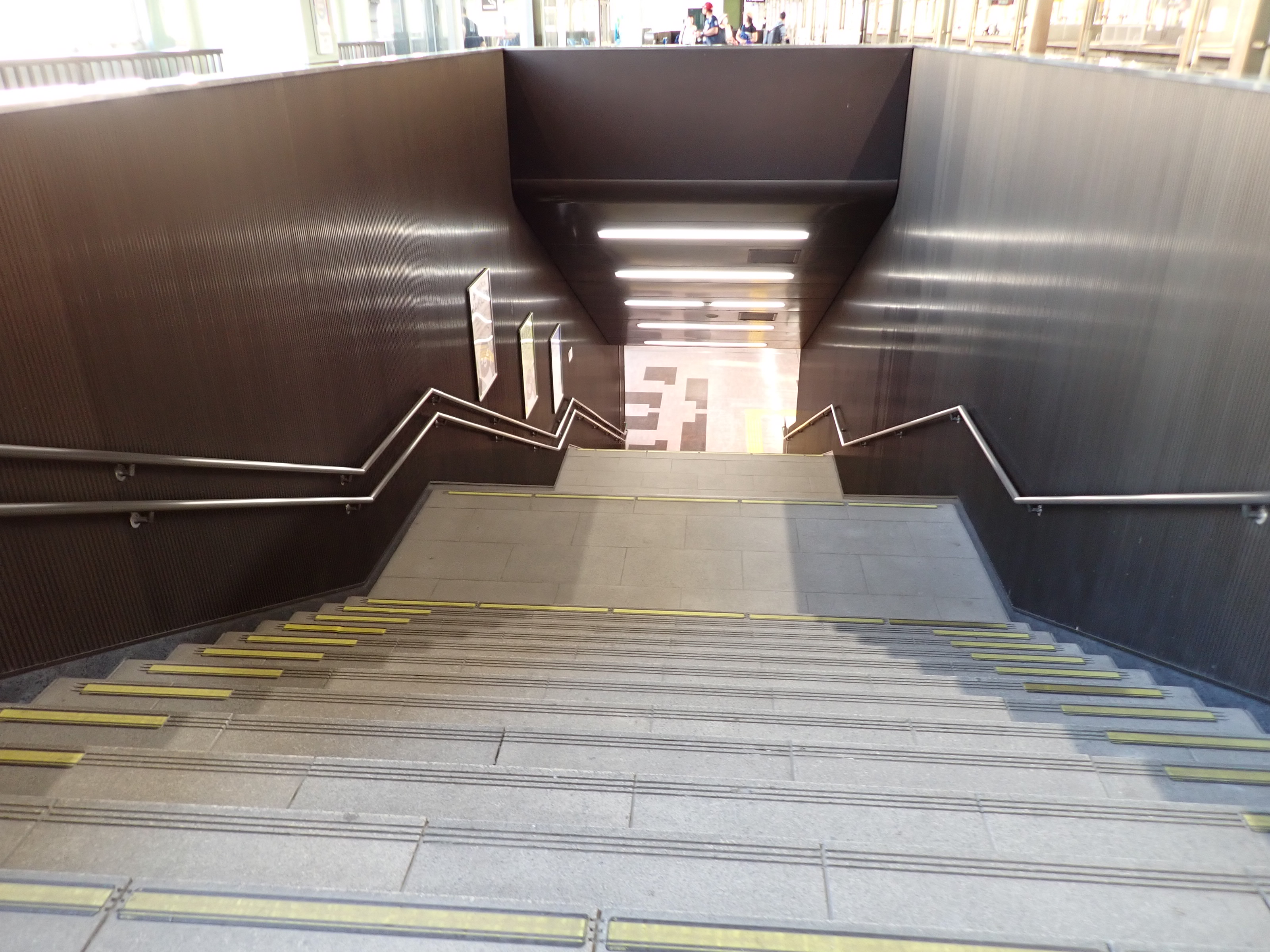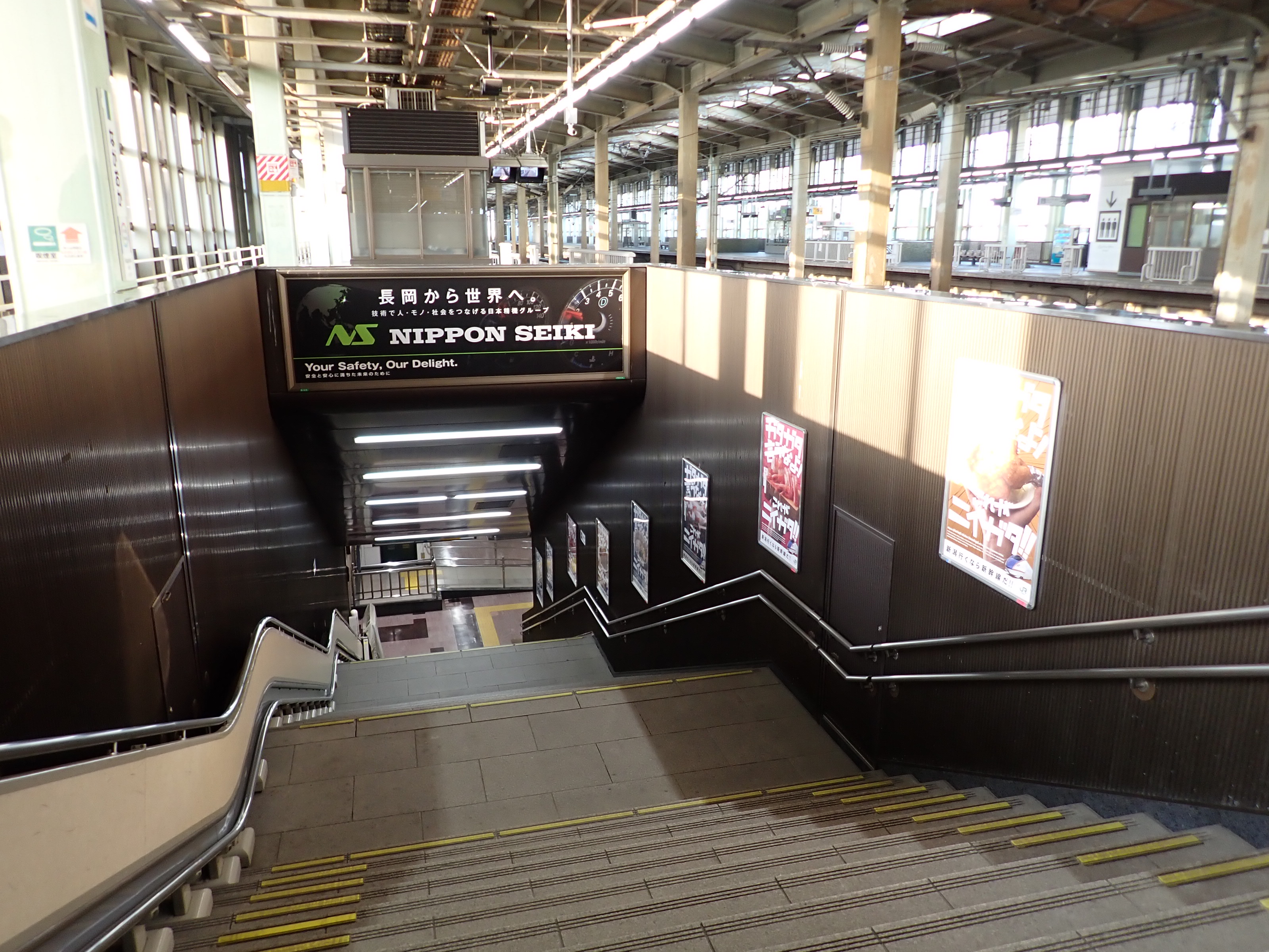 11番線の浦佐駅側の階段から改札階へ下りていきます。