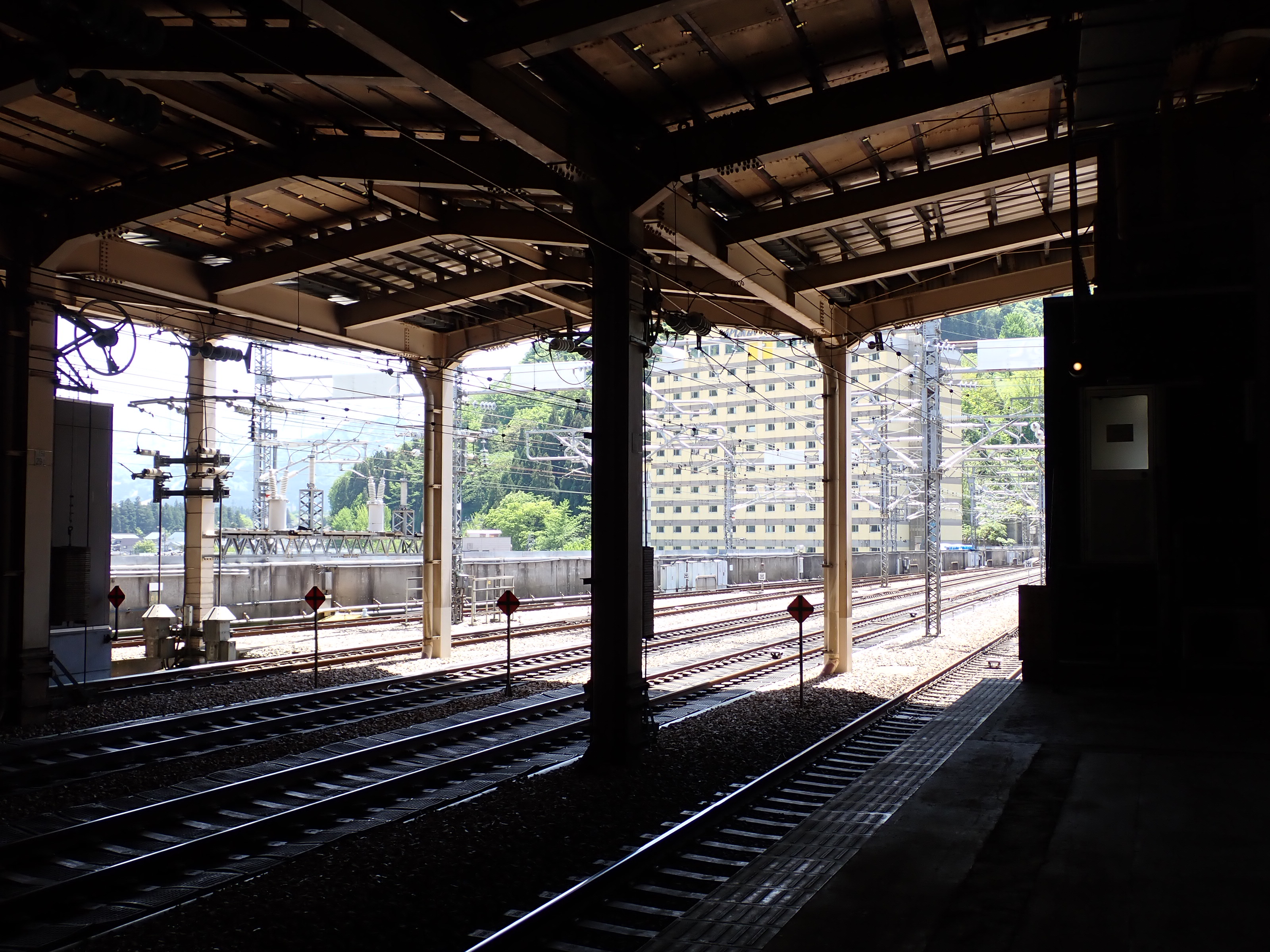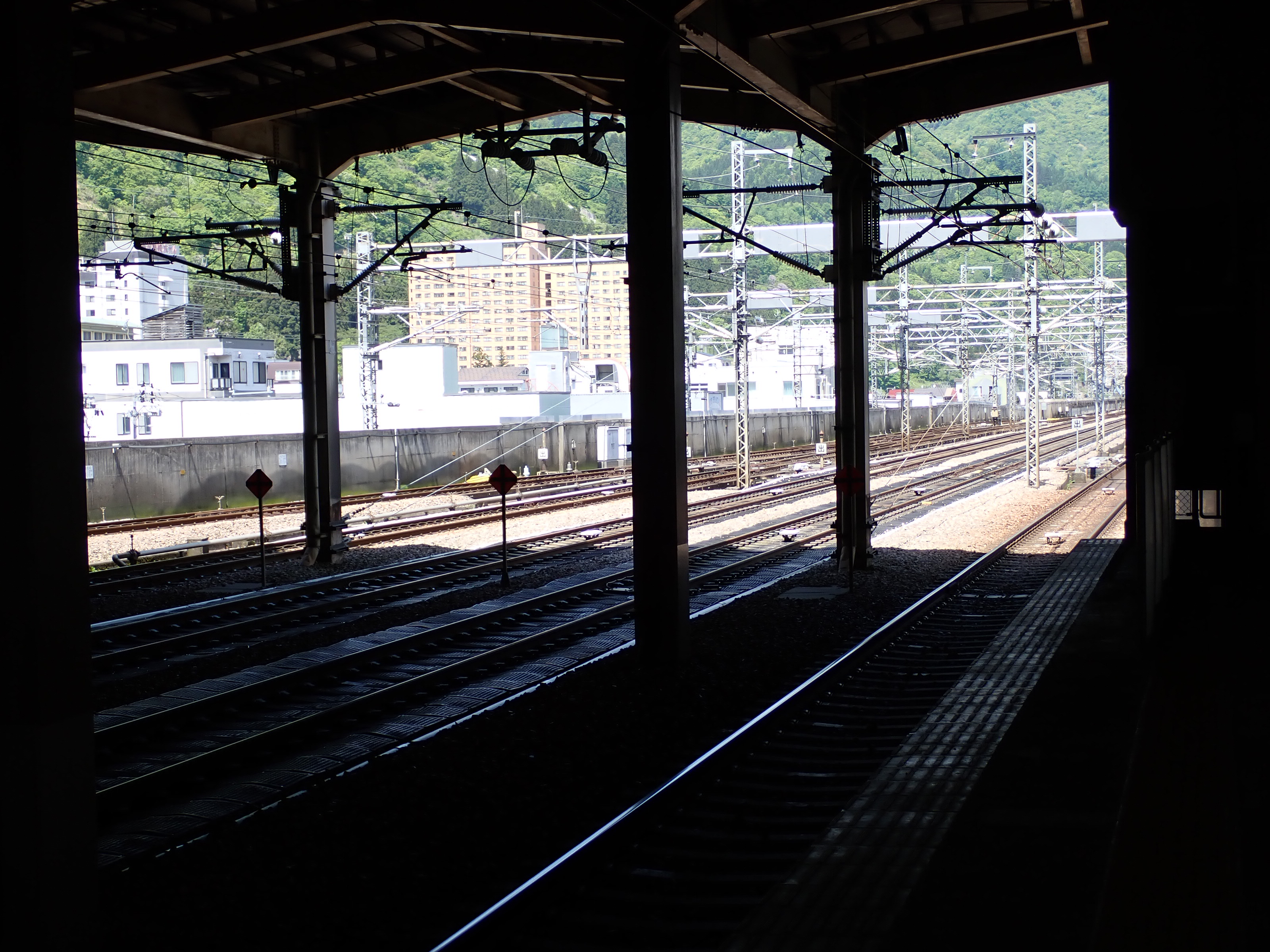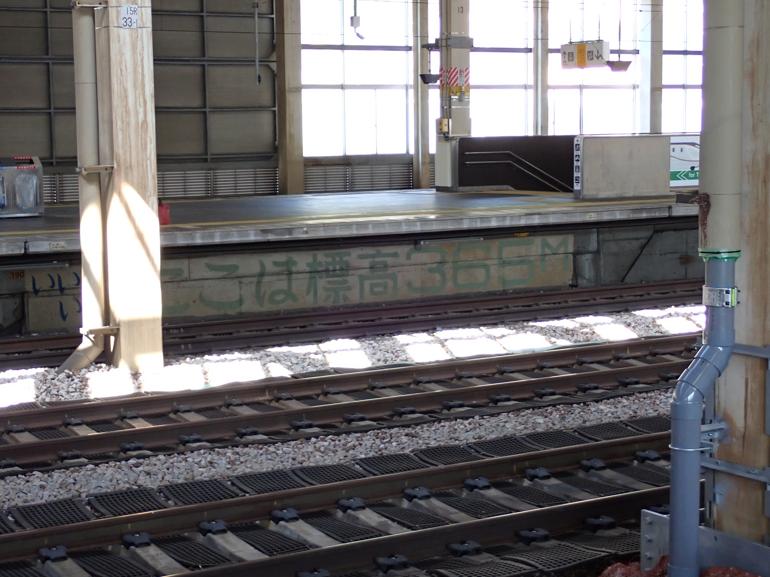 13・14番線上毛高原駅からホームの中央の方を見たところ。
