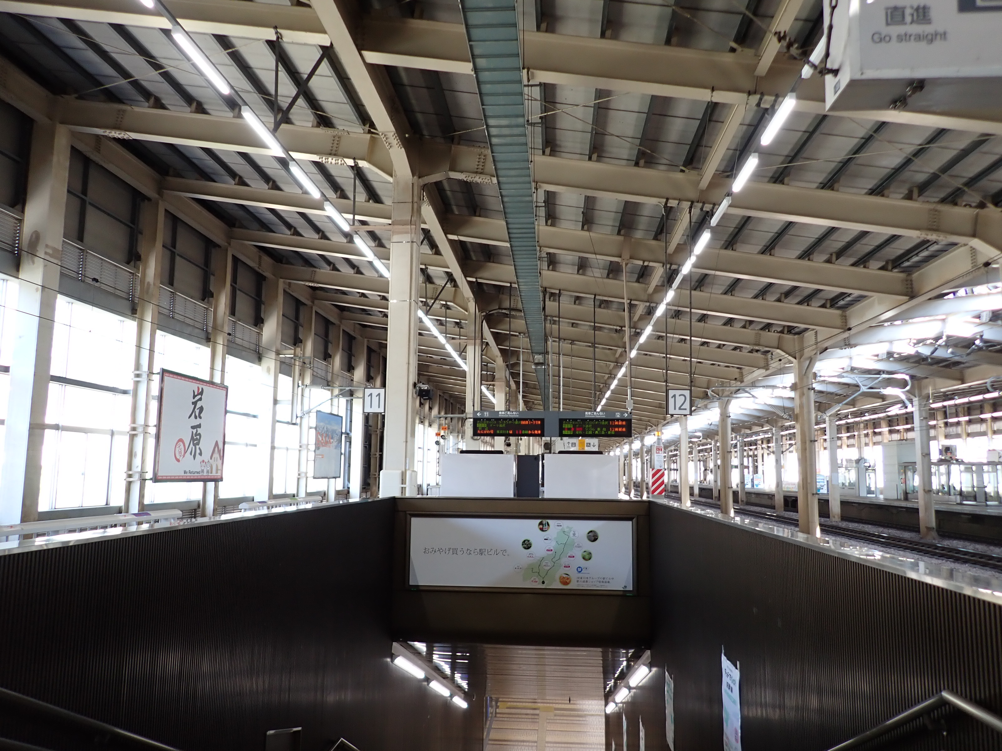 11・12番線へ階段で上がってきたところ。