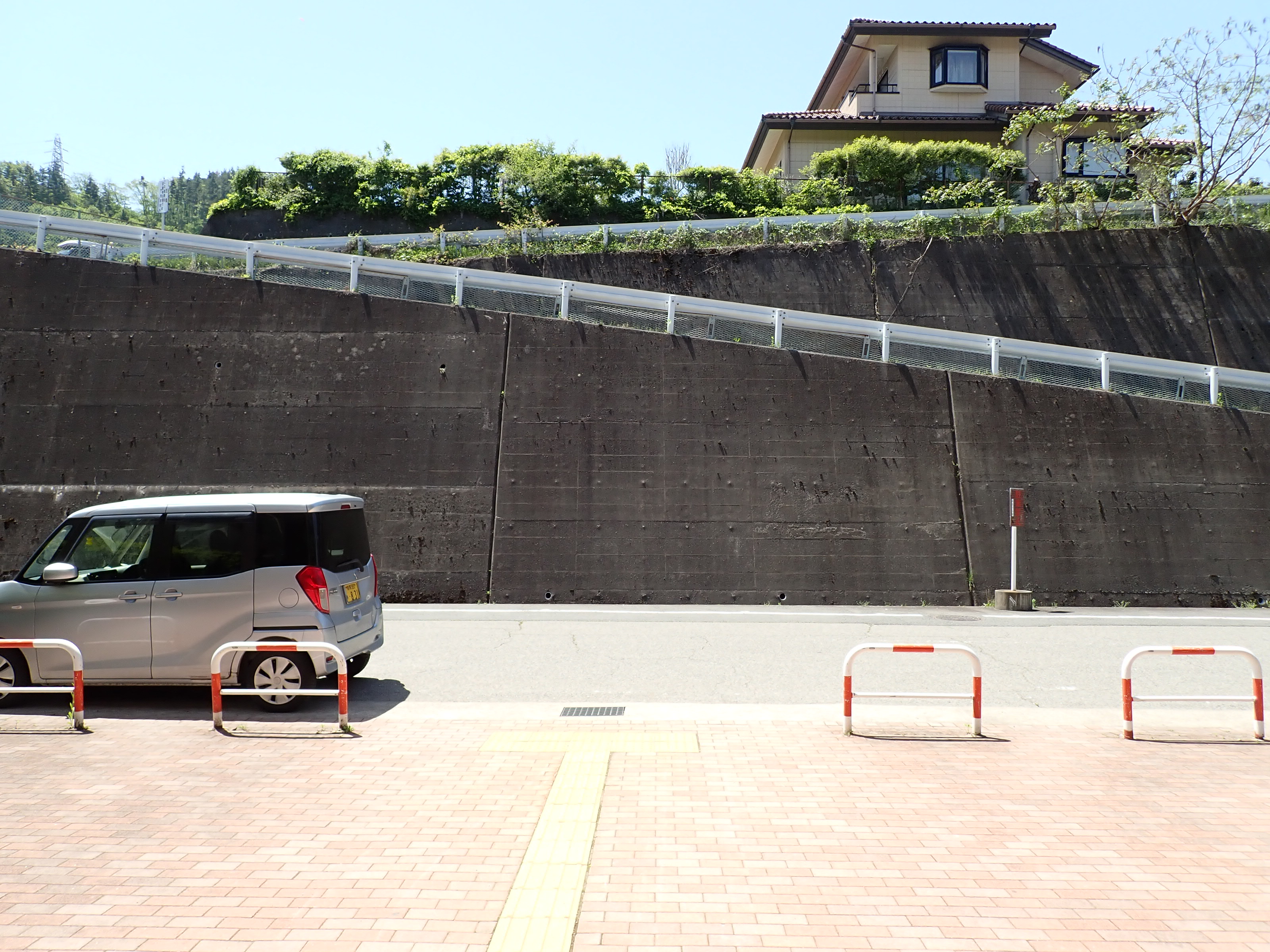 西口の駅前にある坂を上がって駅を見たところ。
