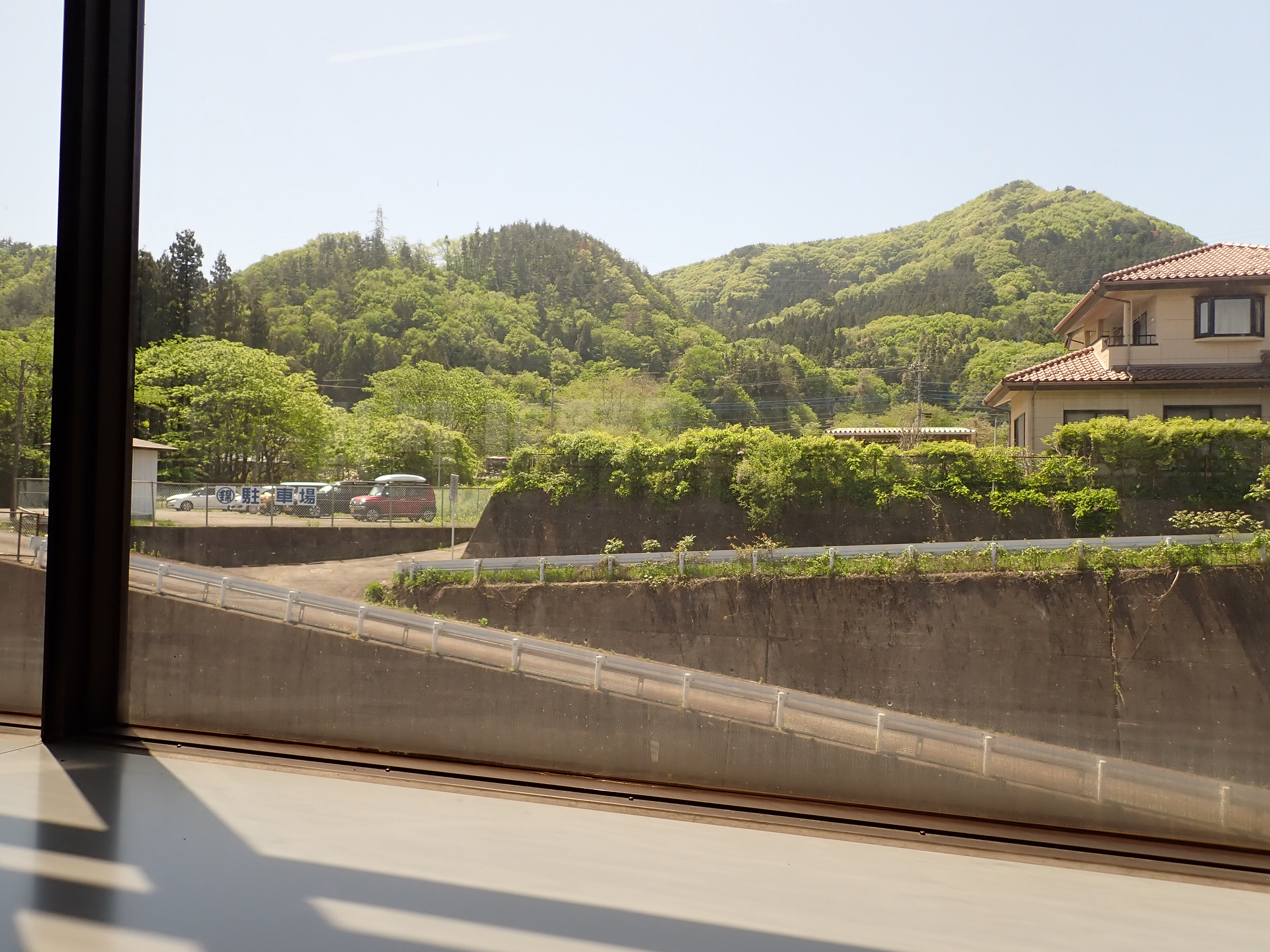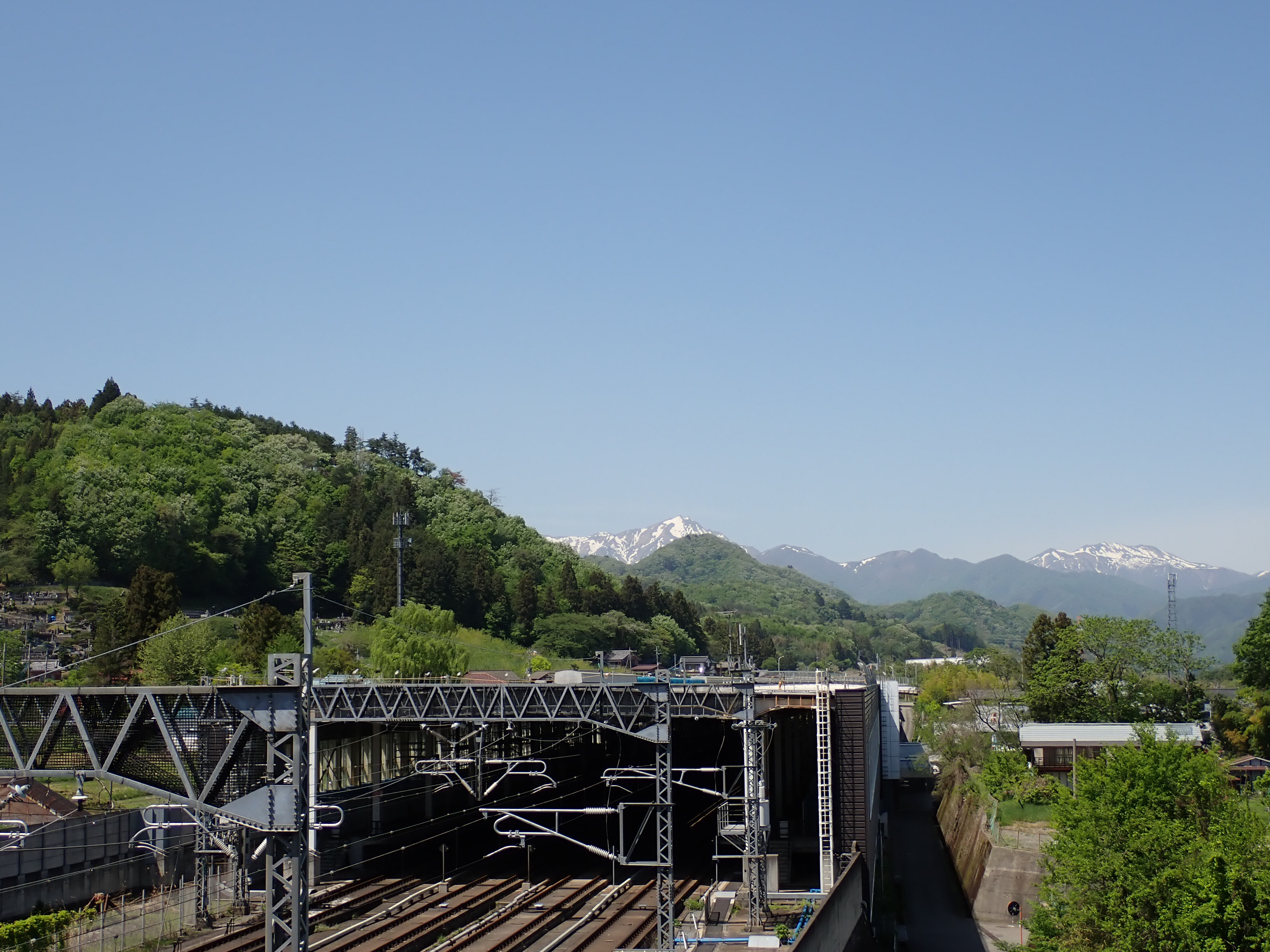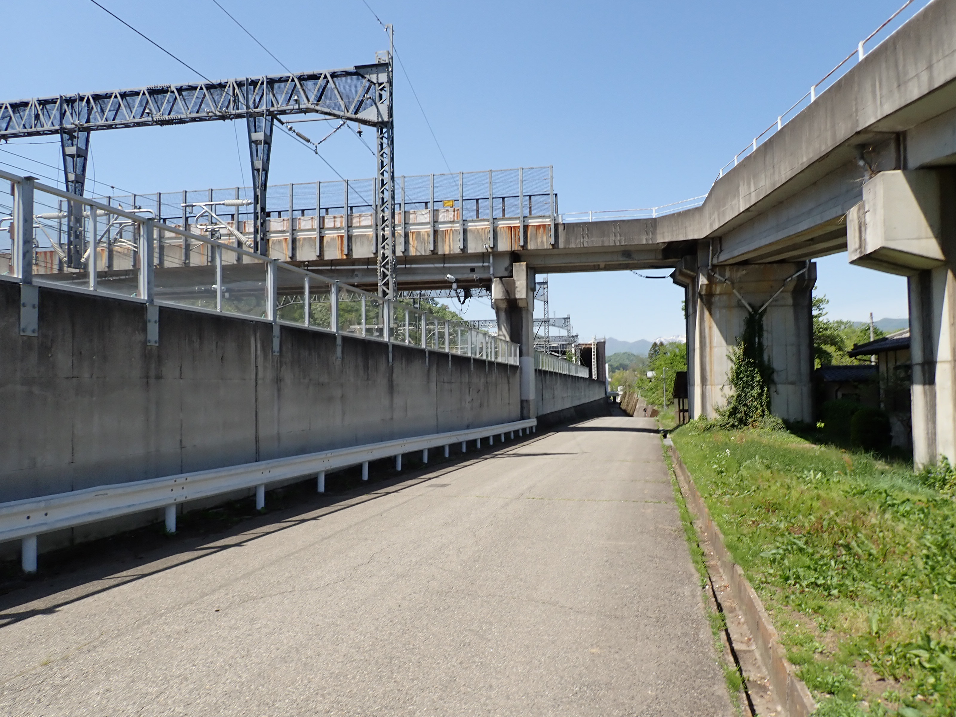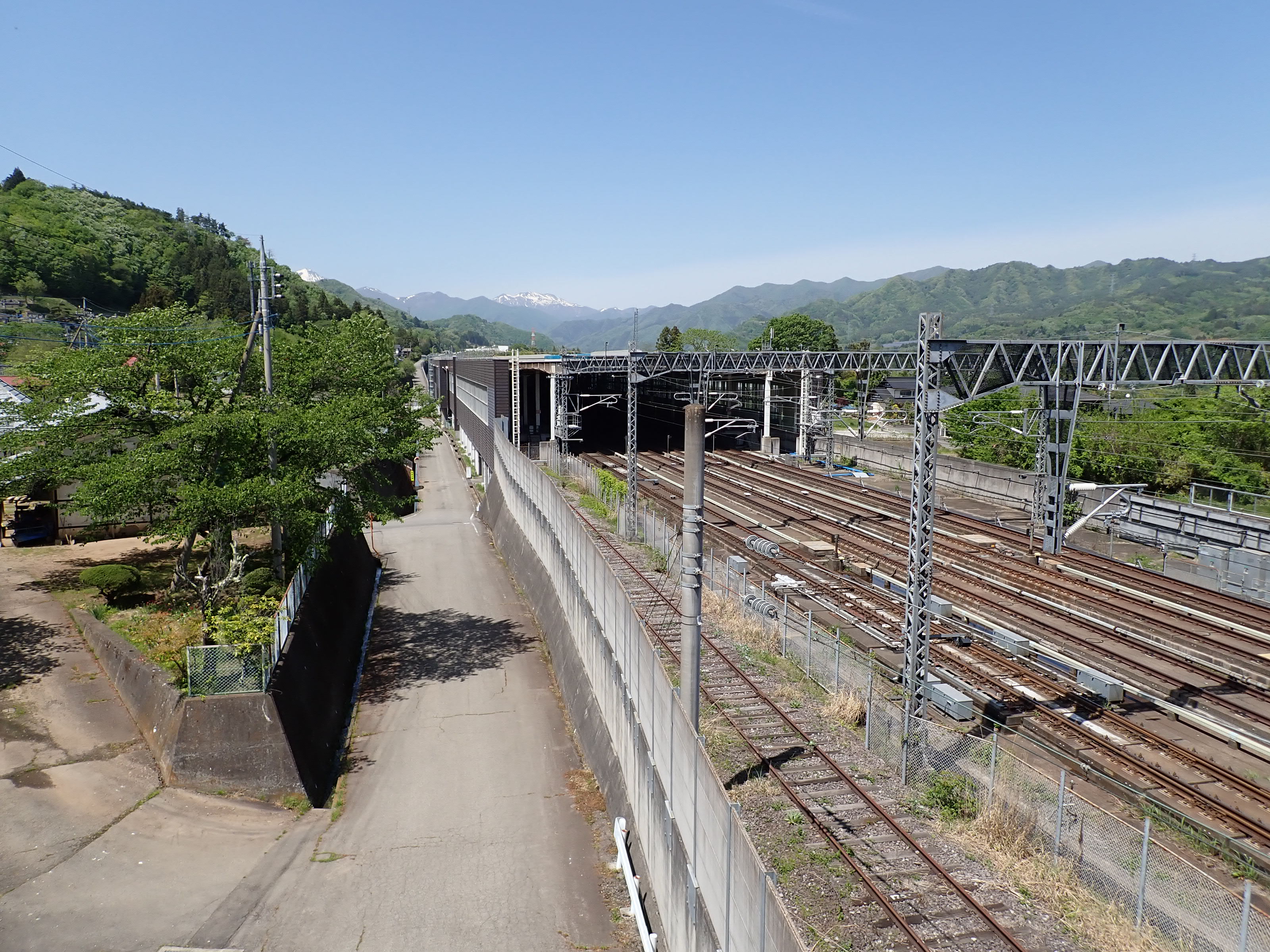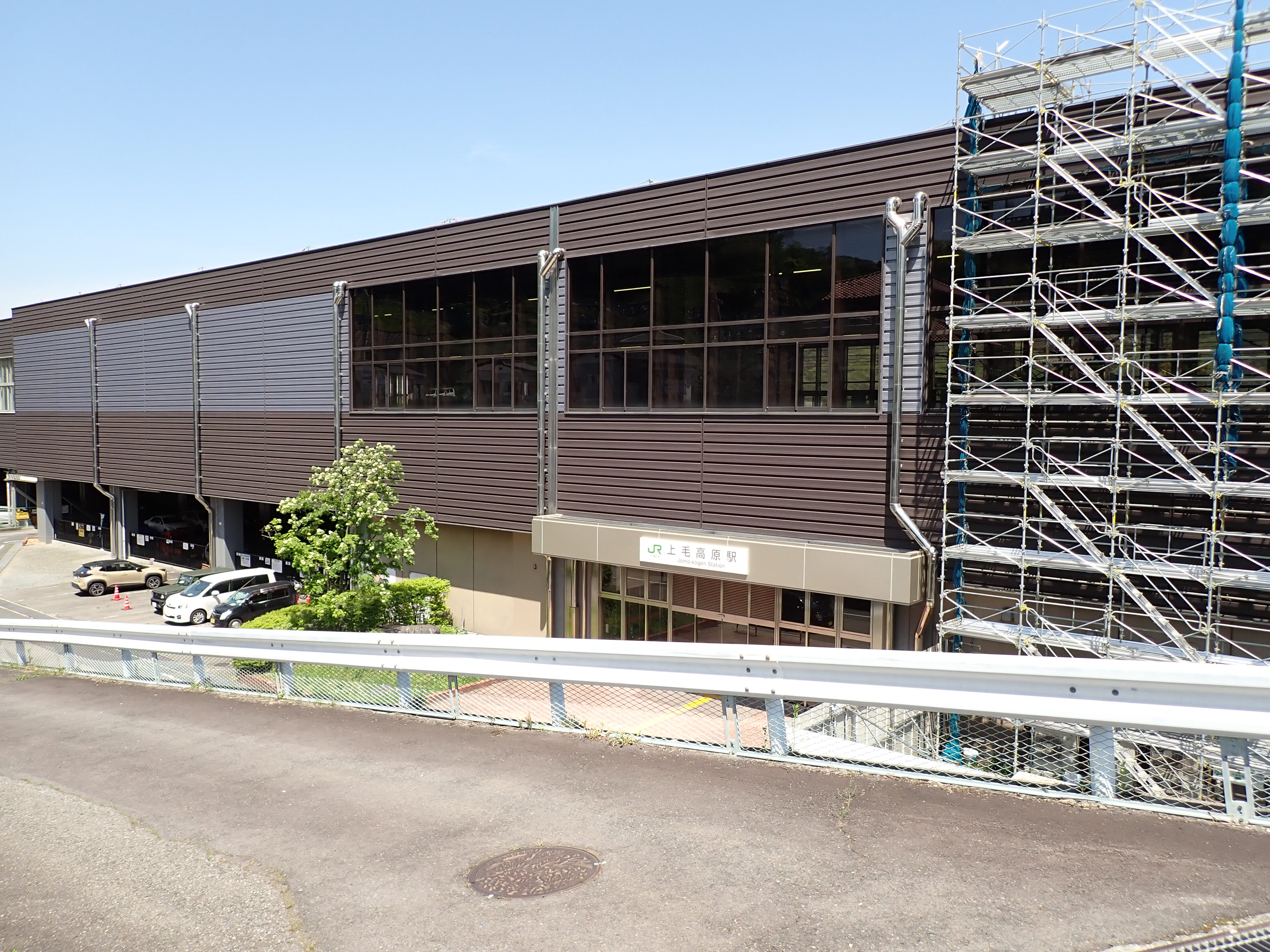 上毛高原駅を見ながら陸橋を渡ります。