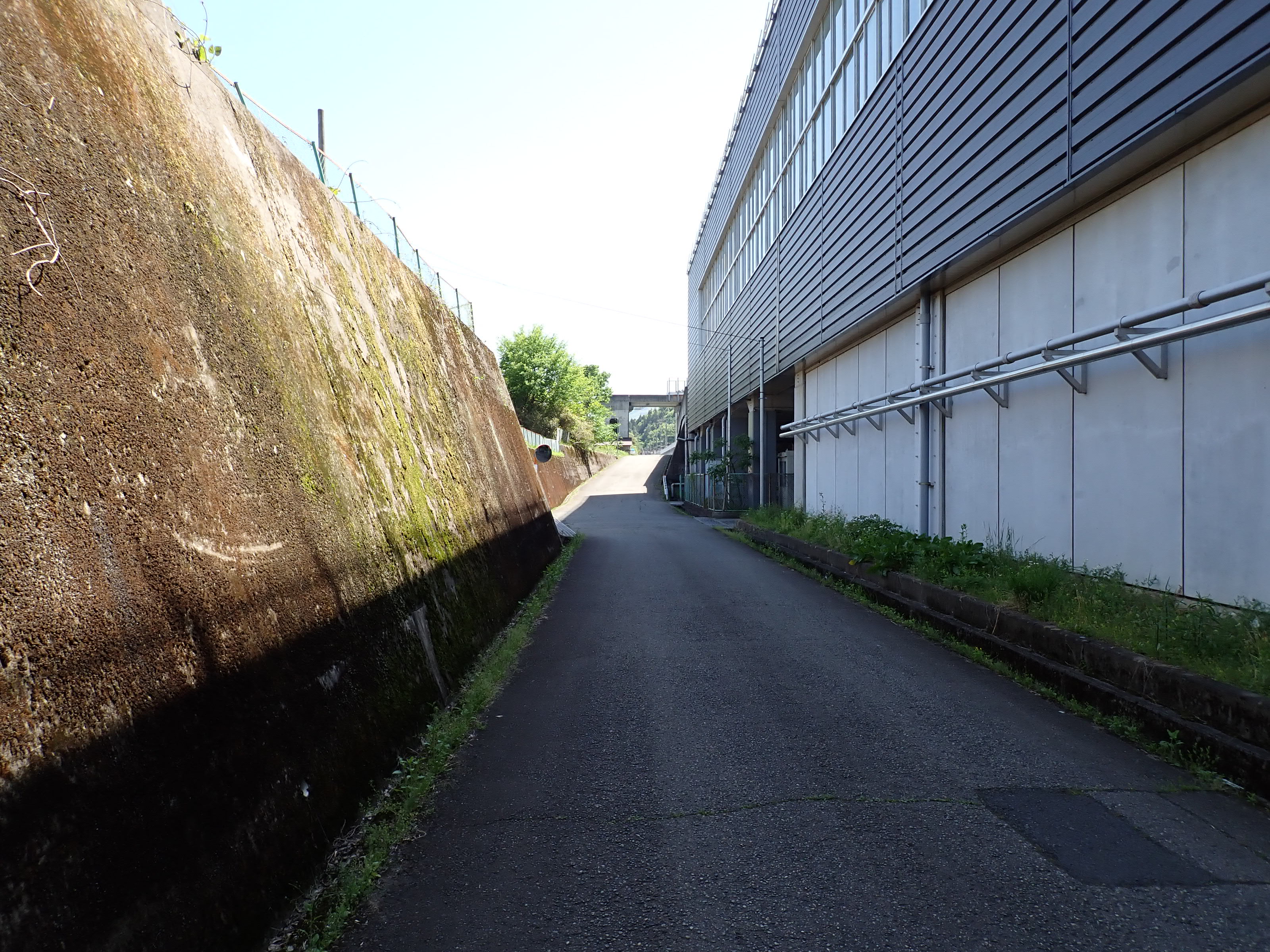 西口に戻ってきて、駅舎を背に左側に進み、坂を上がり少し戻って陸橋を渡ります。