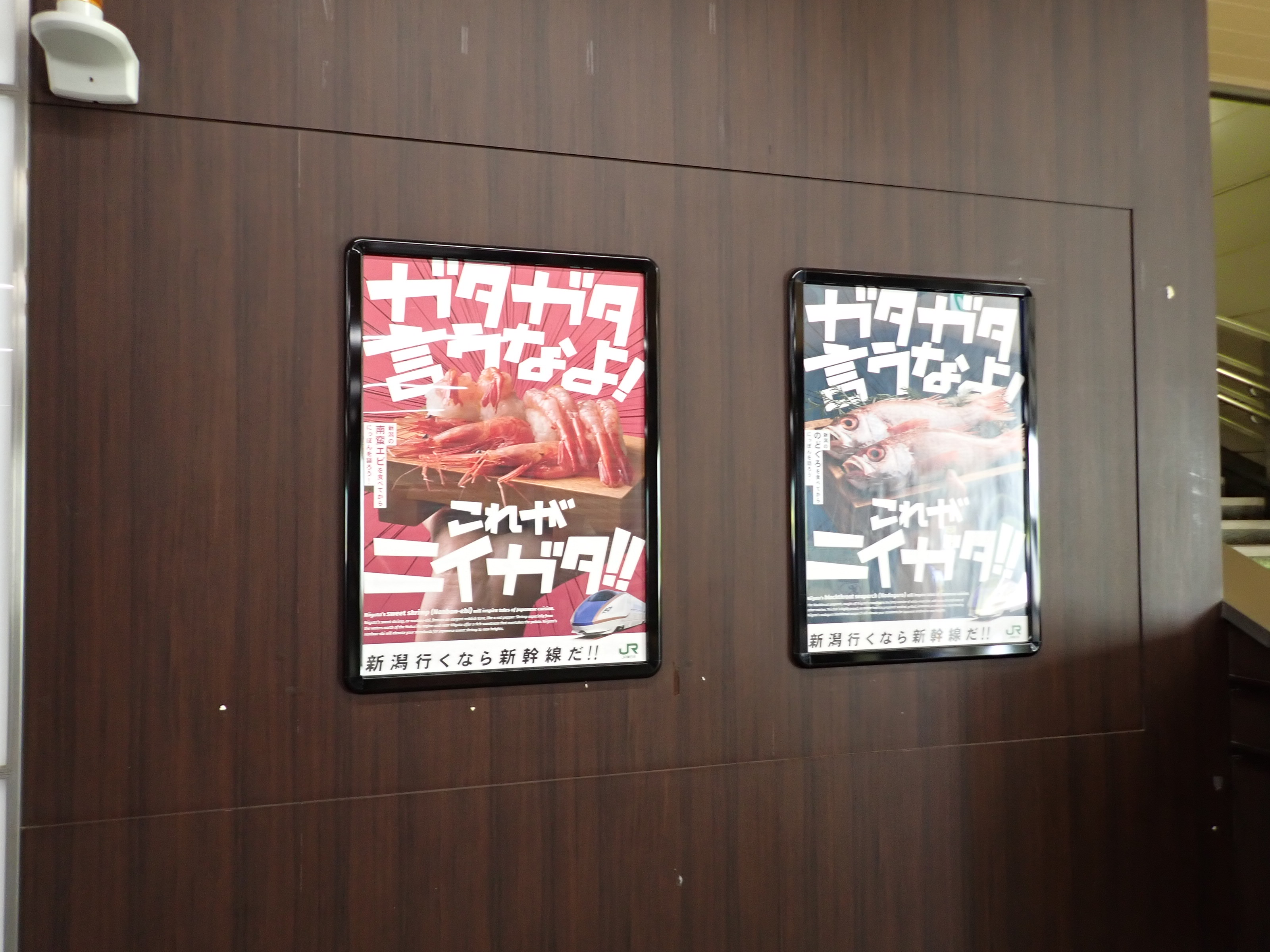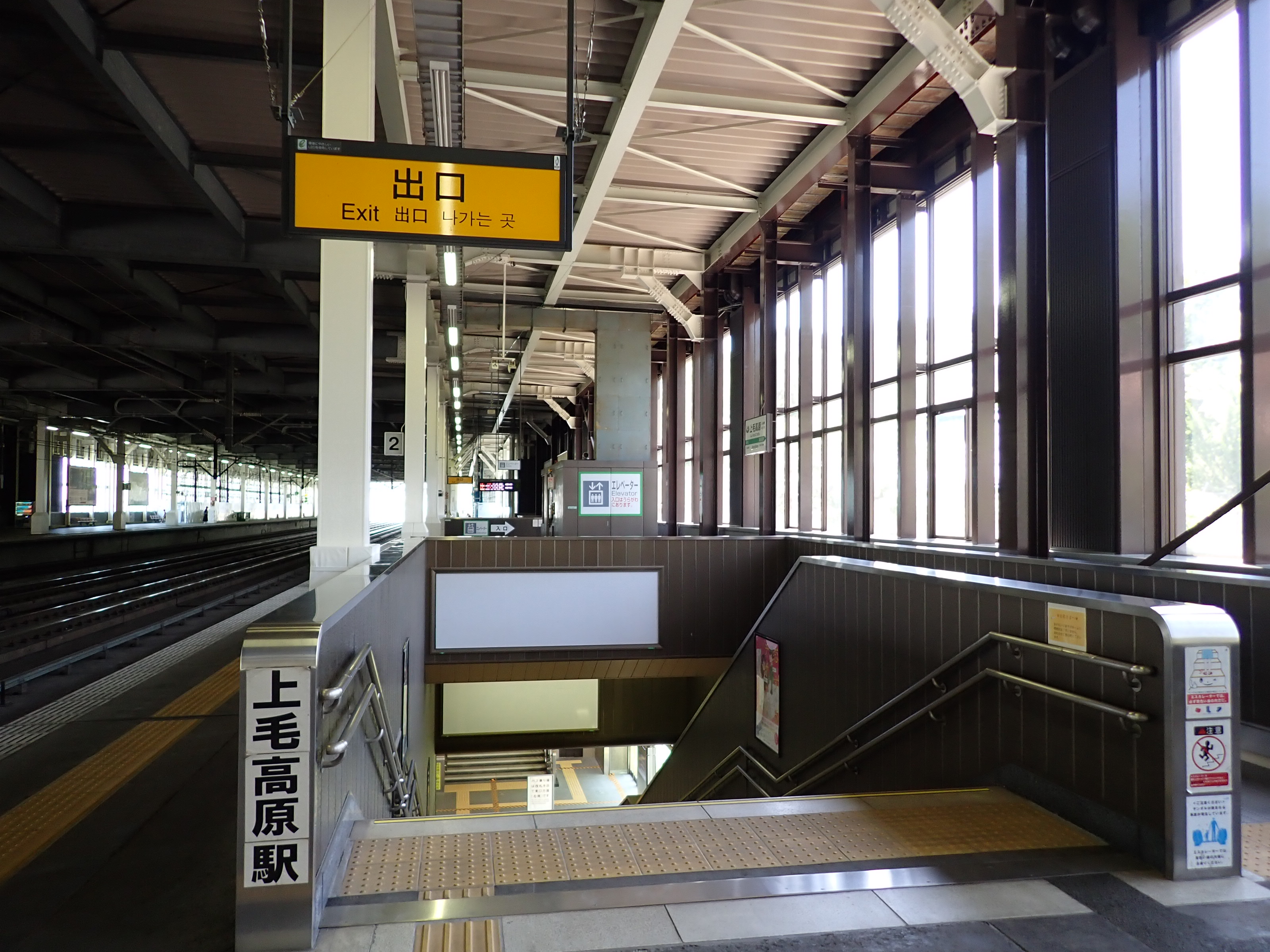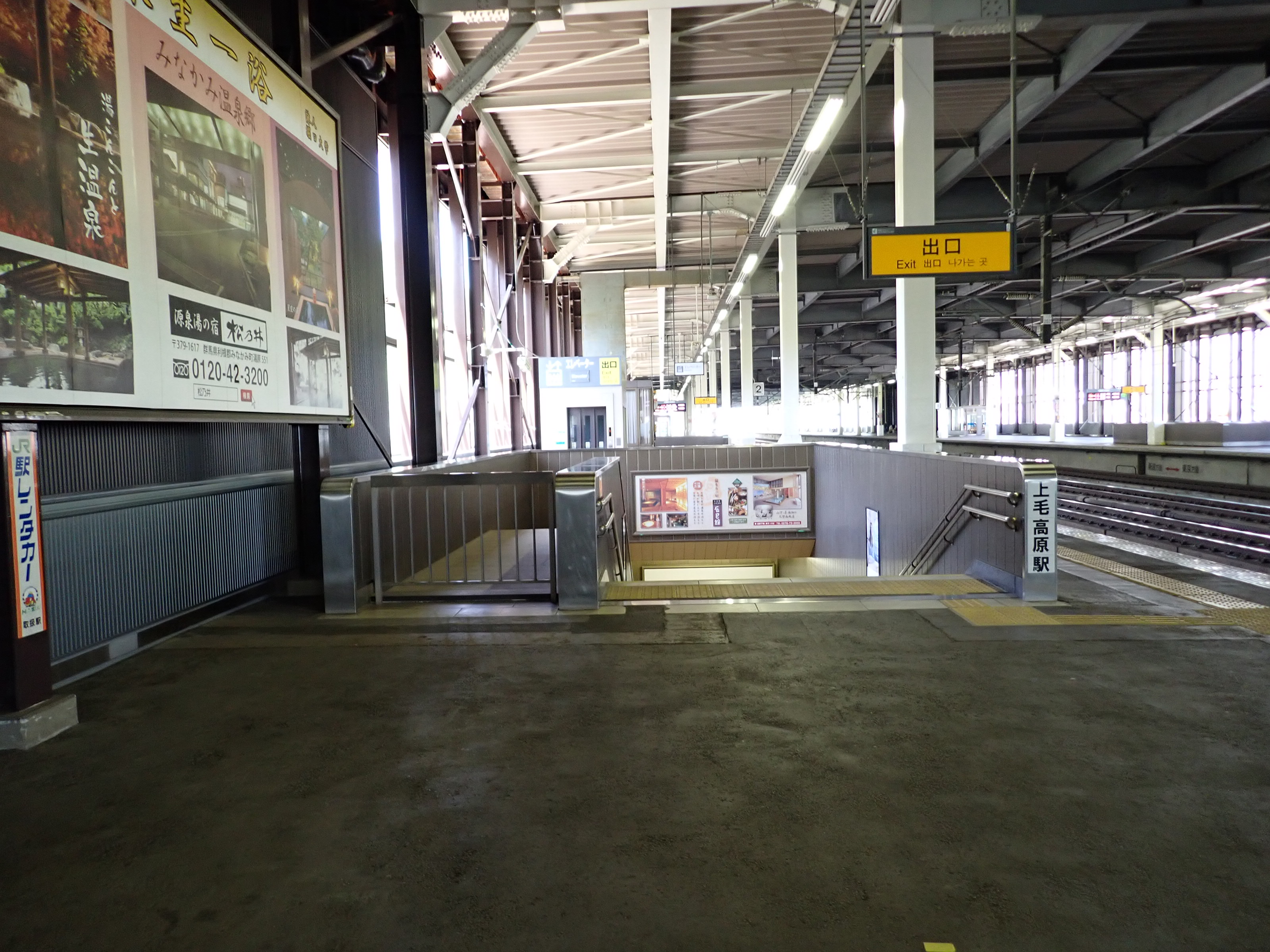 2番線両側の階段と上越新幹線のポスター。