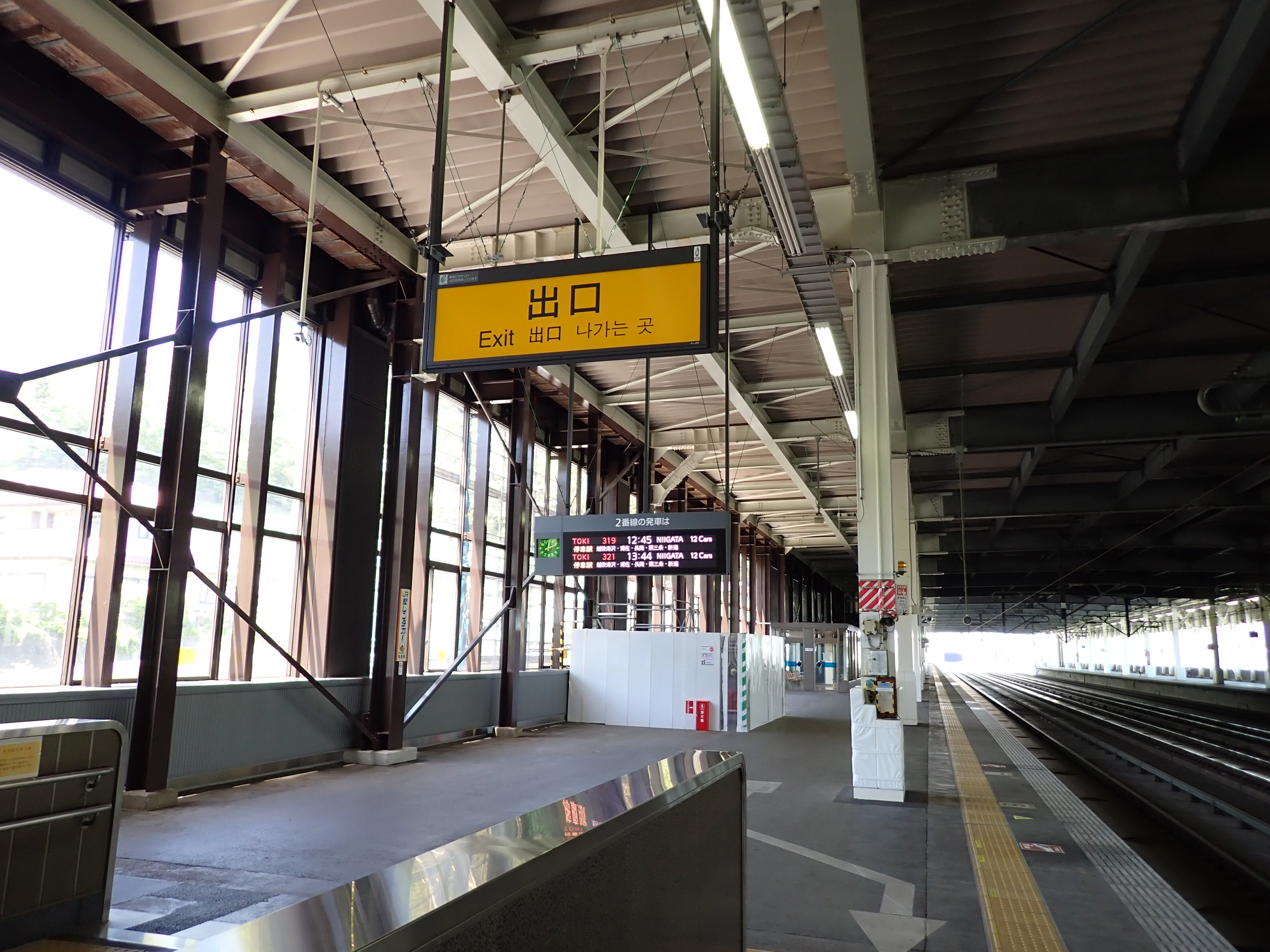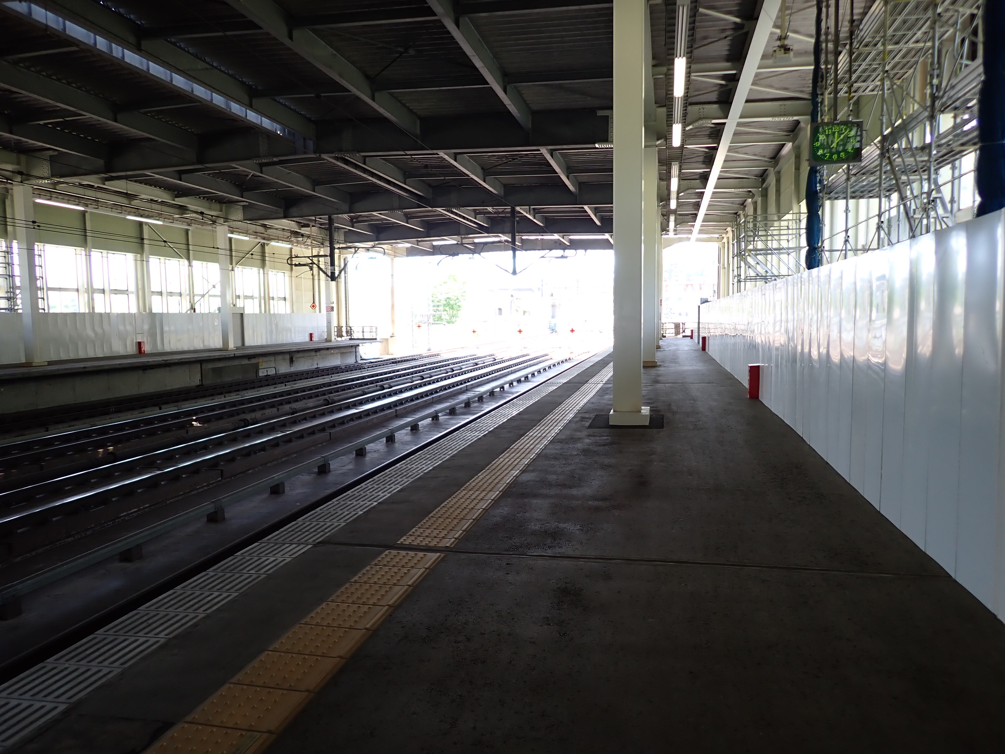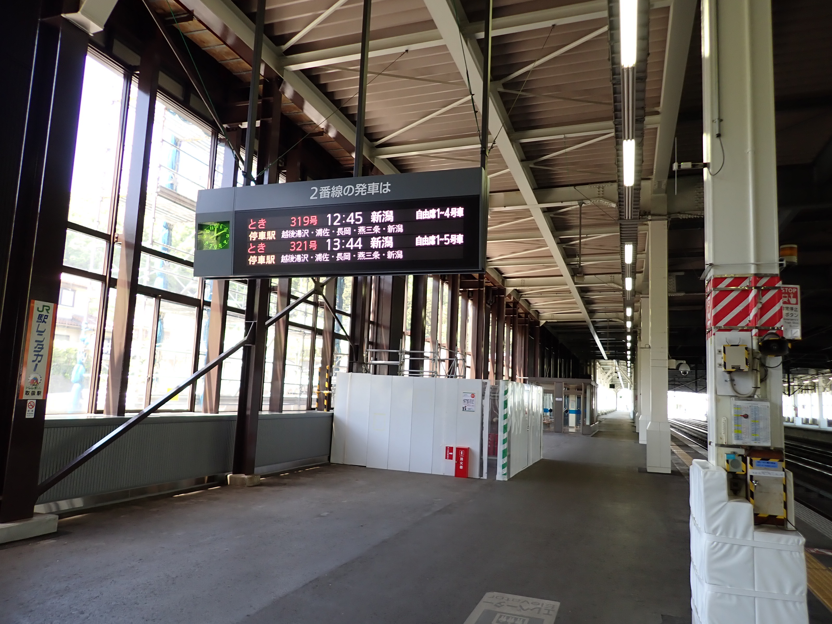 1番線の高崎駅側。工事のため仮囲いがされていました。
