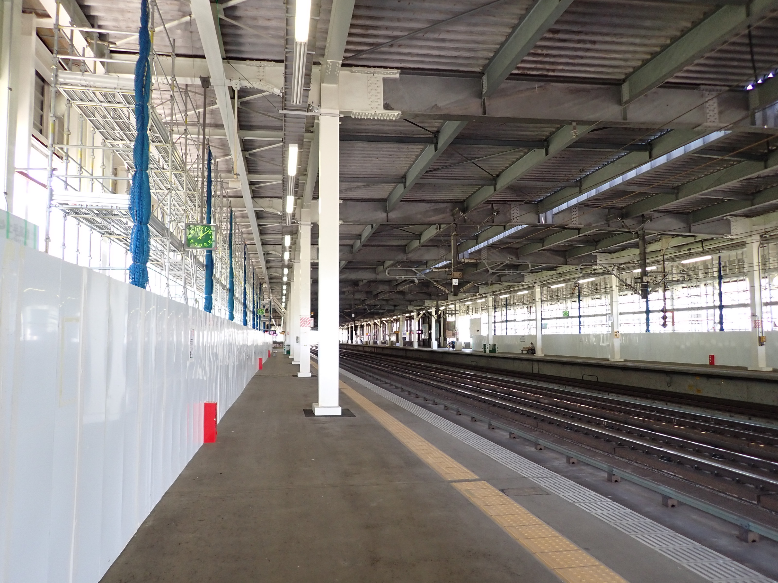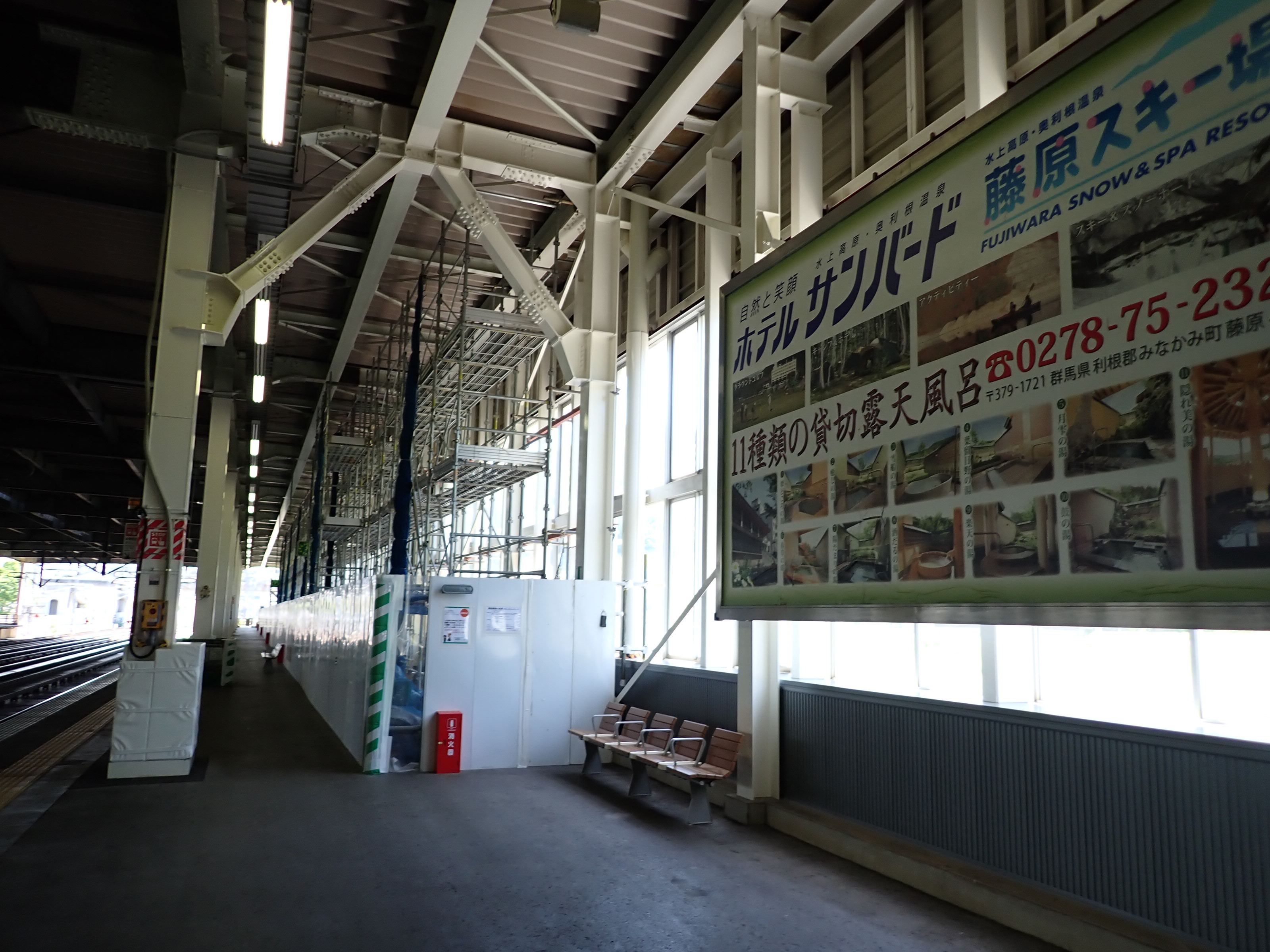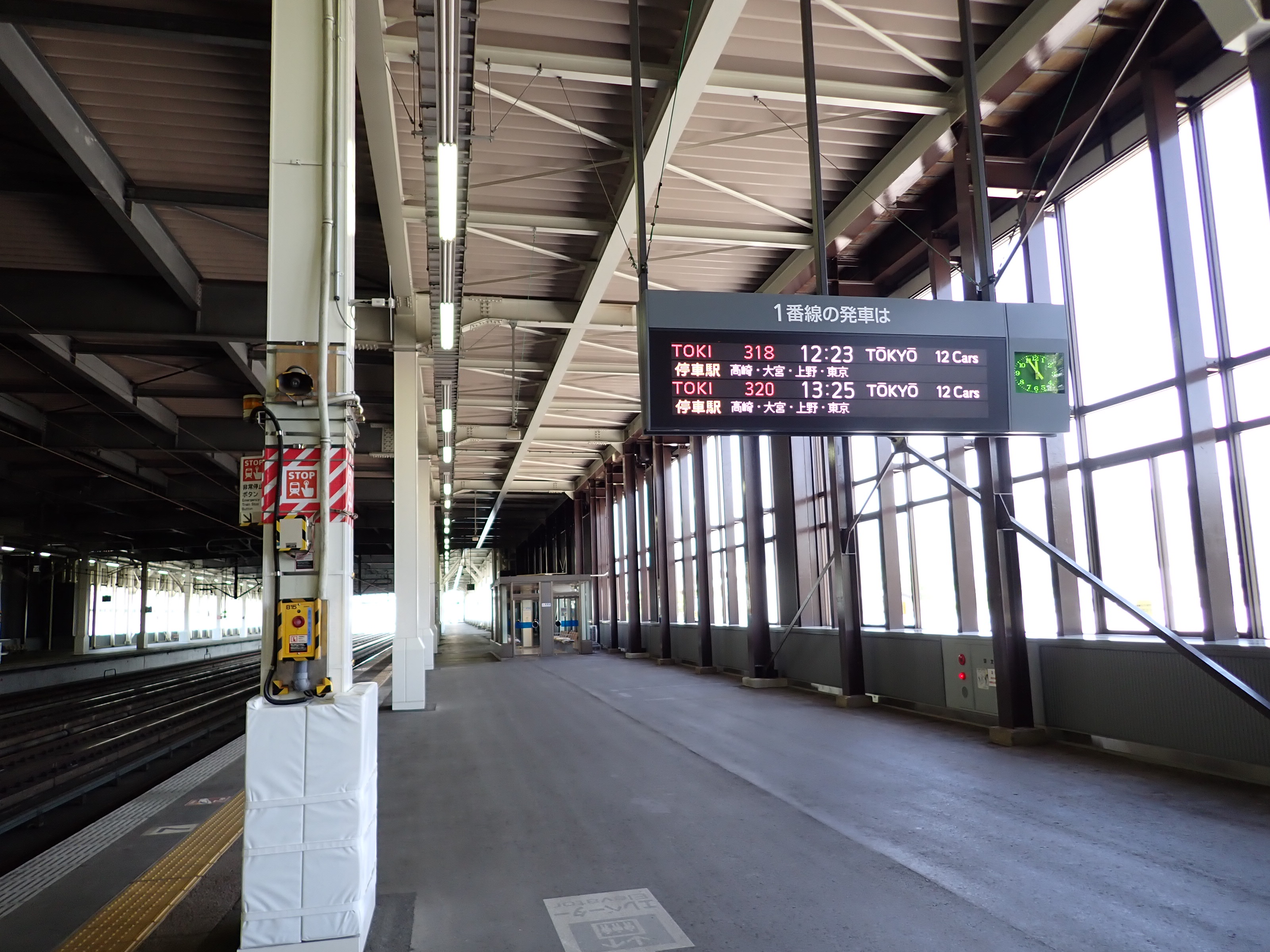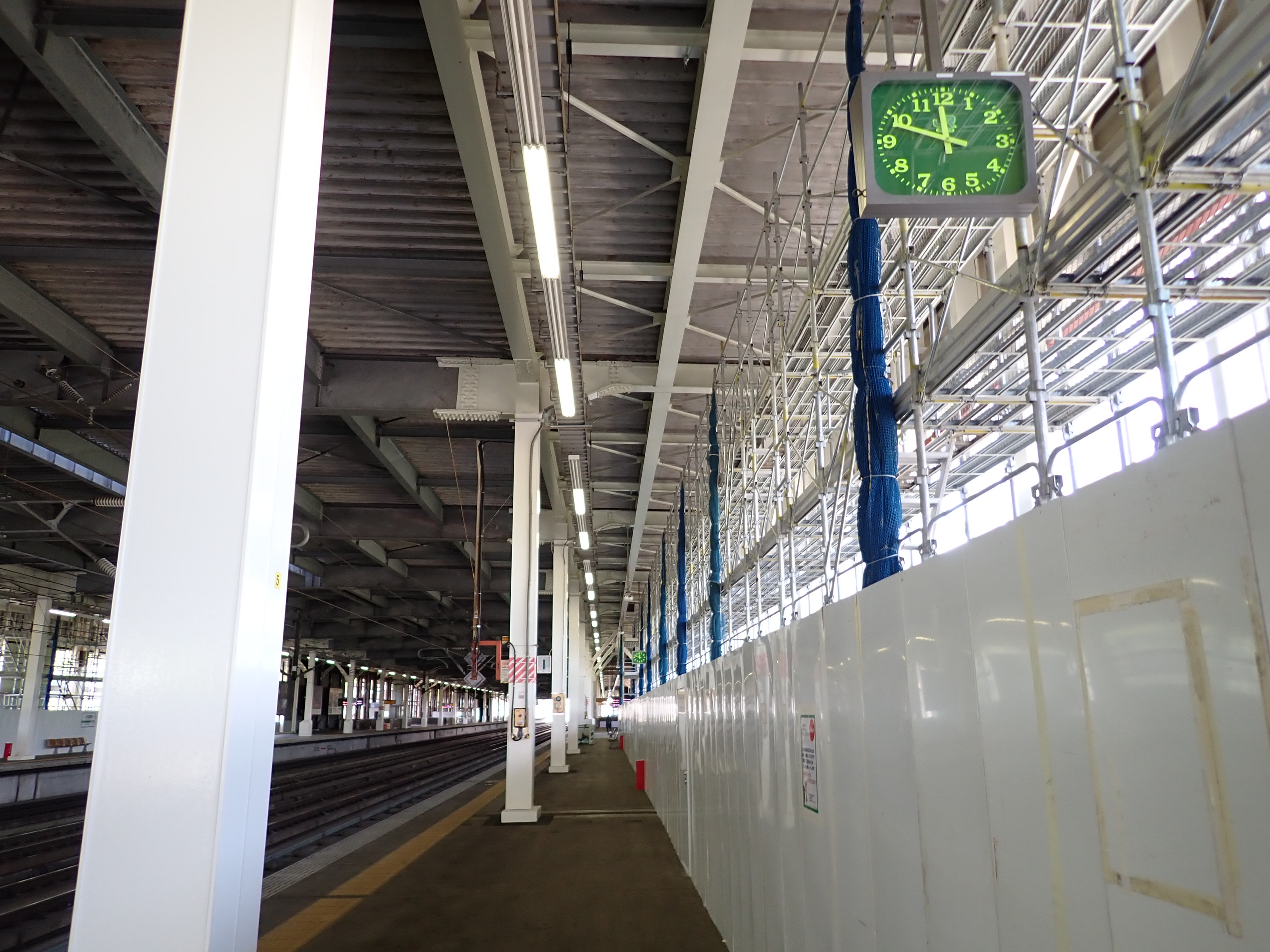 1番線の高崎駅側。工事のため仮囲いがされていました。