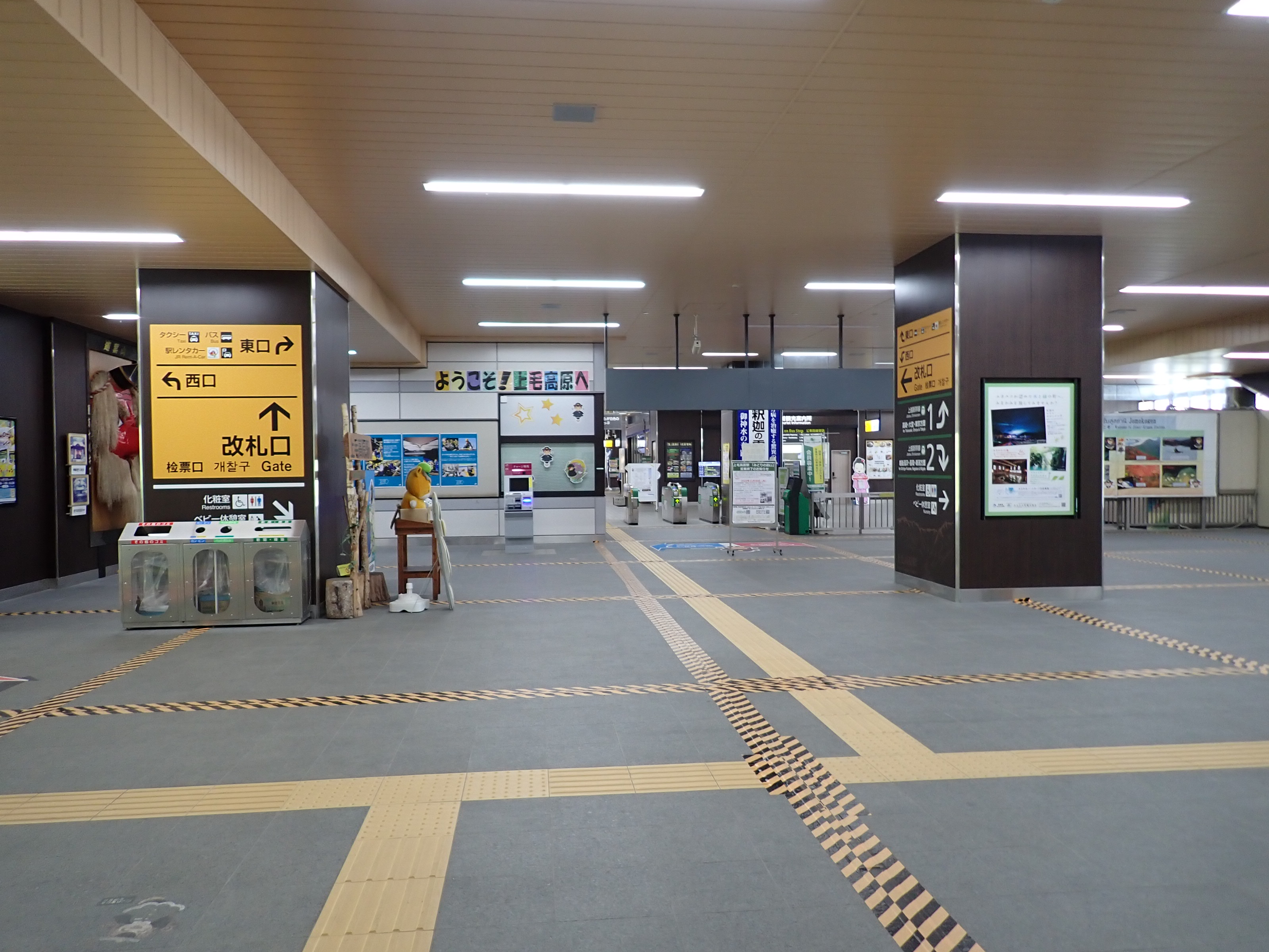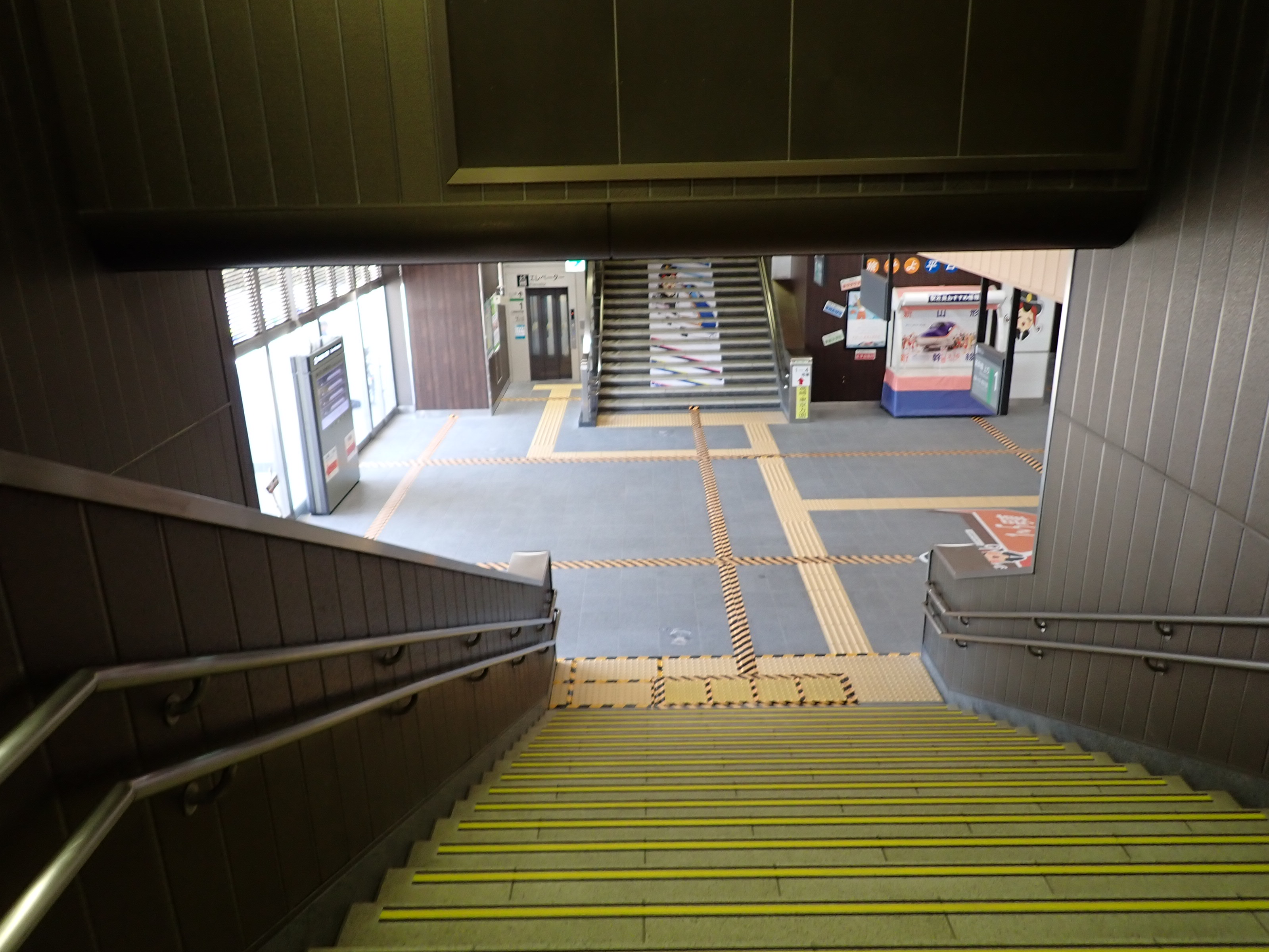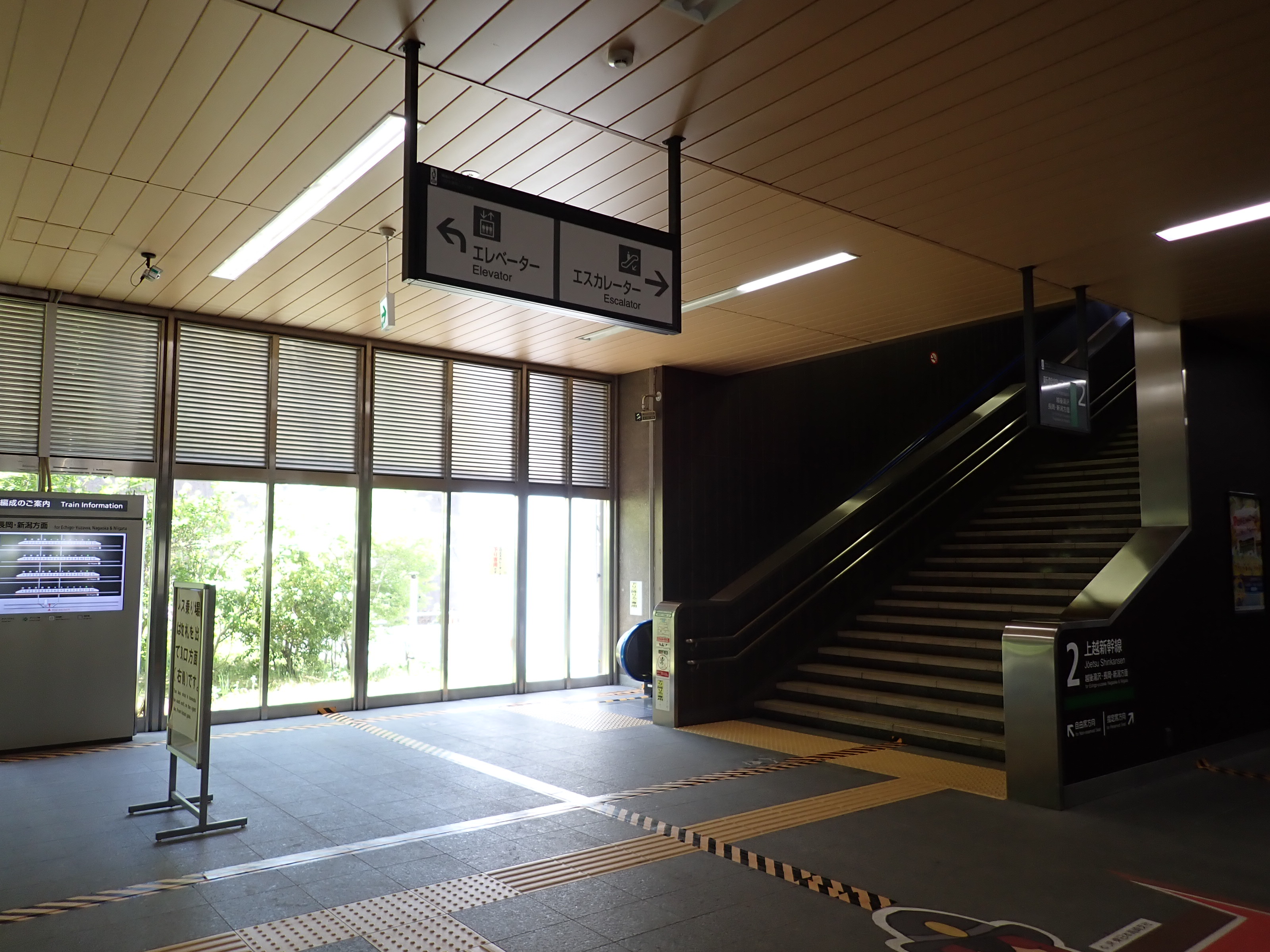 越後湯沢駅側の階段・エスカレーター付近の様子。