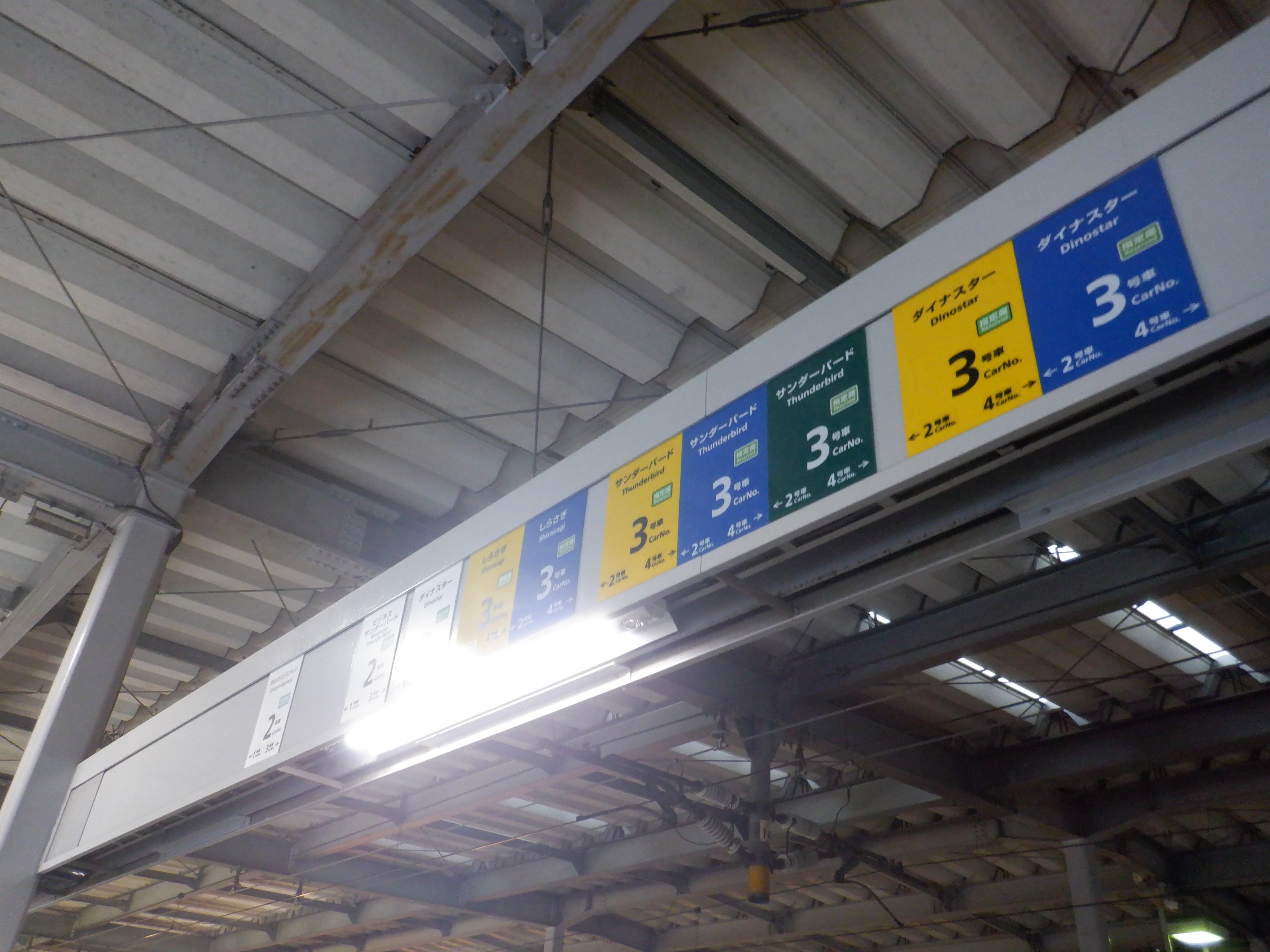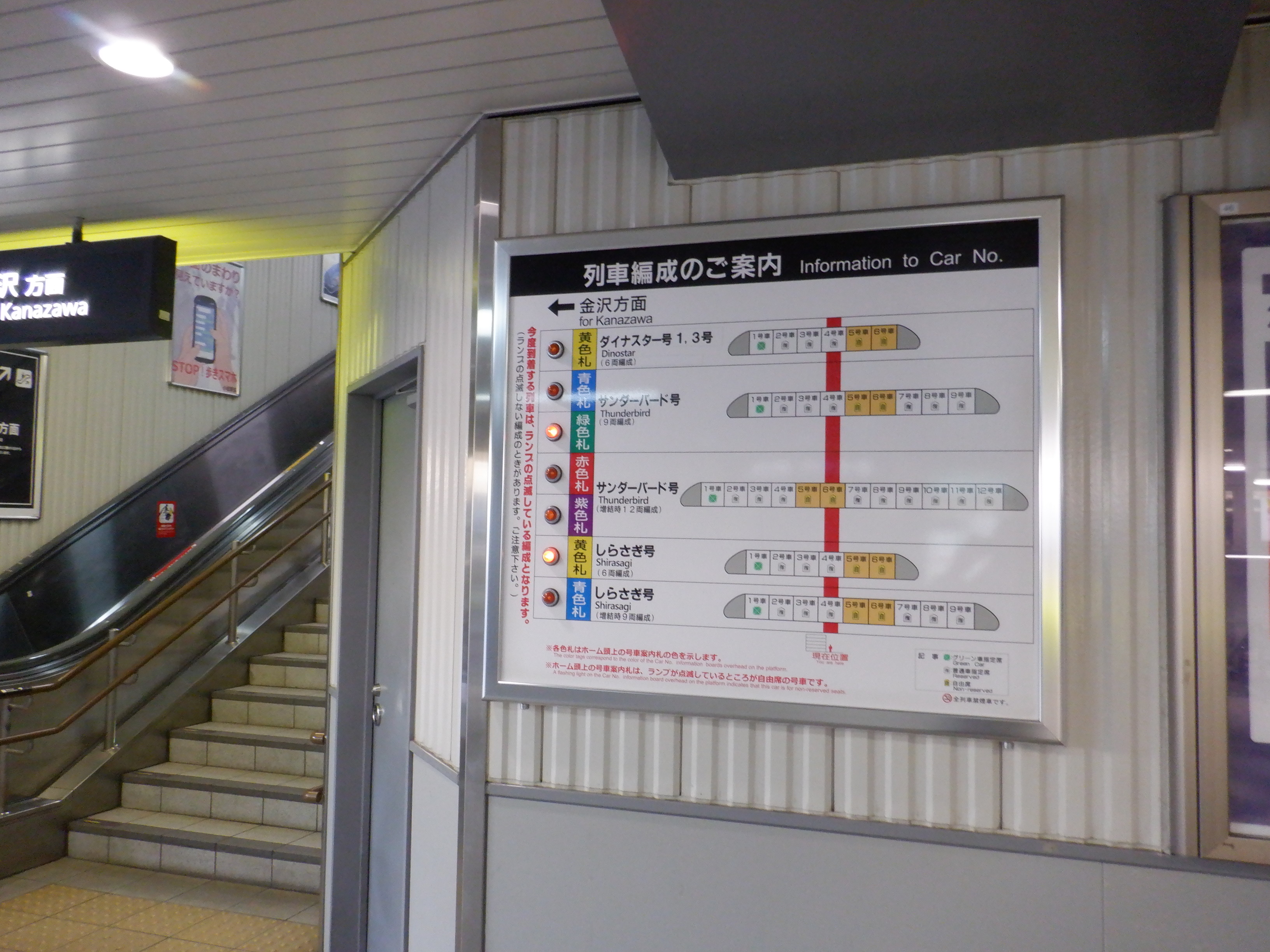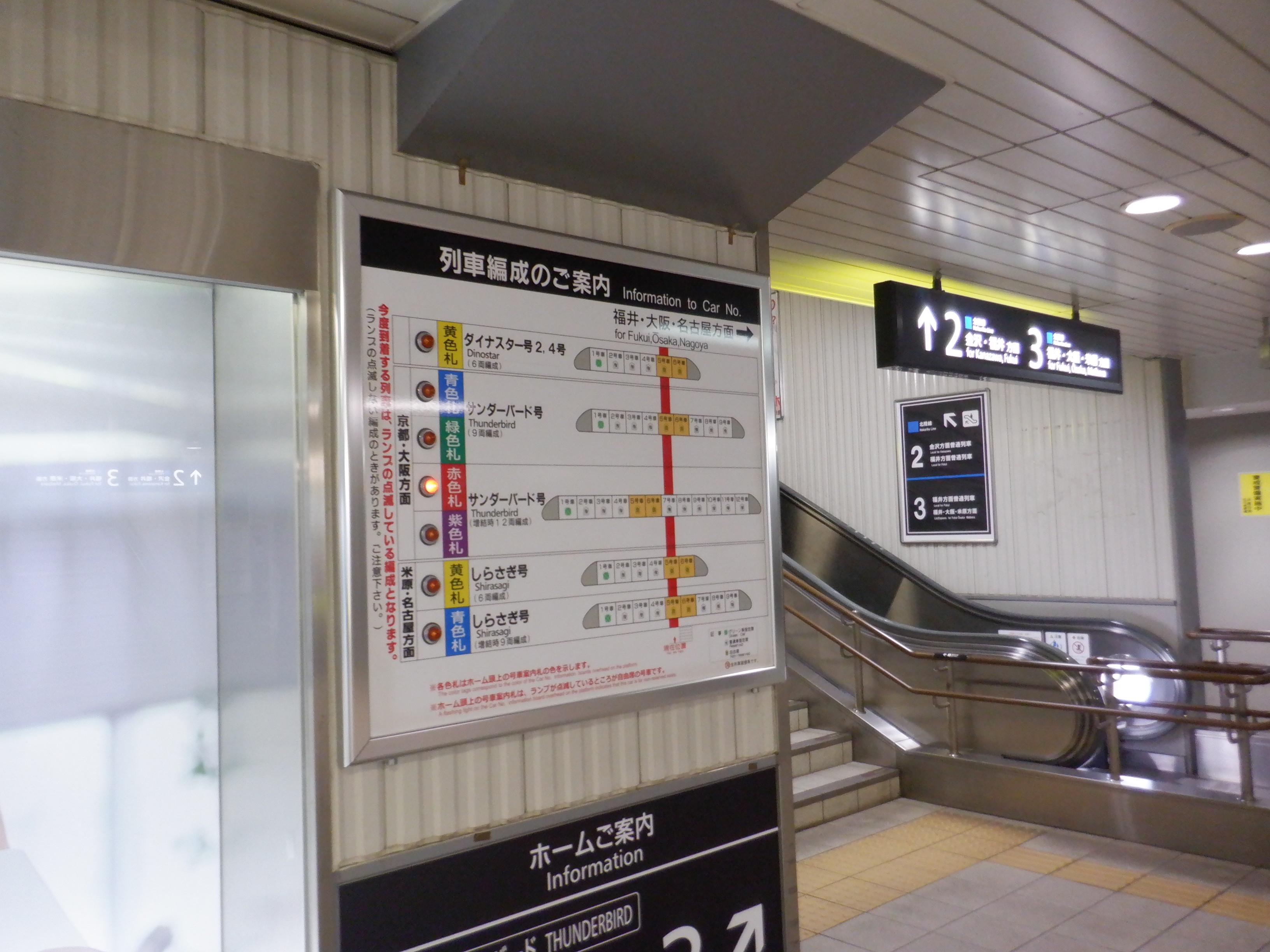 1番のりばエレベーター付近の特急列車自由席整列案内。