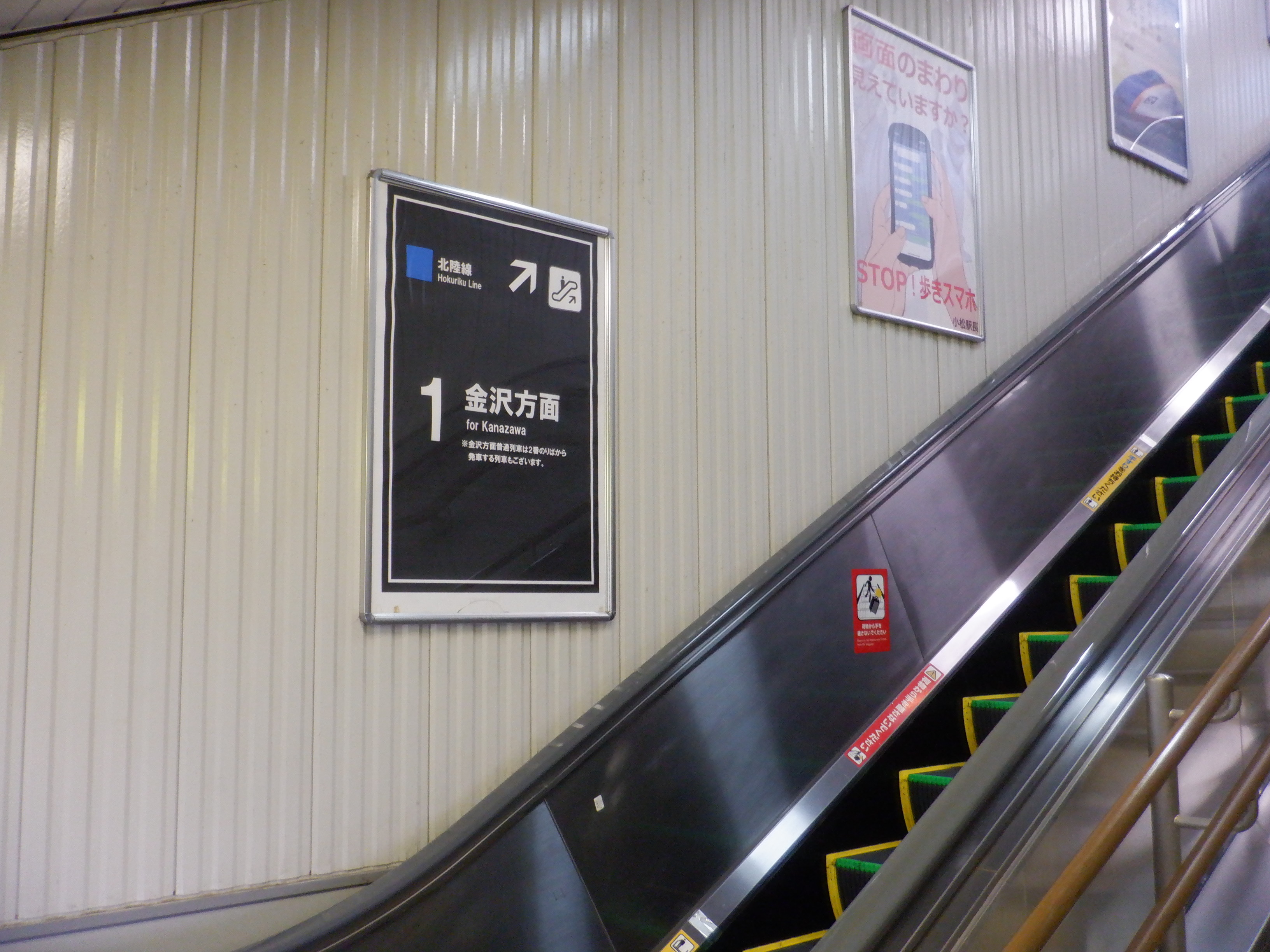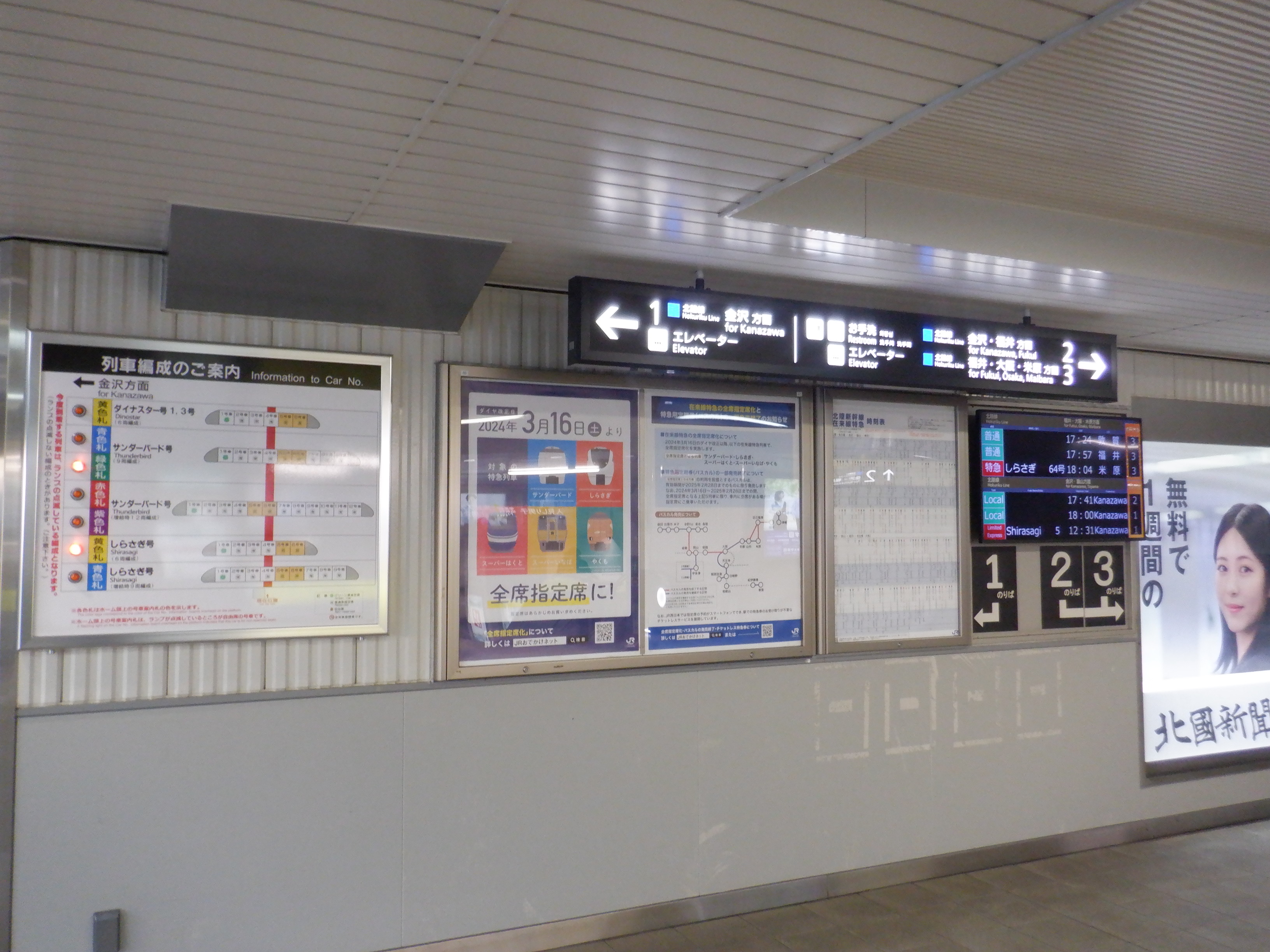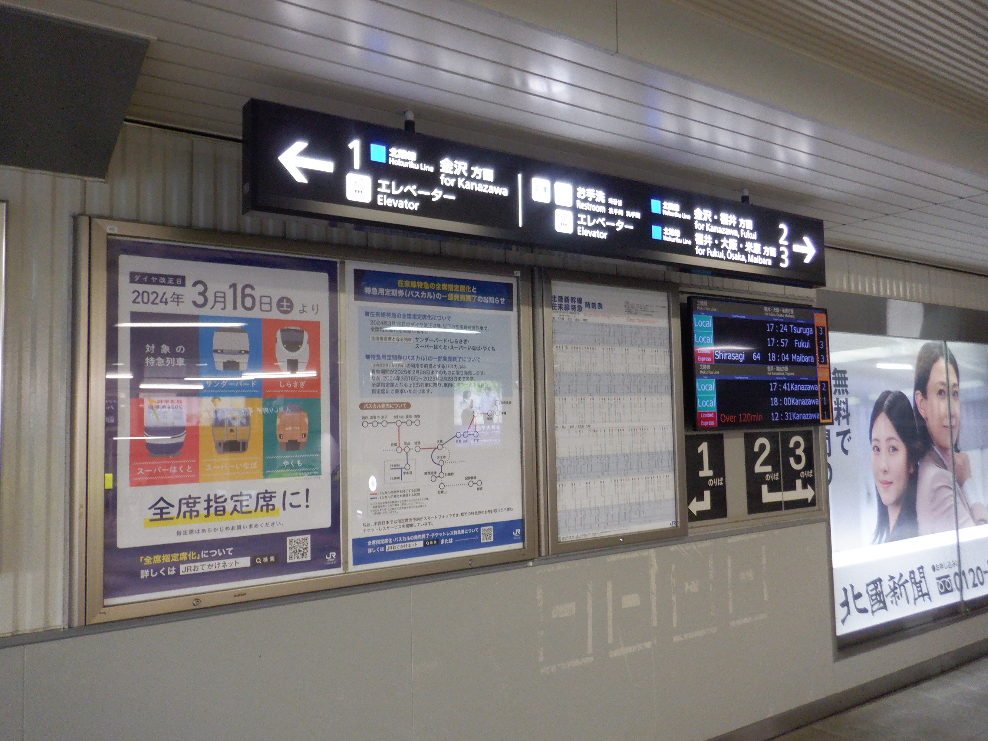 1番のりばエレベーター付近の特急列車自由席整列案内。