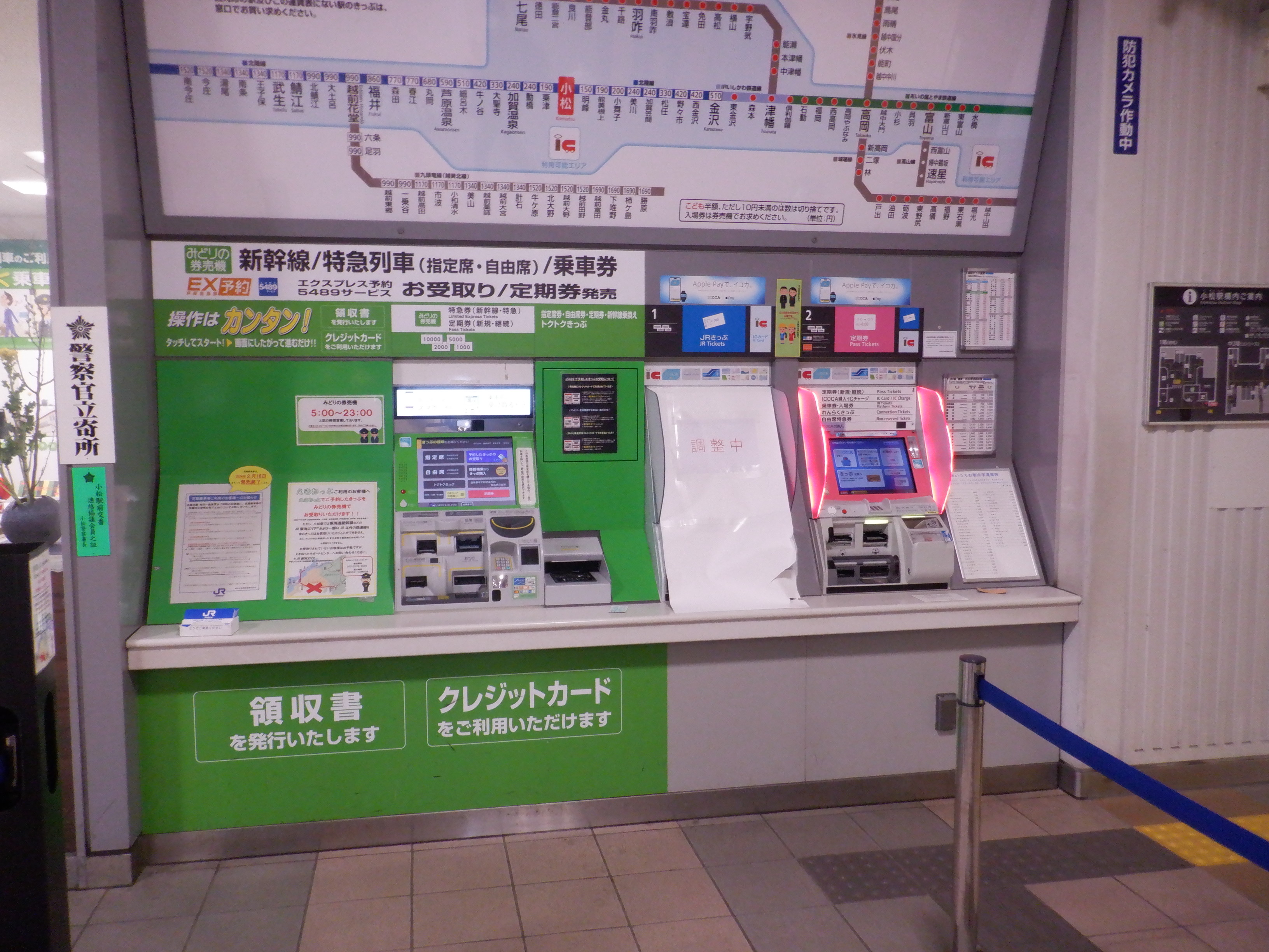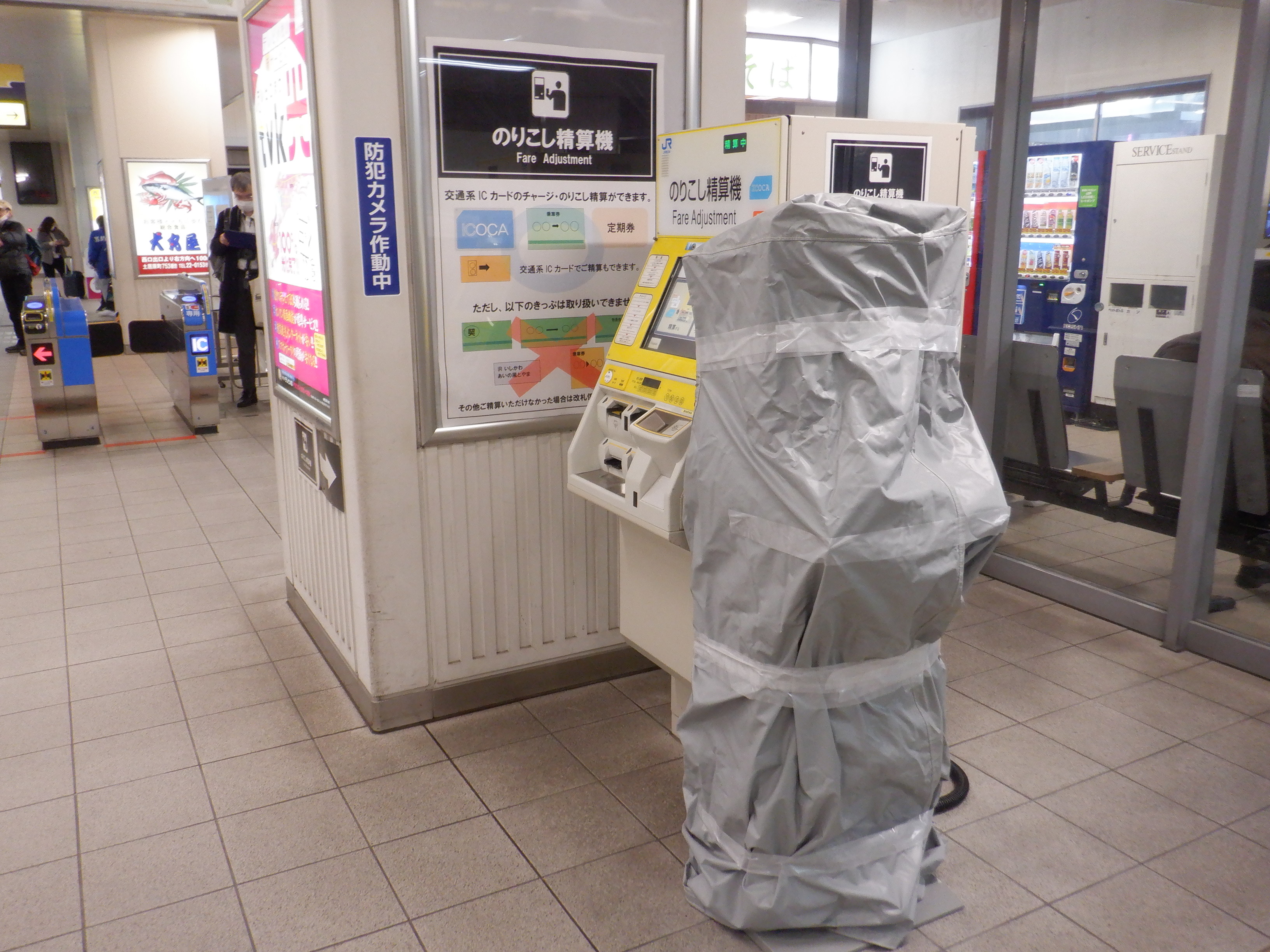 改札口近くののりこし精算機と移管後のICOCAチャージ機。