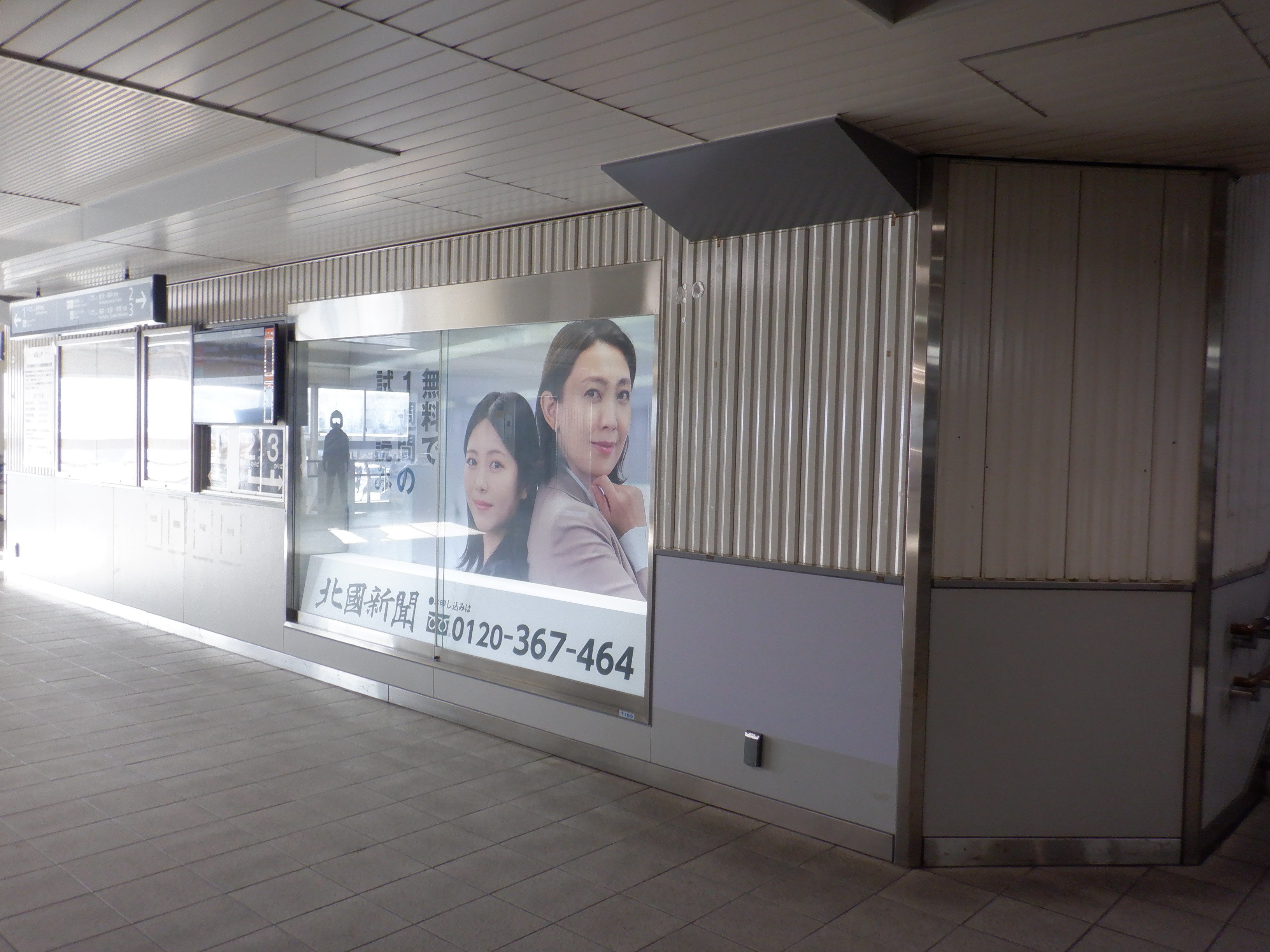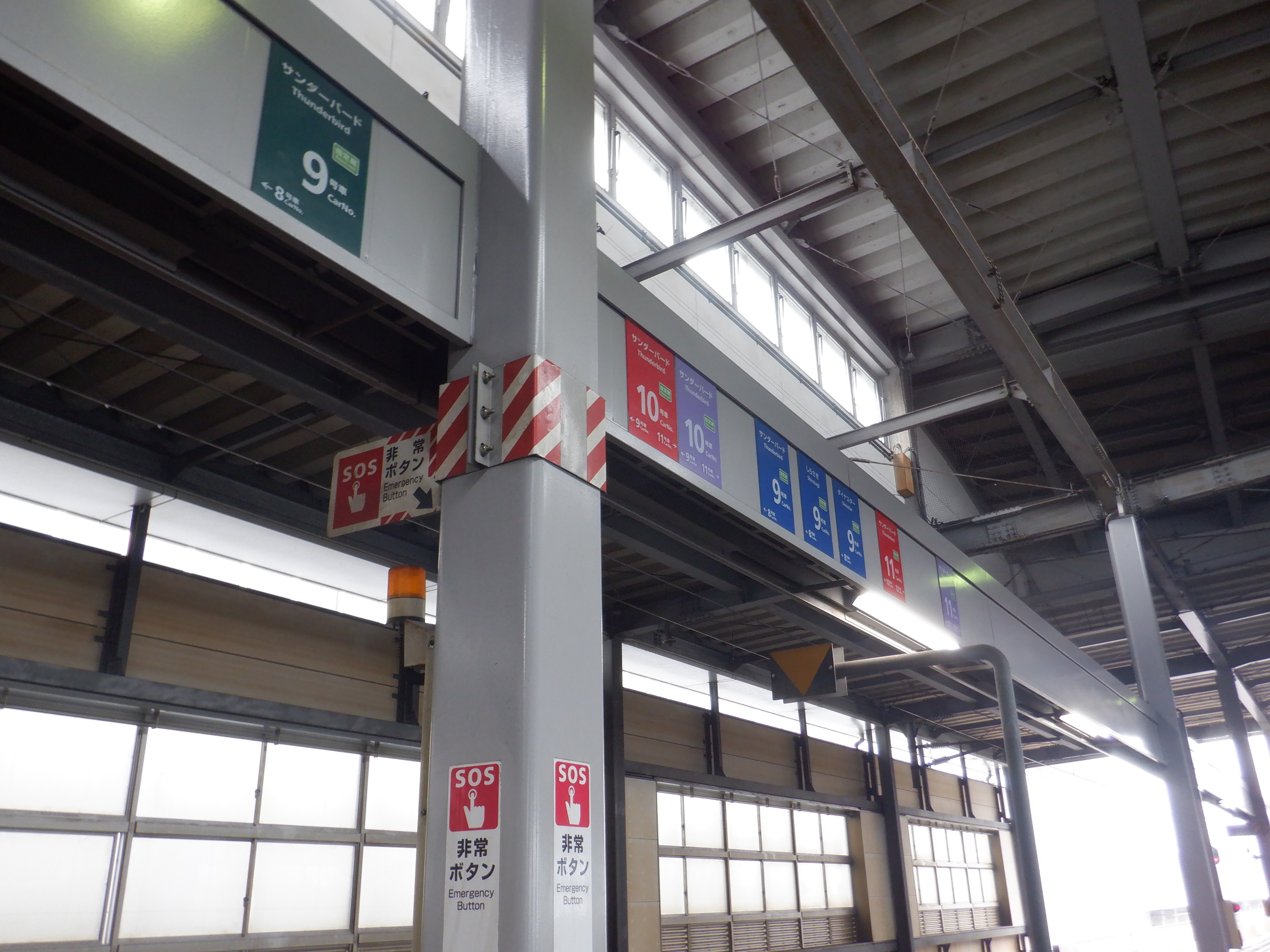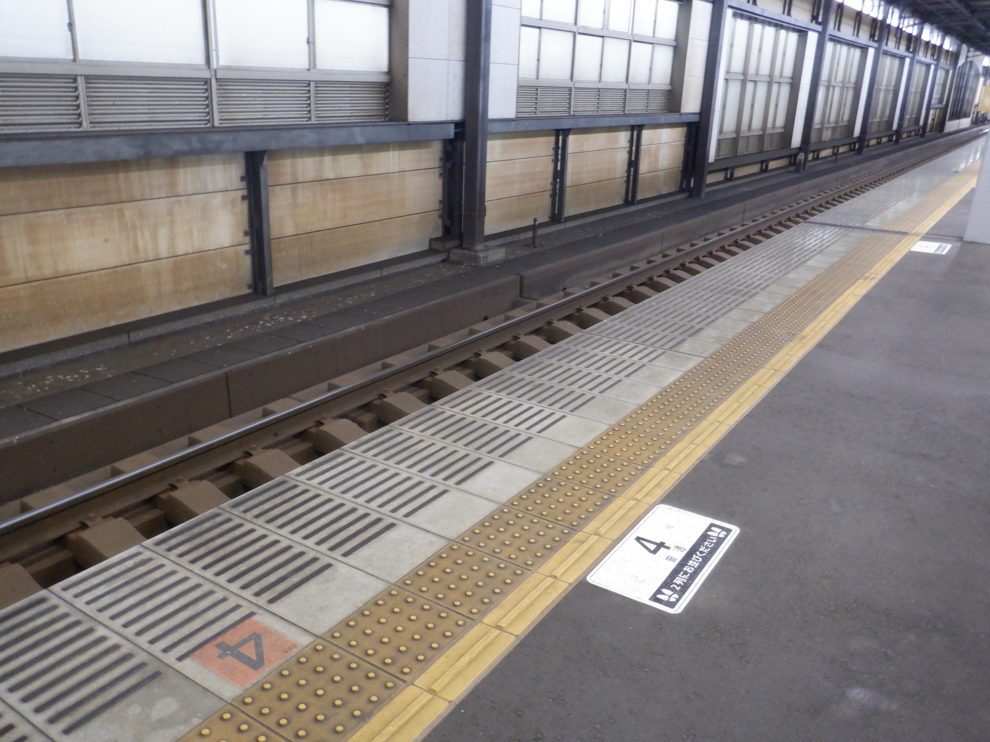 中二階正面の案内もシールが貼られているようです。また、特急列車の乗車位置案内は撤去されています。