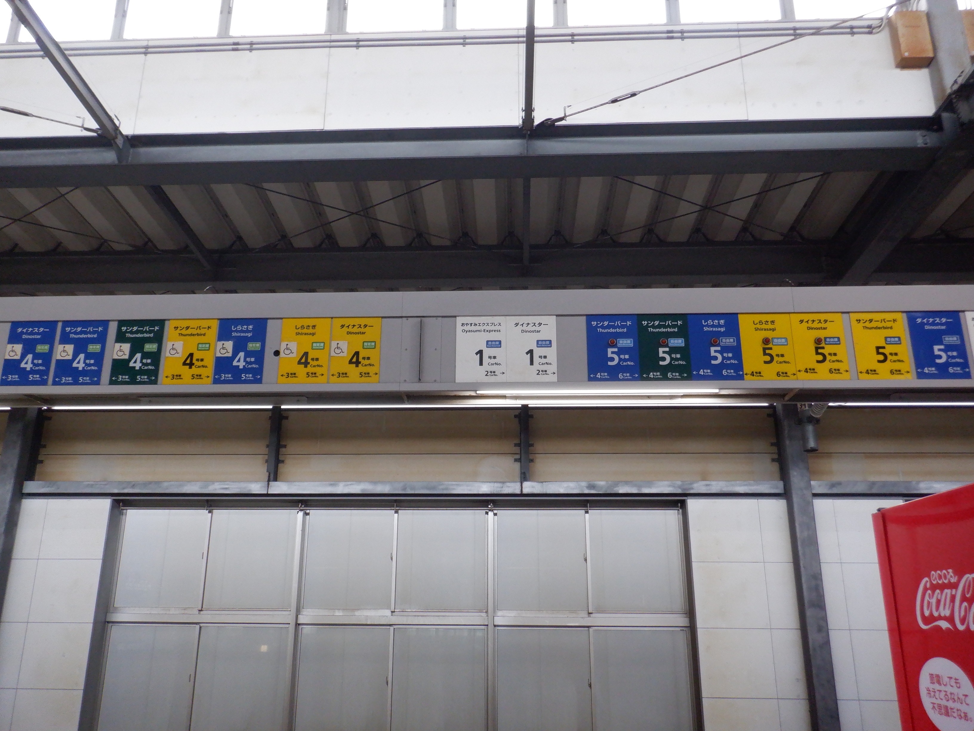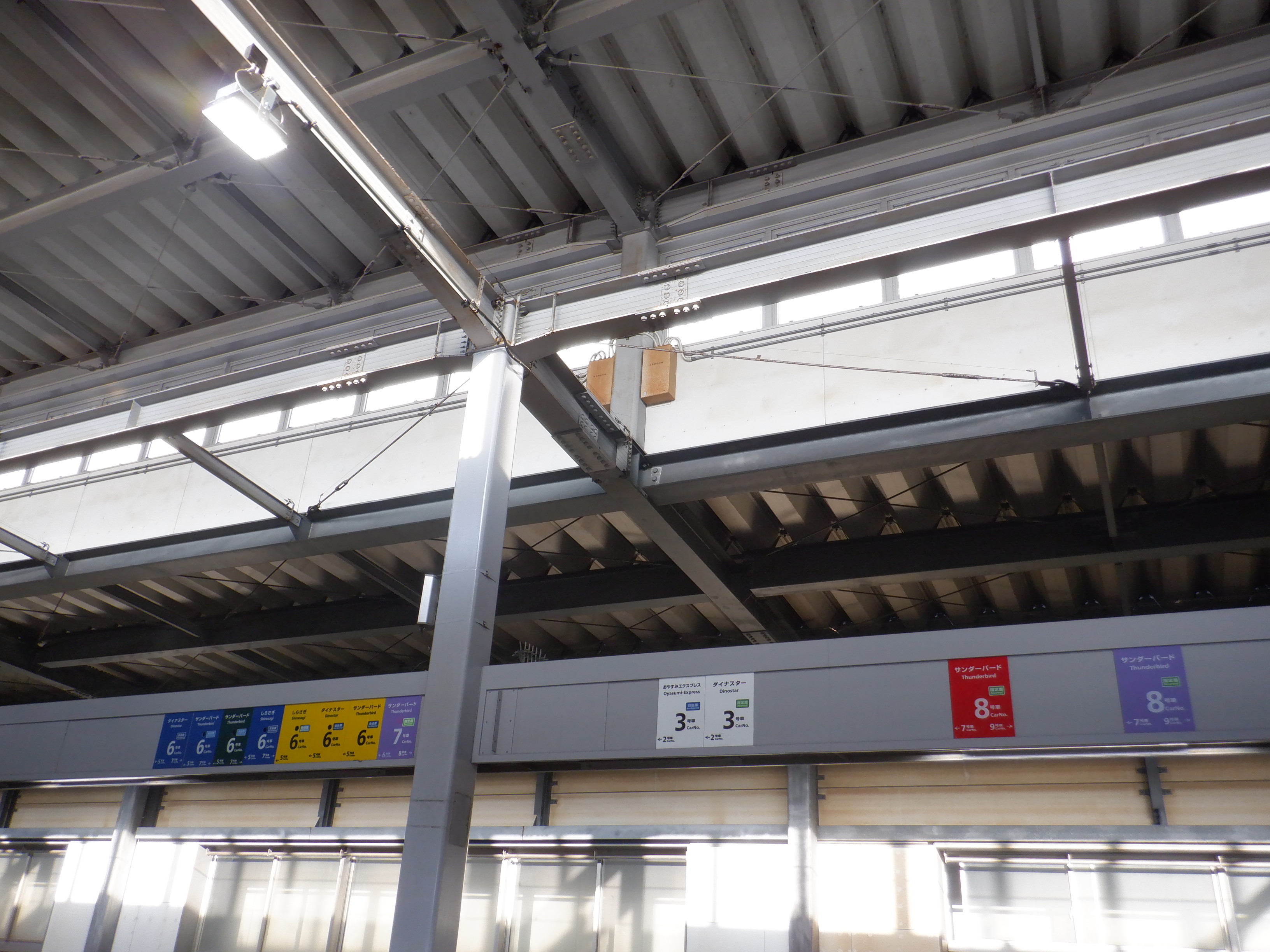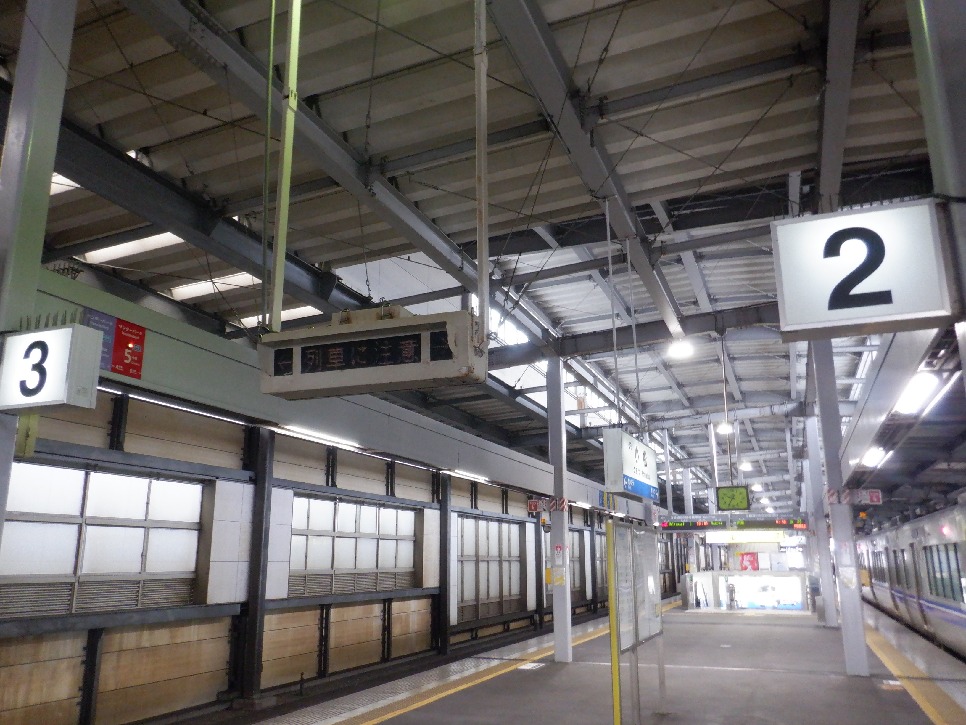 中二階正面の案内もシールが貼られているようです。また、特急列車の乗車位置案内は撤去されています。