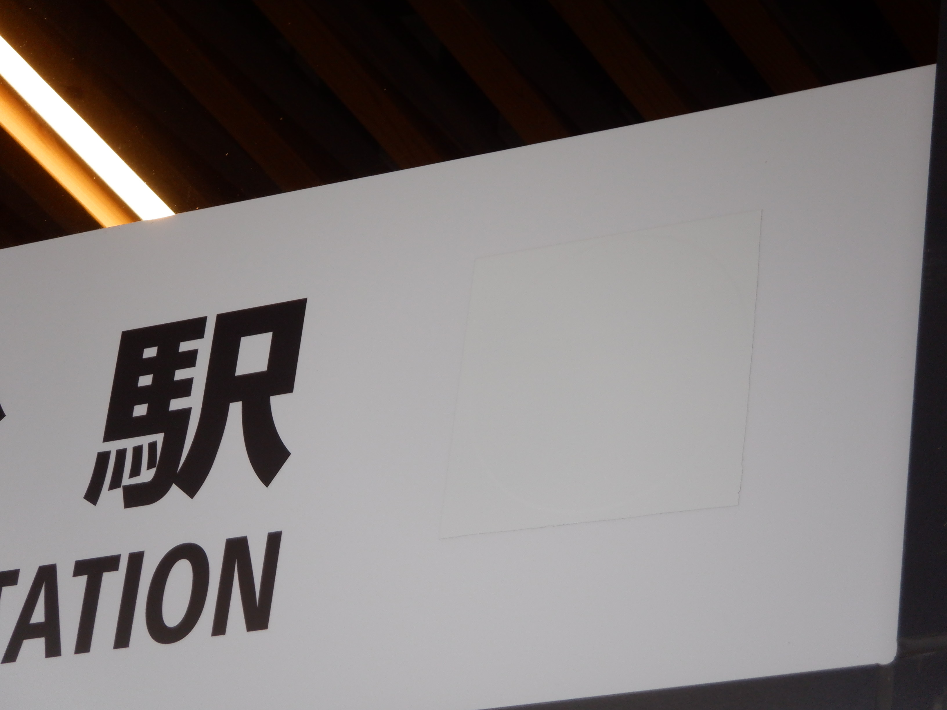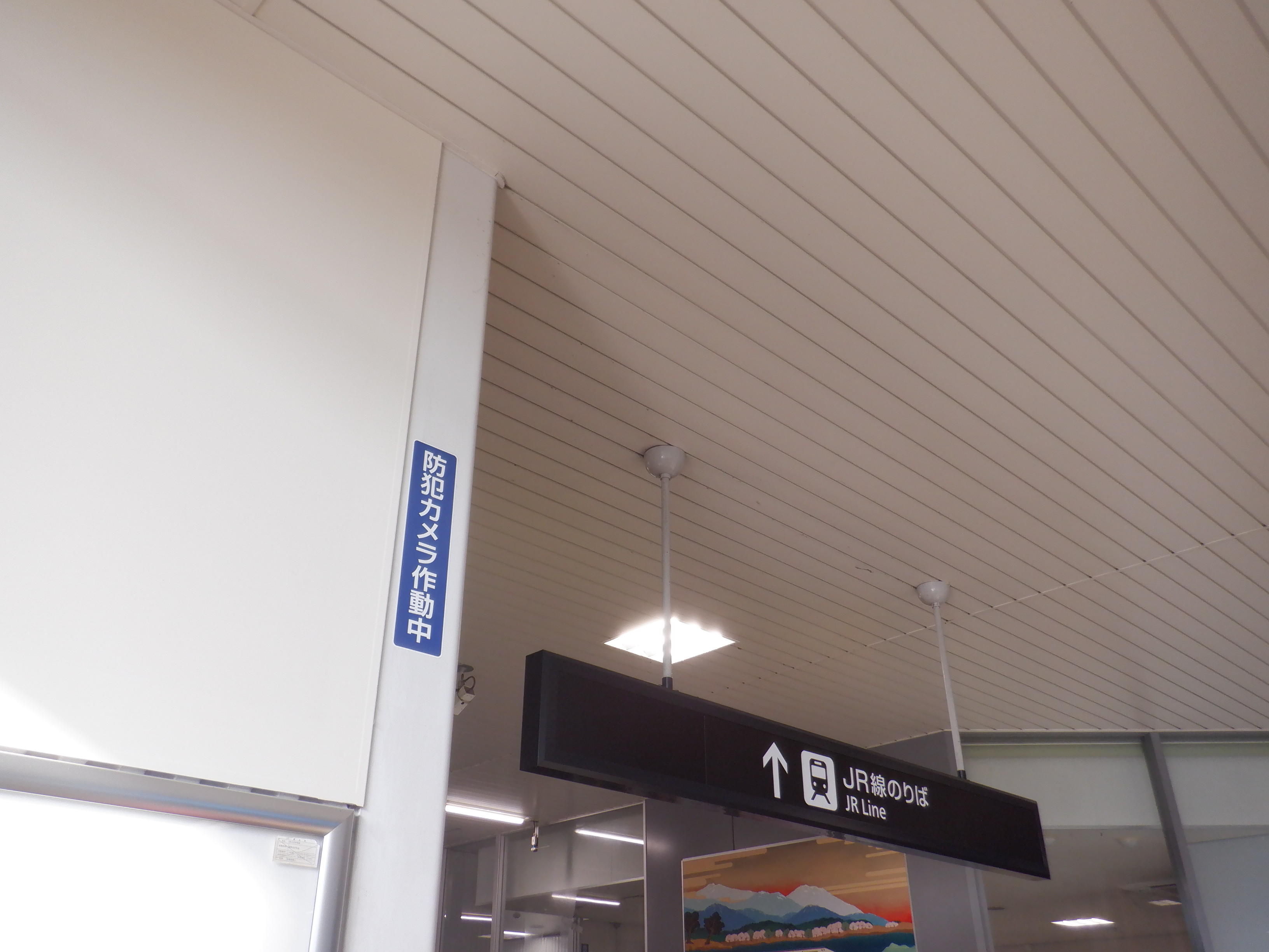 JR線のりばの案内はシールが貼られていると思われるところと「JR線」が隠されたところがあります。
