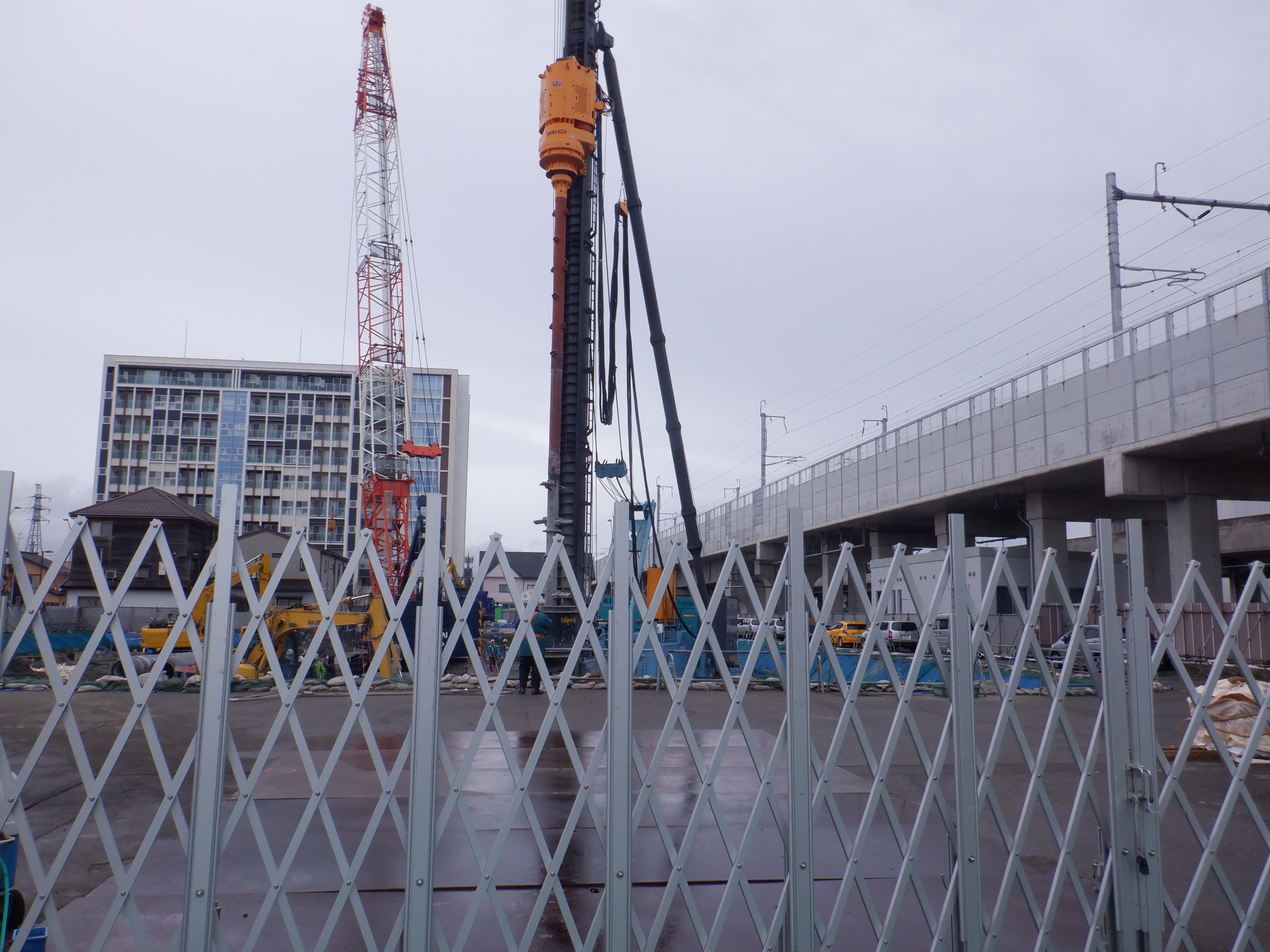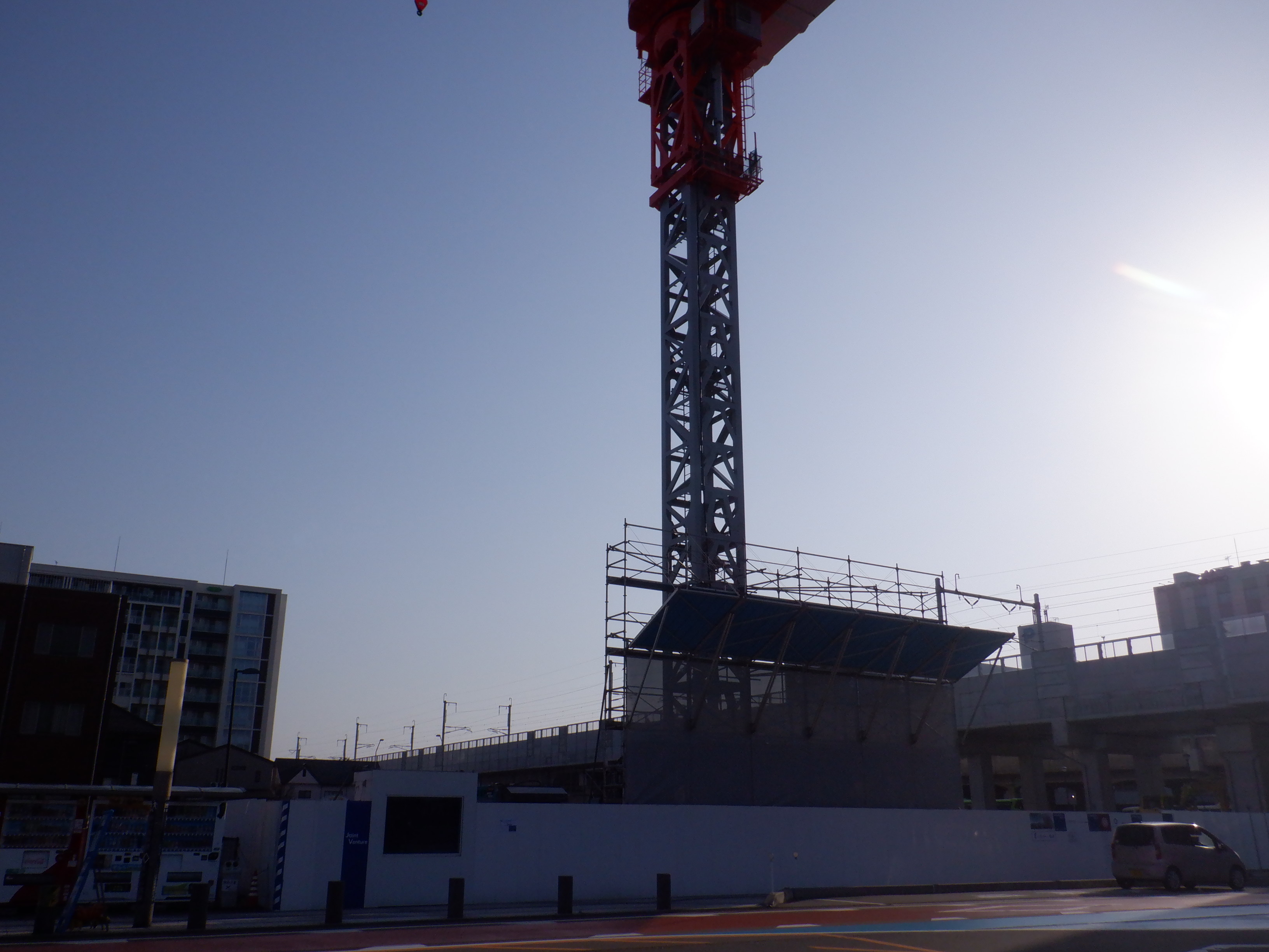 北陸電力のビルができるところ。クレーン車が入っていました。