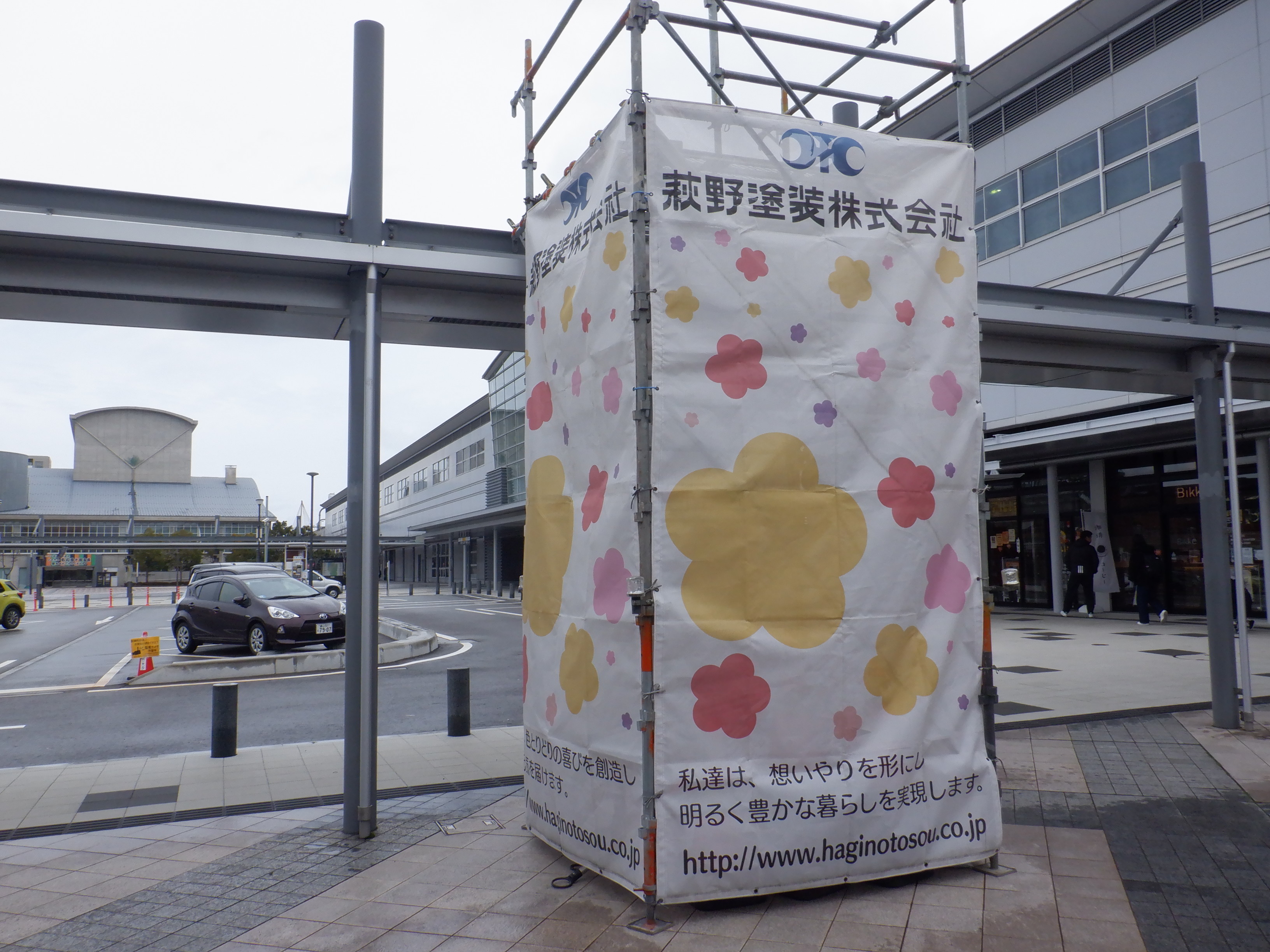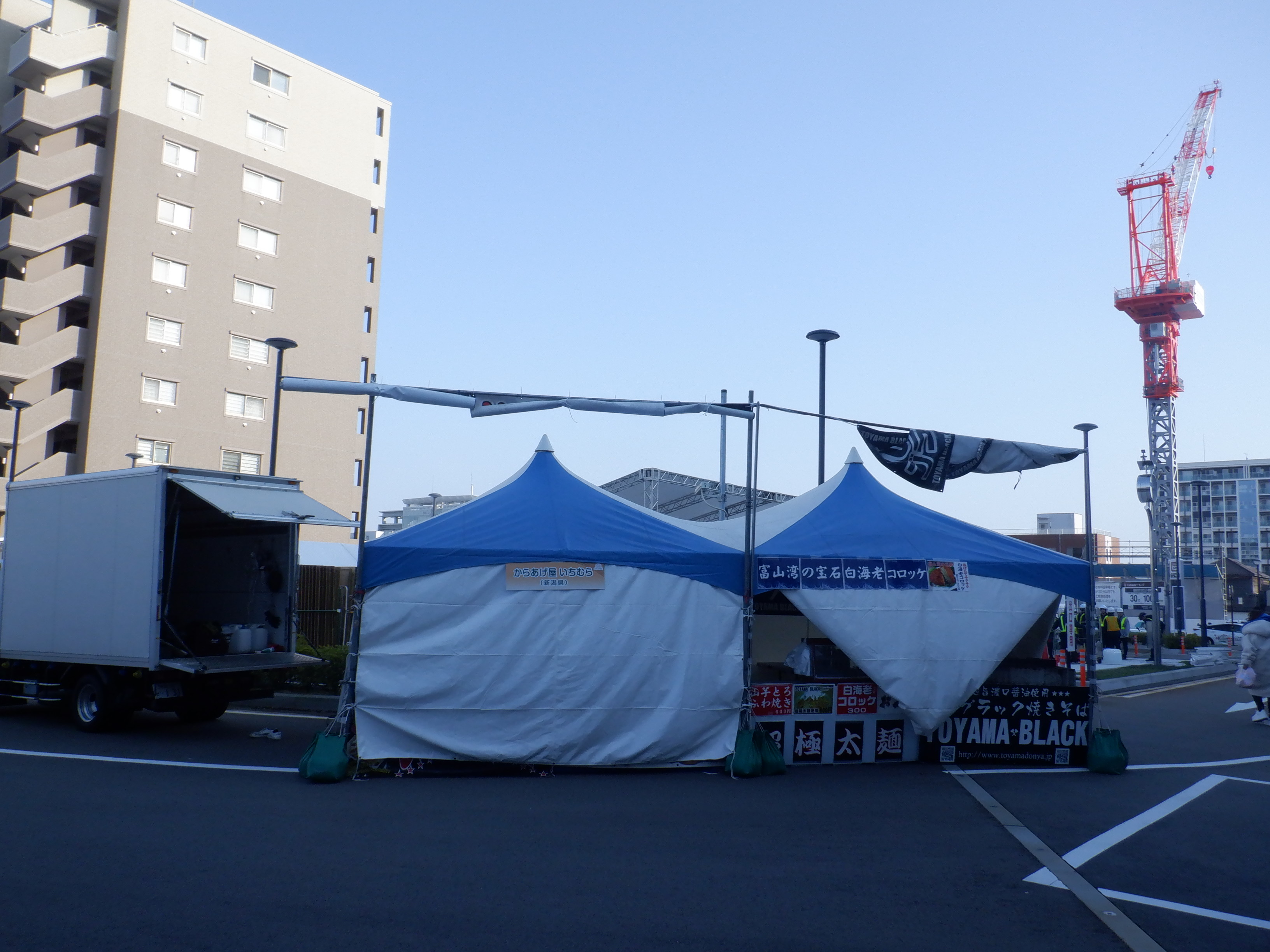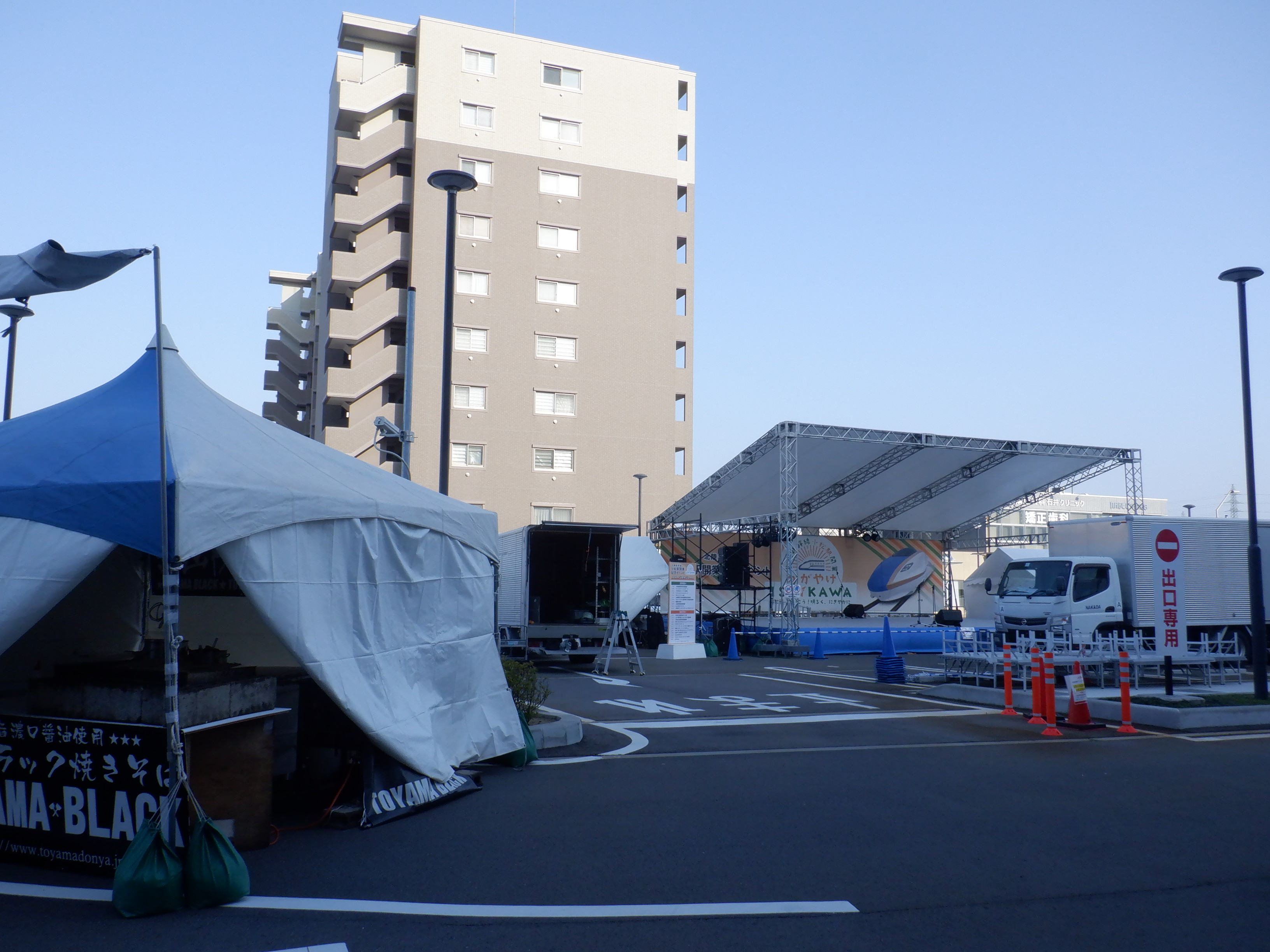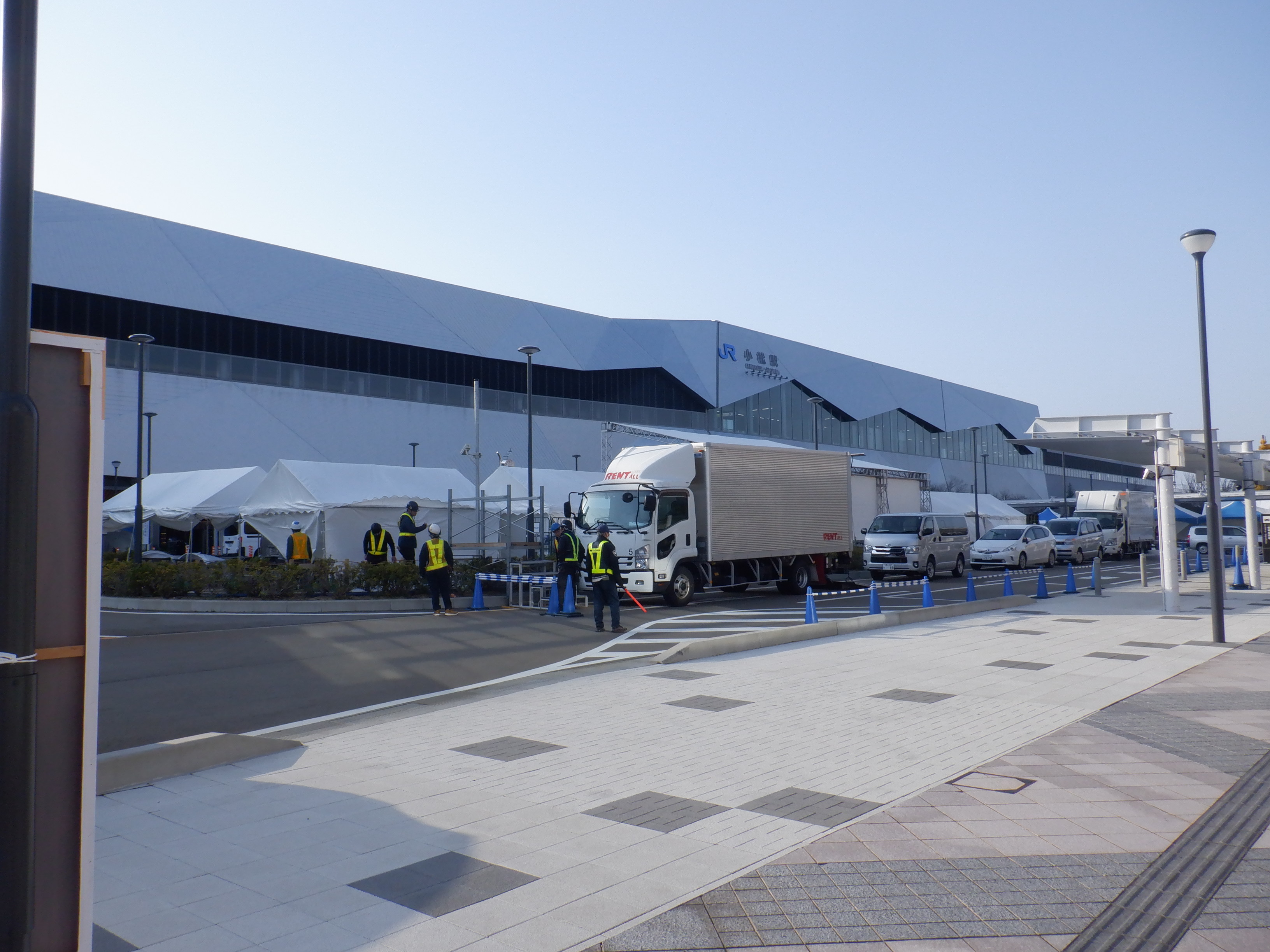 東口の様子。こちらは新幹線開業記念イベントの準備中でした。