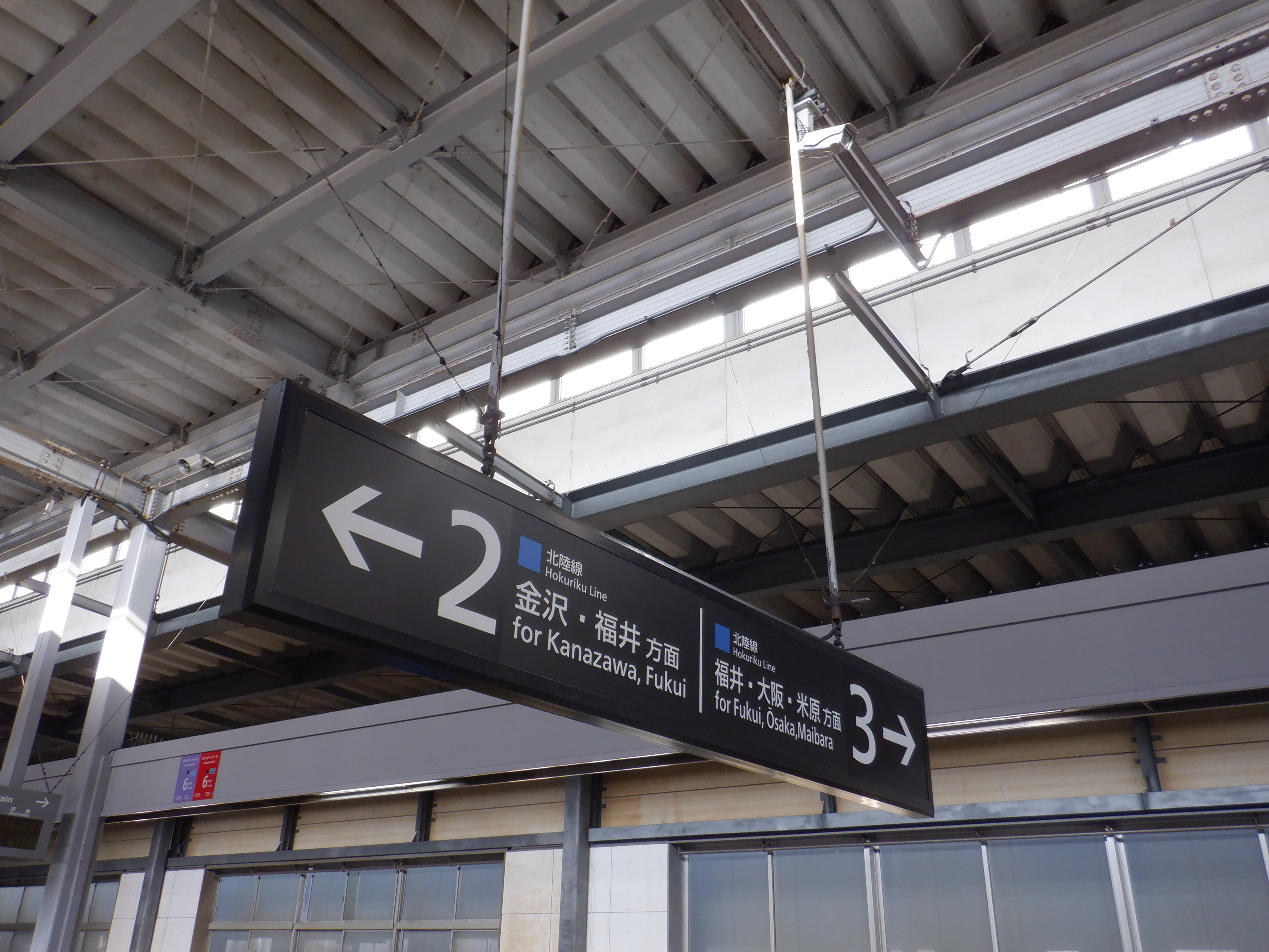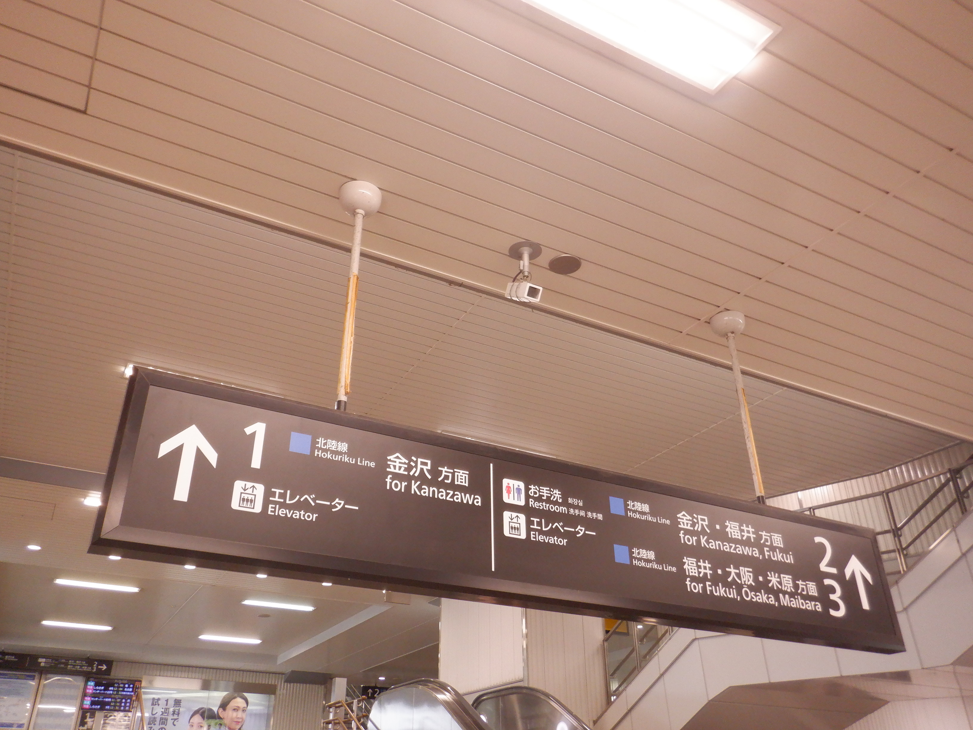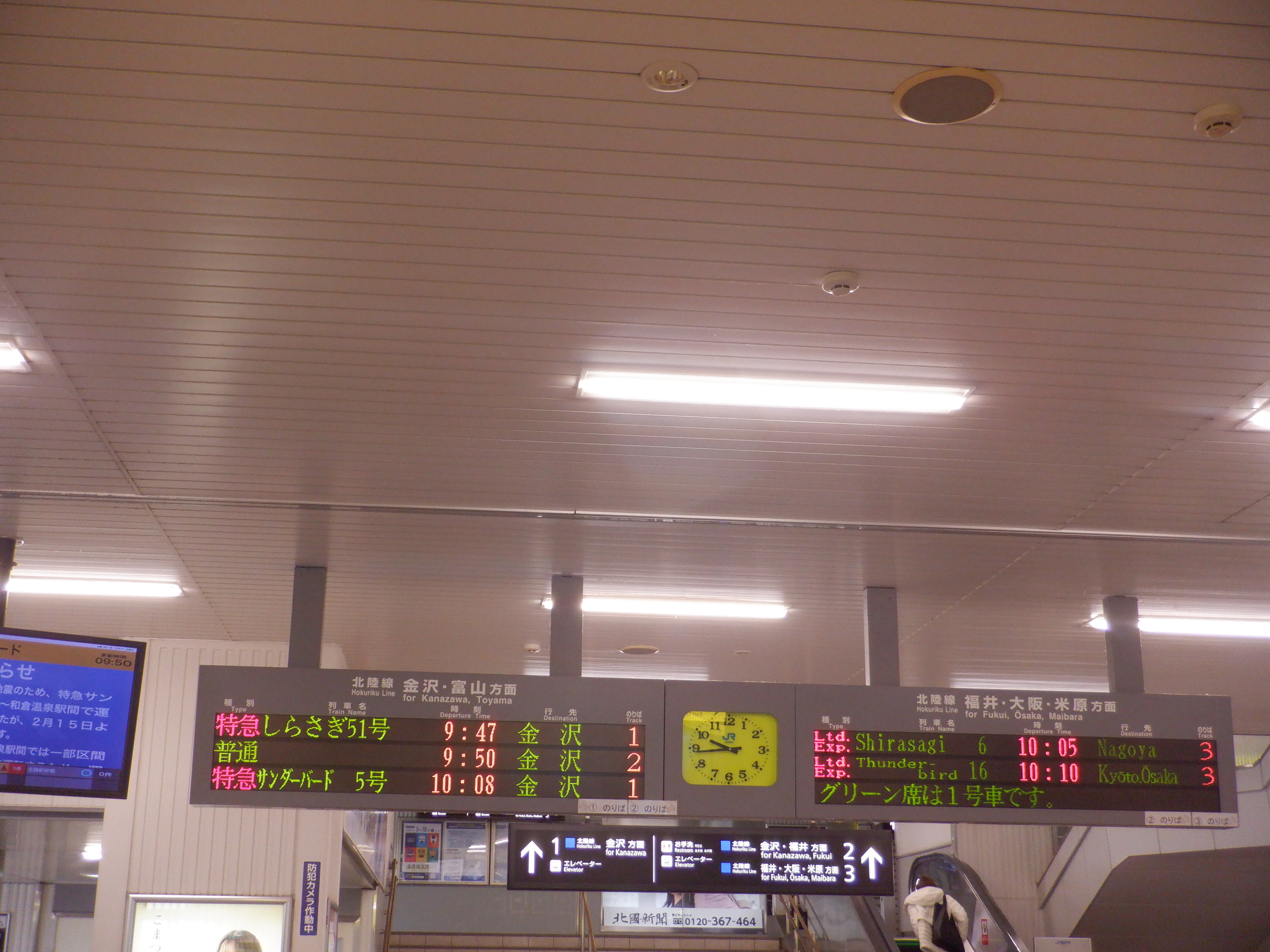新幹線のりばとなるところ。IRいしかわ鉄道の表示もあります。