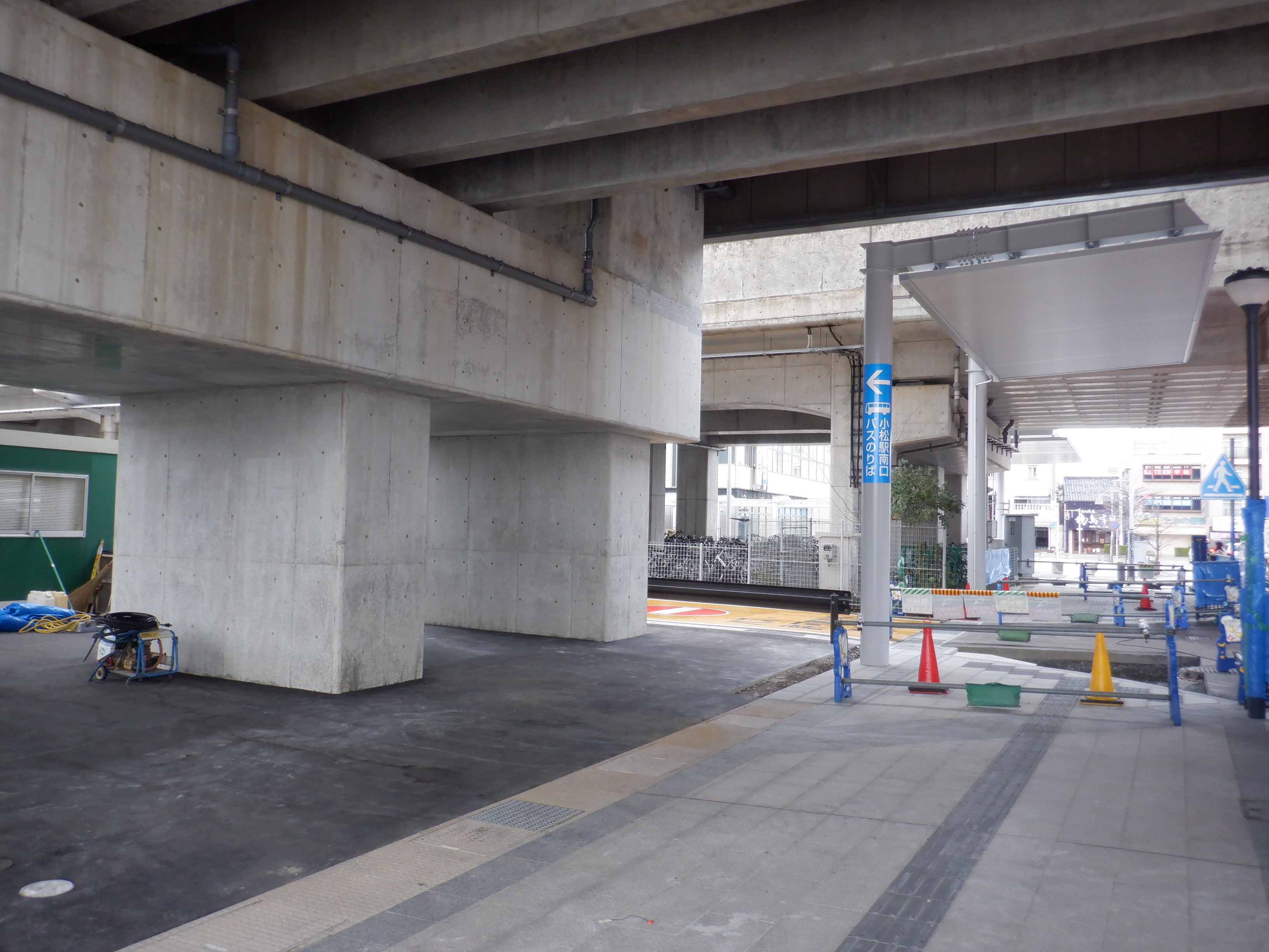 南口(高架下)のバスのりばシェルター建設中の様子。