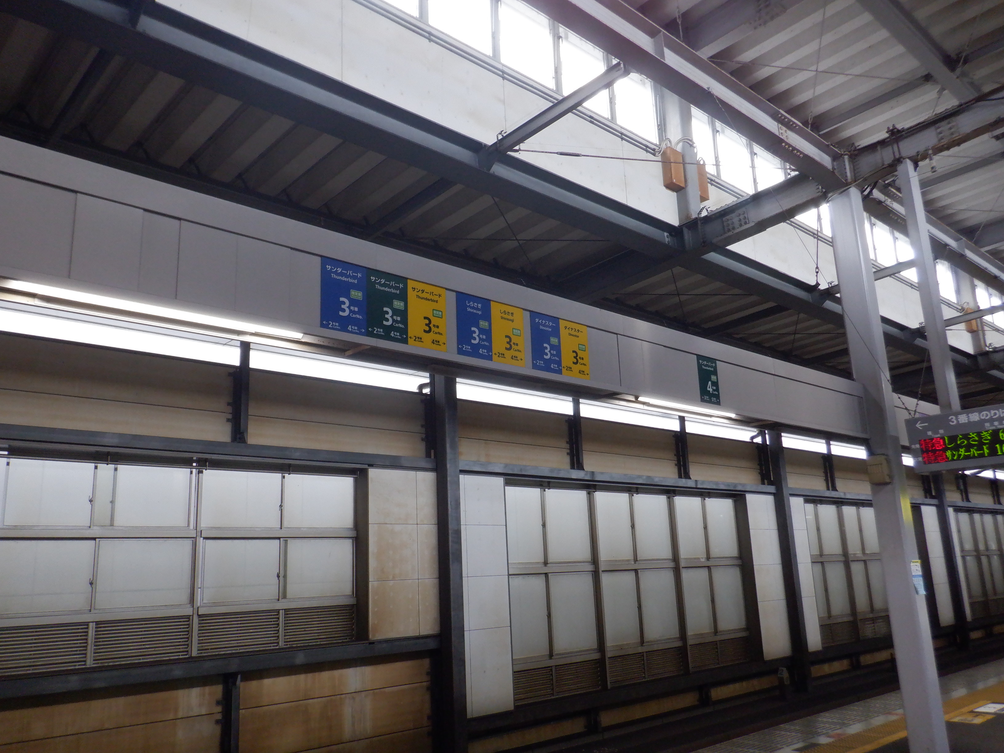 3番のりばの特急列車の乗車位置案内など。