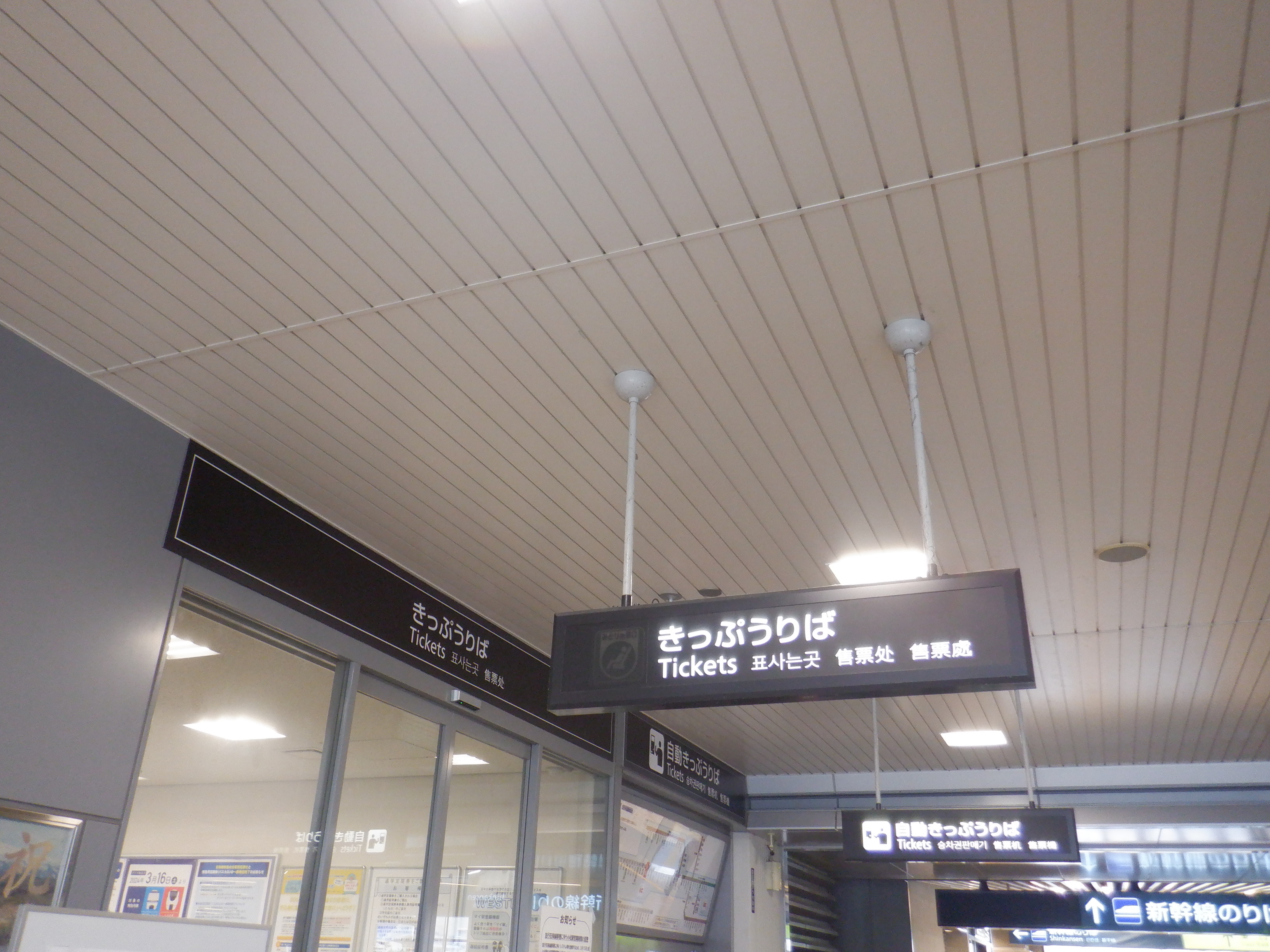 改札口付近の案内もシールが貼られているように見えます。