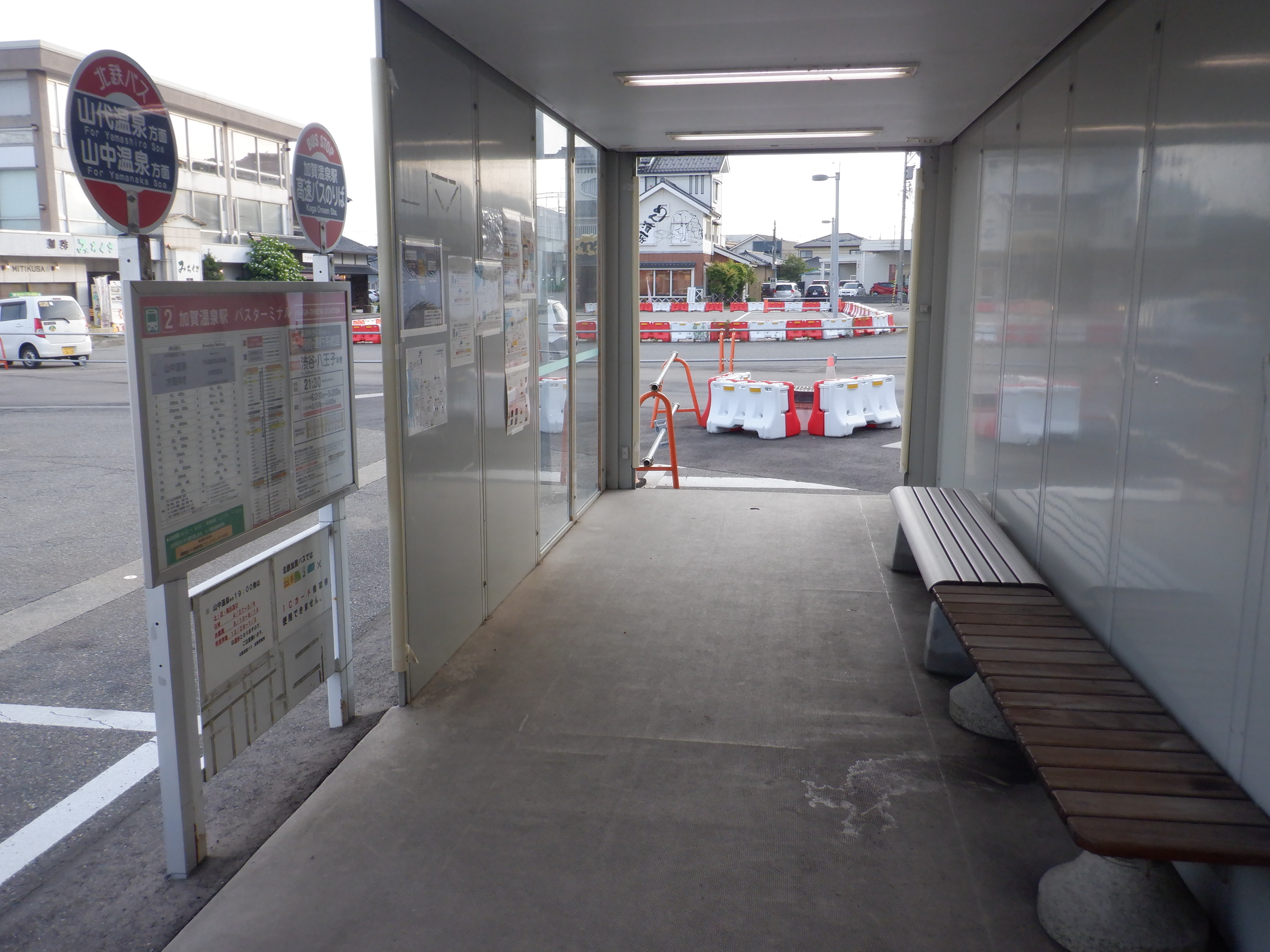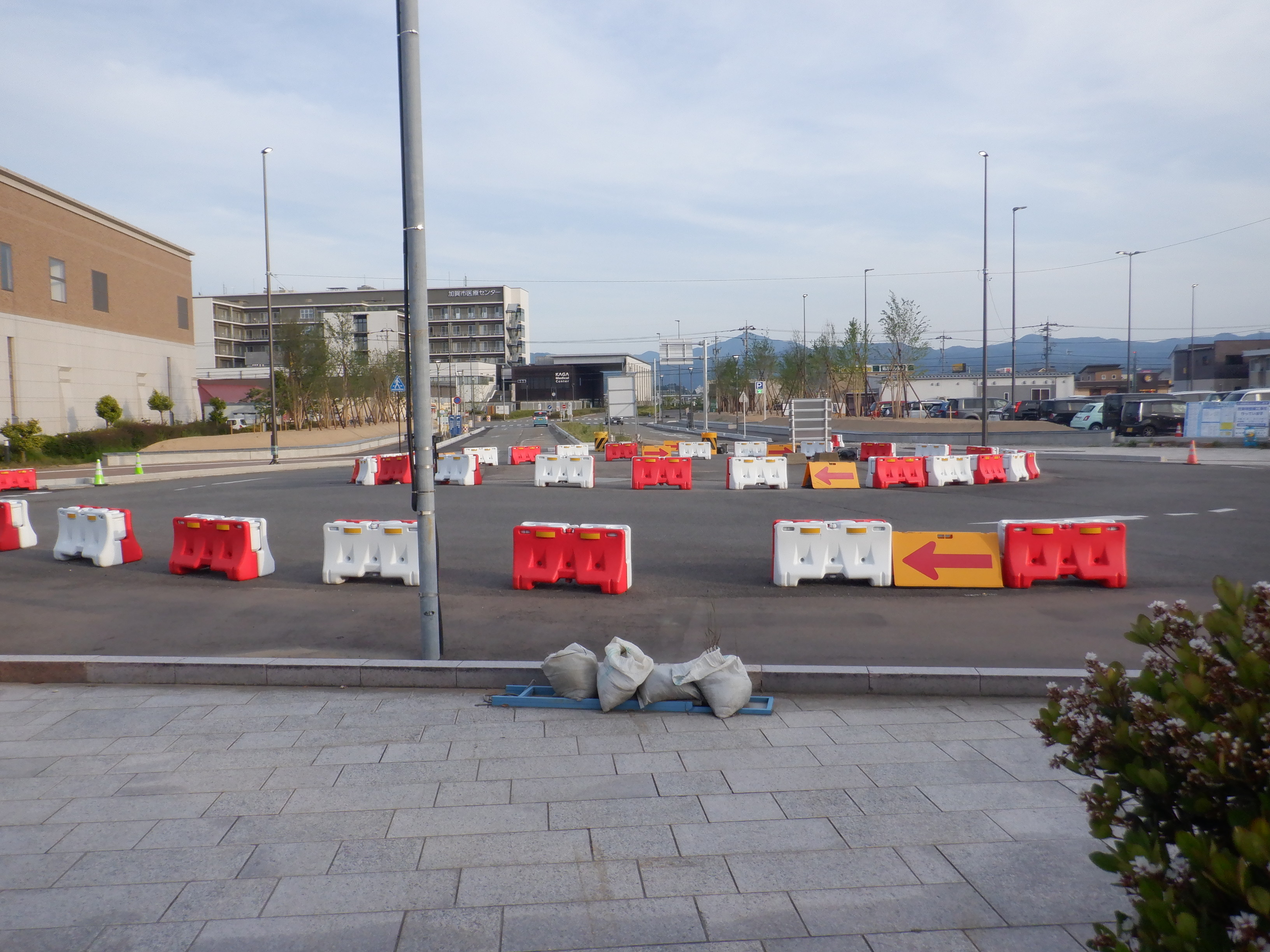 バスのりば移動の案内。今回でこの仮設バスのりばを見るのが最後になります。