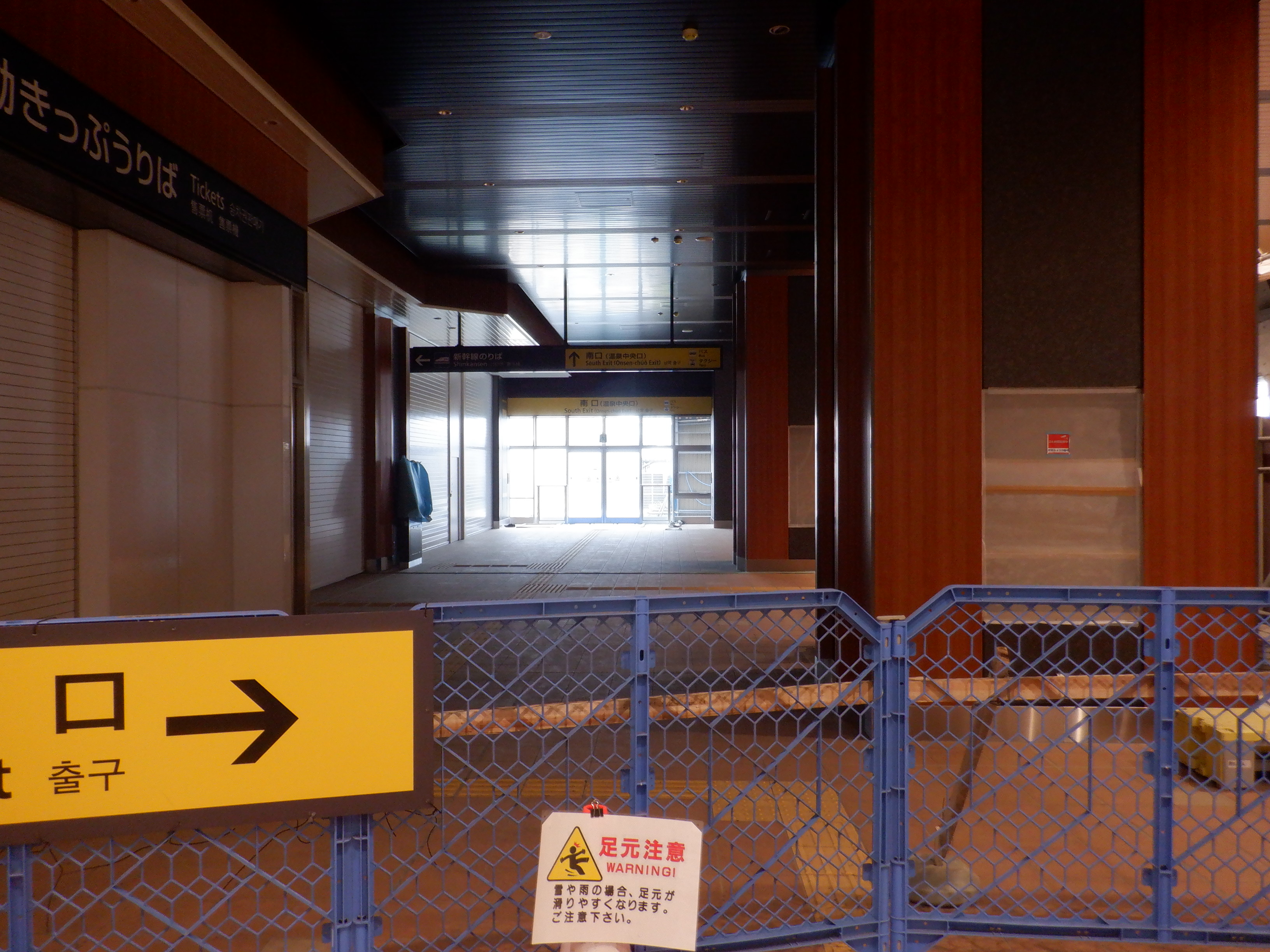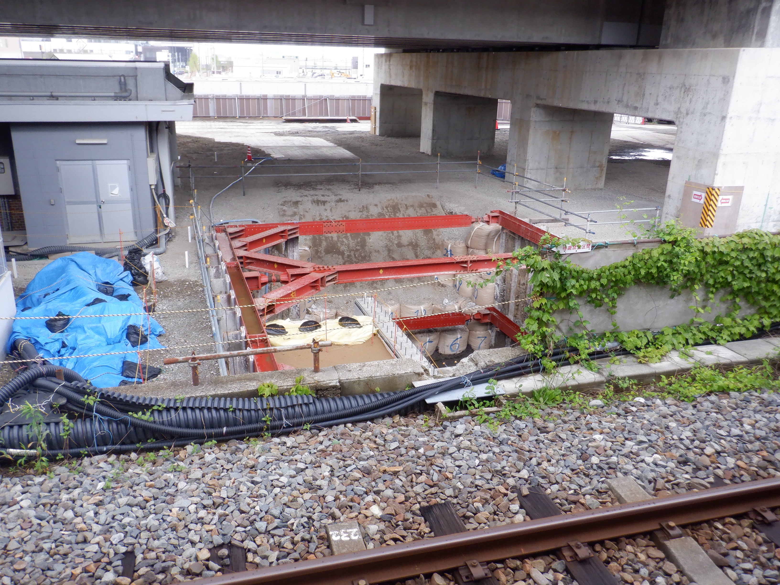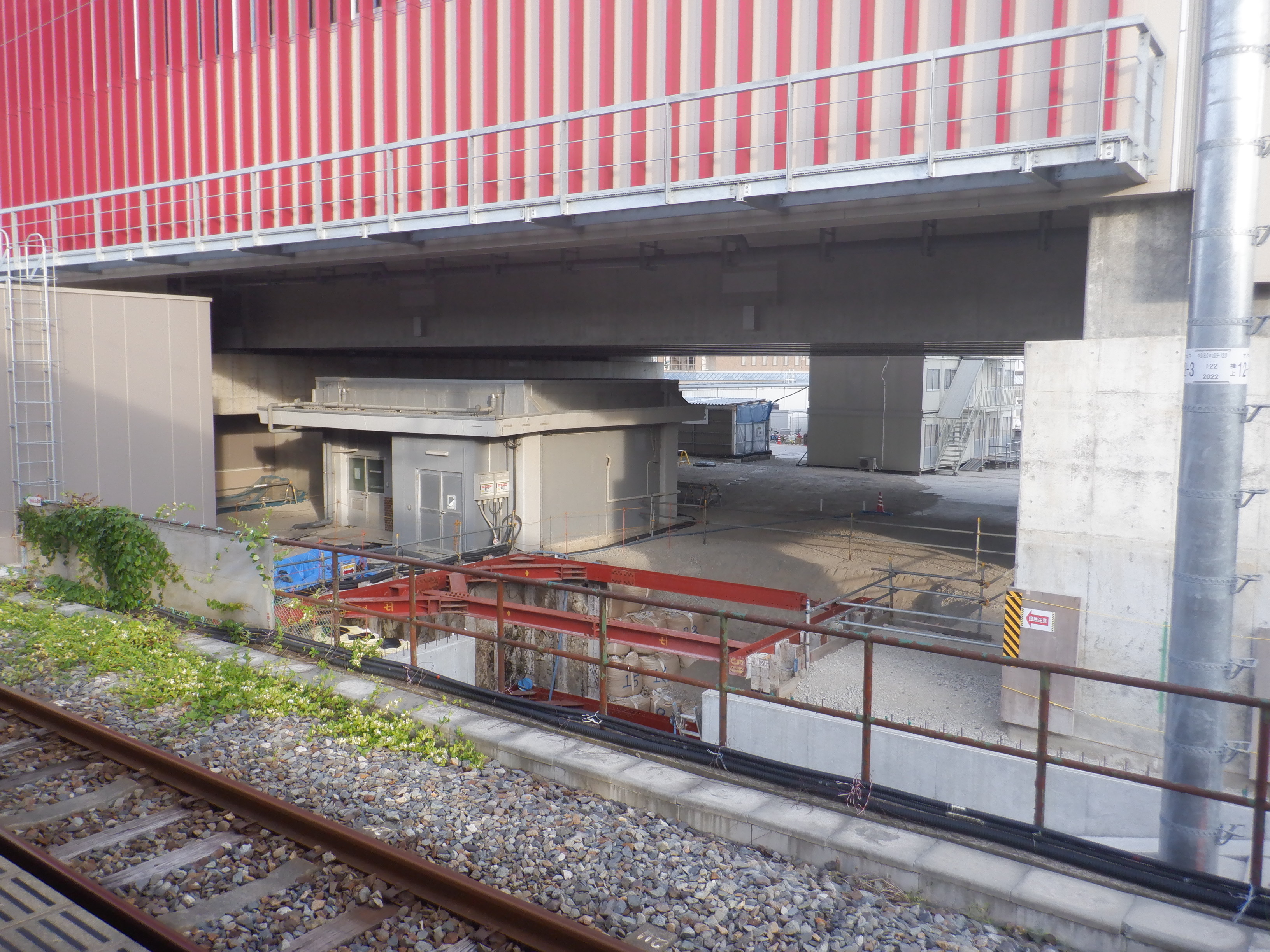1・2番のりばから見た地下自由通路を再建設中のところ。